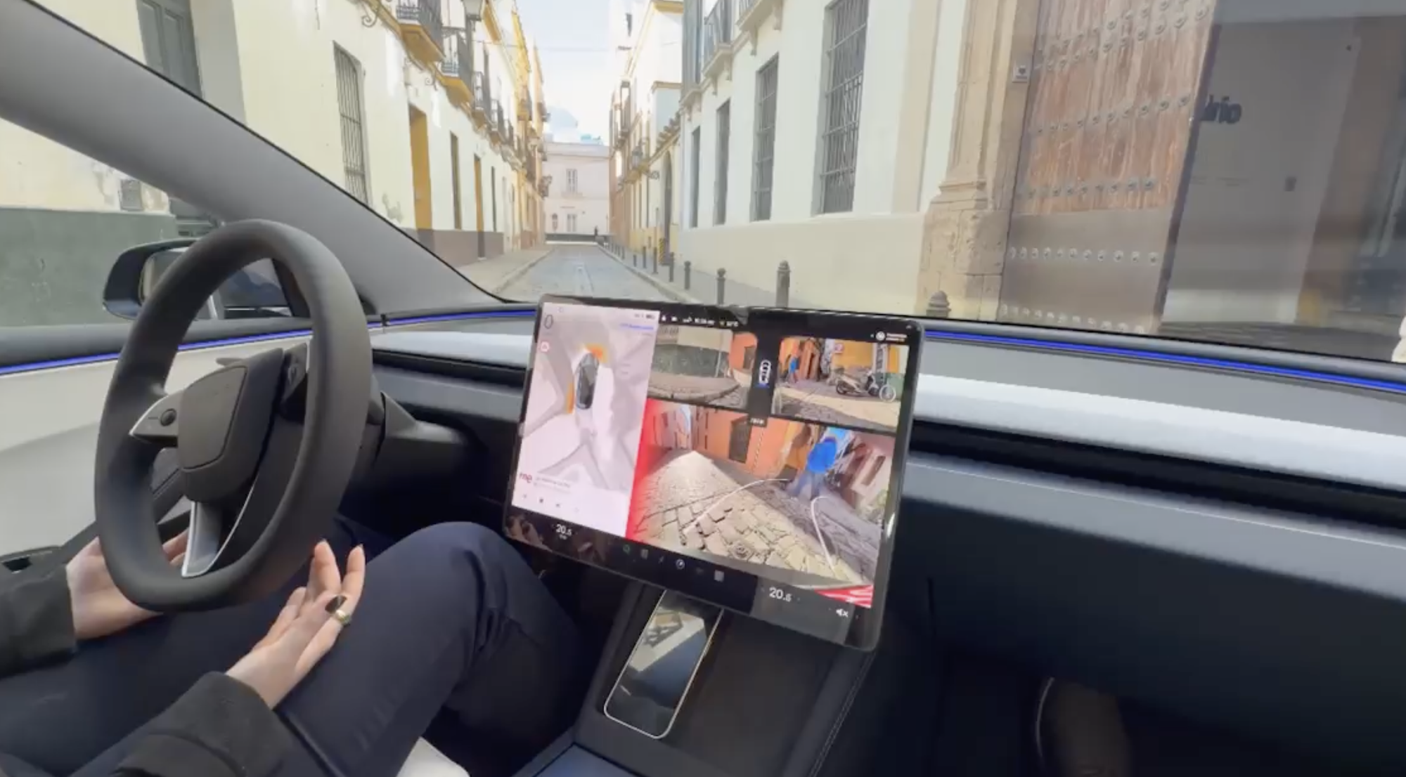 Beeindruckende Fahrt von Tesla FSD in der engen Altstadt von Sevilla