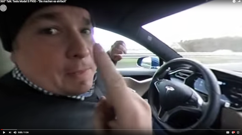 In einem elf-minütigen Video bei der Fahrt auf der windigen Autobahn zwischen Niederlanden und Deutschland diskutieren die zwei Testfahrer den Autopilotmodus mit dem sie ohne die Hand am Steuer zu haben unterwegs sind. Vom Design im Wageninneren, das so stimmig ohne Knöpfe und minimal und doch oder gerade deshalb so funktional ist, die Verarbeitungsqualität, und vor allem die Ruhe die der Autopilot und der Wagen den Passagieren trotz des böigen Seitenwindes bietet, lässt die beiden staunen. Und vor allem alles was von den deutschen Herstellern als „geht nicht“ und „unmöglich“ an Phrasen gedroschen wird als ziemlich hohl enthüllt. Auch das gerne vorgebrachte Argument mit Ladesäulen und der Reichweitenangst stellt sich als unbegründet dar. Der kleine amerikanische Hersteller hat es geschafft von selbst eine ziemlich flächendeckende Ladesäuleninfrastruktur auf die Beine zu stellen, die deutsche Hersteller vom Staat und allen anderen einfordern und damit vor allem die eigenen Kunden im Regen stehen lassen.