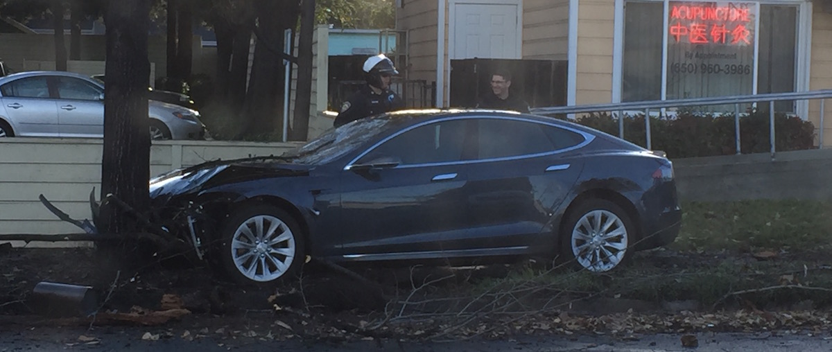 Eine kleine Unaufmerksamkeit und schon ist das Missgeschick passiert. Wer die Schuld daran hatte, dass dieser Tesla-Fahrer heute in Mountain View auf der Grant Road, Ecke Martens Avenue gegen den Baum krachte, ließ sich aus Sicht eines unbeteiligten Vorbeifahrenden nicht eruieren. Glücklicherweise war außer Blech- und Baumschäden sowie einigen zertrümmerten Mülltonnen nichts passiert. Zu vermuten ist, dass in egal welchem Szenario auch immer ein autonomes System den Unfall verhindert hätte.