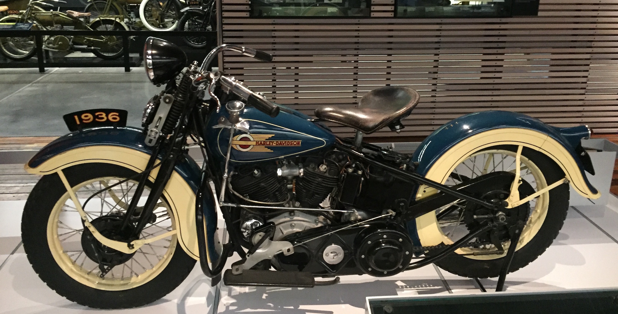 Die Ausstellung beginnt mit einer eindrucksvollen Sammlung an gut erhaltenen Motorrädern aus den Anfangszeiten von Harley-Davidson.