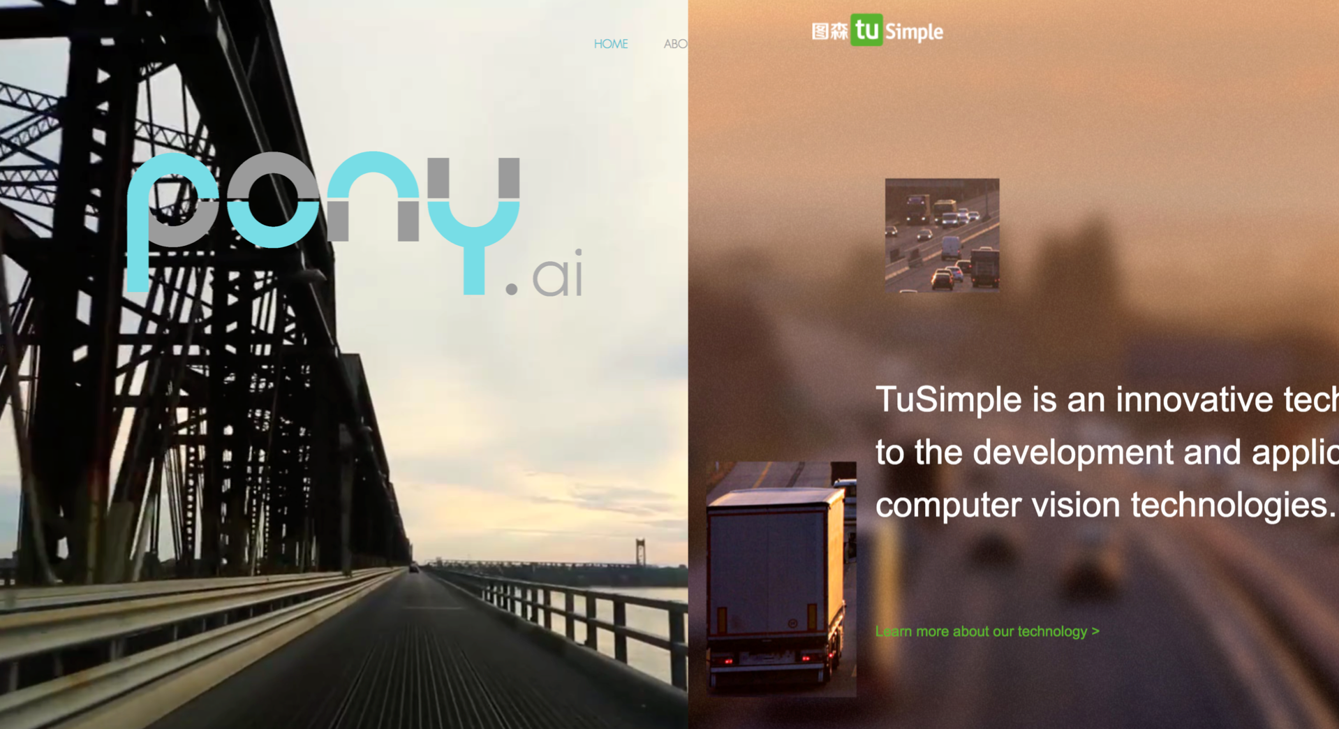 TuSimple hat im kalifornischen San Diego seinen Forschungssitz, der Stammsitz liegt in Peking. Das Unternehmen entwickelt Computervision und Künstliche Intelligenz-Technologie für selbstfahrende Lastwagen bezeichnet seine Aufgabe folgendermaßen: „TuSimple rethinks the new possibilities of autonomous driving technology. Our mission is to set a new standard on safety, reliability, and efficiency in the trucking industry.“