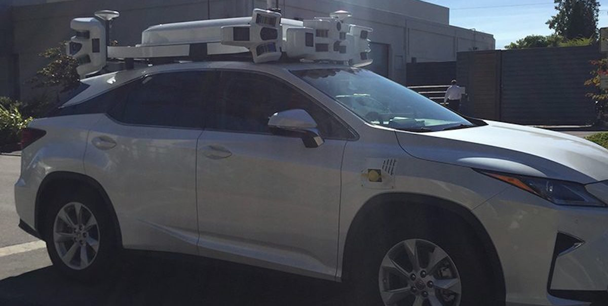 Dieses Testfahrzeug soll von Apple sein und wurde in der Nähe von Apples Bürogebäude sein, in dem angeblich die autonomen Testfahrzeuge zuhause sind. Auch wenn Apple die Entwicklung eines vollständigen Autos aufgegeben haben soll, so arbeitet das Unternehmen an einer Plattform für autonomes Fahren.