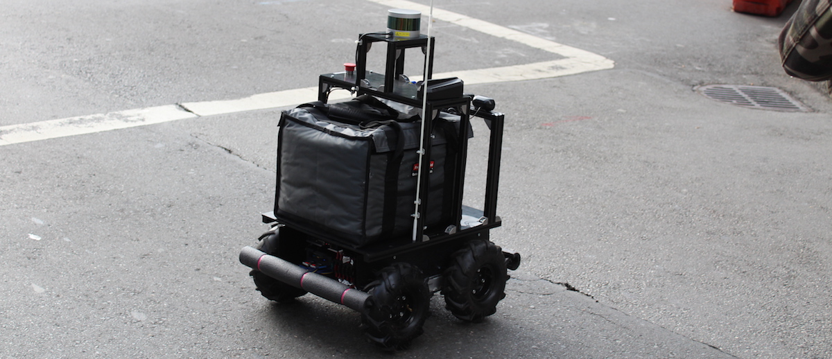 Ein neuer Roboterdienst zur Essensauslieferung wurde in San Francisco gleich mehrmals gesichtet. Es war nicht klar, um welches Unternehmen es sich dabei handelt. Auf einer einfachen Plattform mit Lidarsystem stand eine Warmhaltetasche, das Logo war durch die Tragegerüste verdeckt. Hier sind ein paar Fotos: