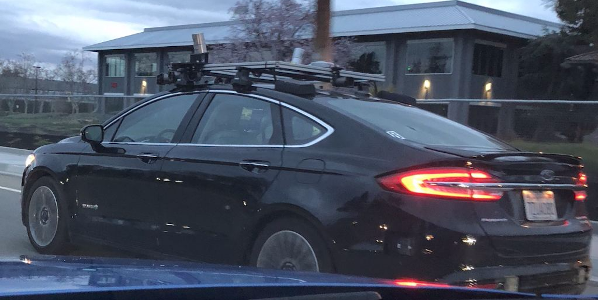 Dieser Ford Fusion mit Sensoraufbauten wurde in der South Bay gesichtet. Ein ähnliches Fahrzeug ohne die Lidars wurde vor einem Jahr in Palo Alto und Portola Valley gesichtet.
