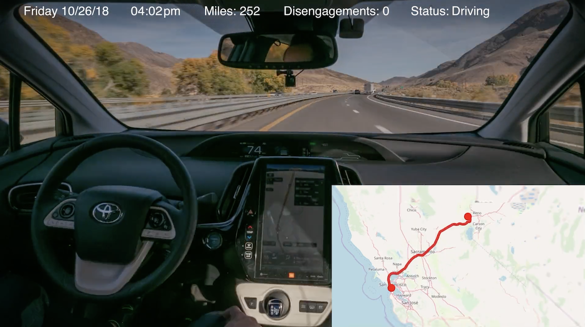 In einem Video zeigt Pronto.AI eine 3.099 Meilen (5.000 Kilometer) lange Fahrt von San Francisco nach New York gezeigt, die am 26. Oktober 2018 durchgeführt wurde. Die Fahrt, die fast ausschließlich auf Autobahnen stattfindet, wird dabei ohne Eingriff des Sicherheitsfahrers absolviert. Das Video erinnert dabei an die dasjenige von Ot.to – bei der Levandowski Mitgründer war – vom Oktober 2018.