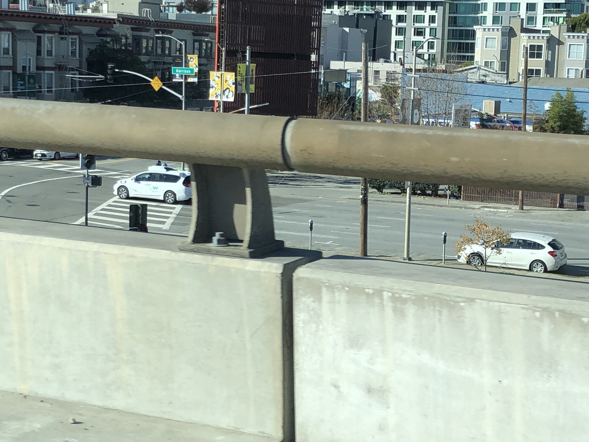 Hier noch Fotos von einem Waymo in San Francisco auf der Harrison (aufgenommen gegen 13 Uhr am 29. Dezember 2018):