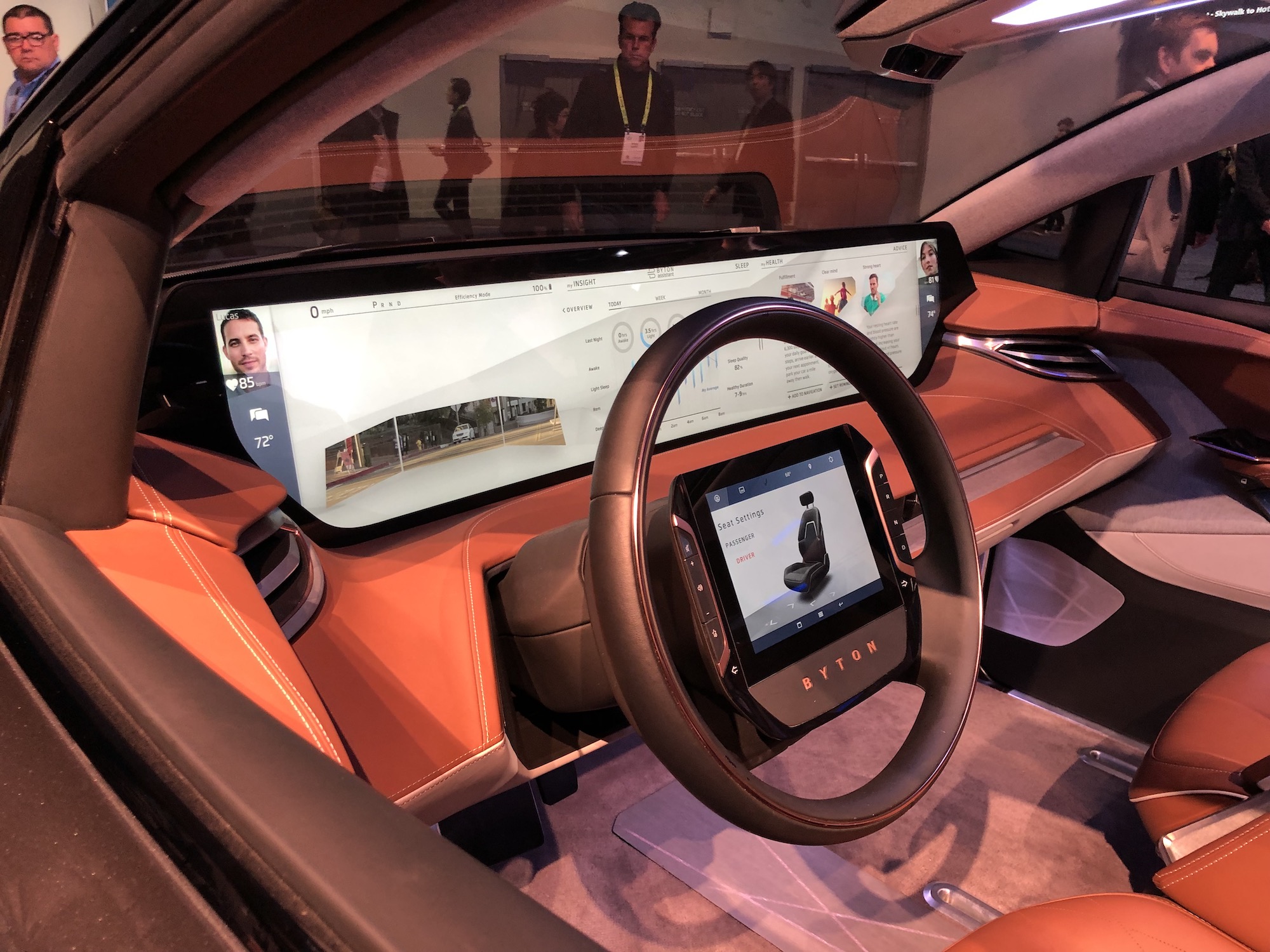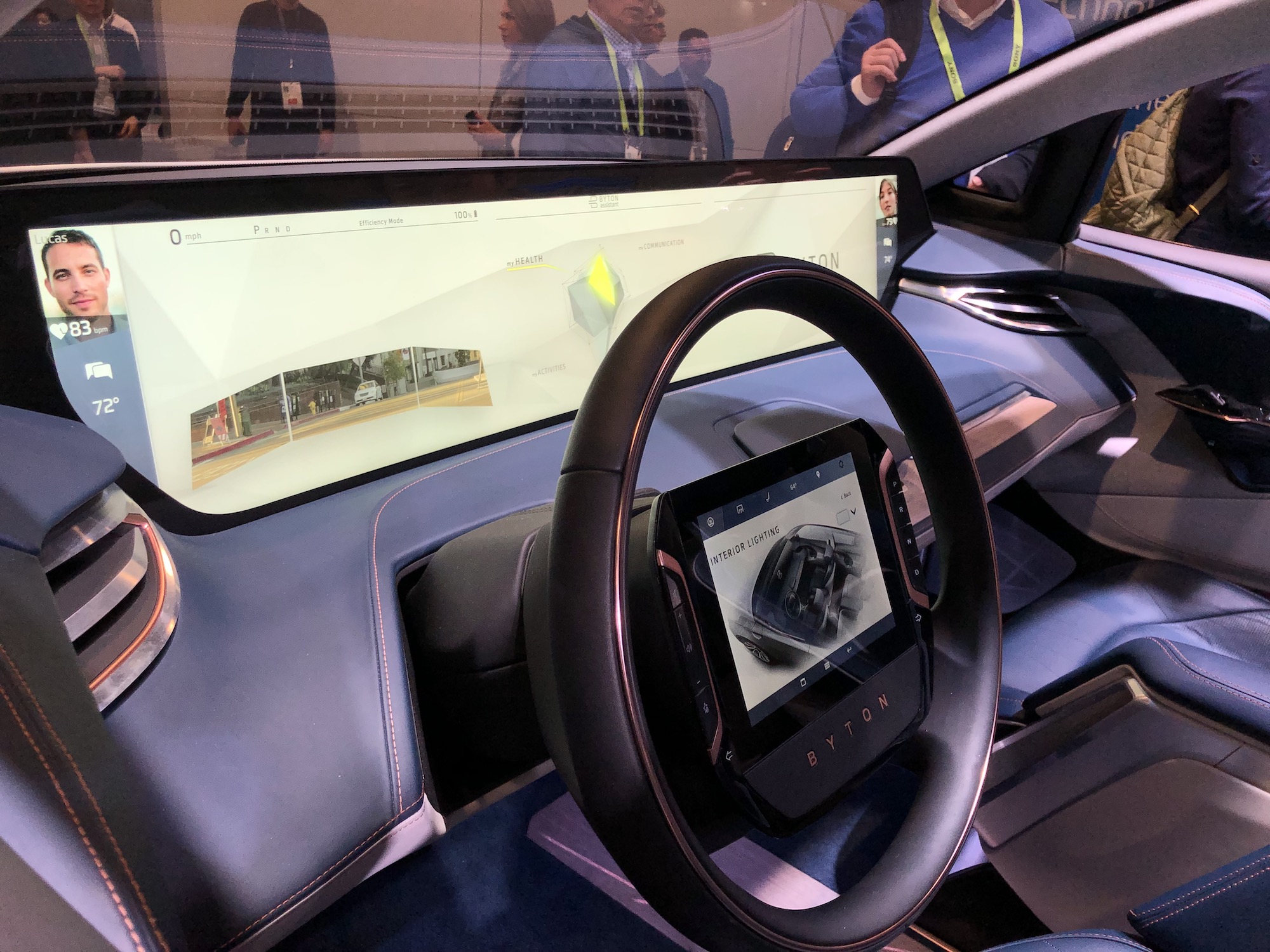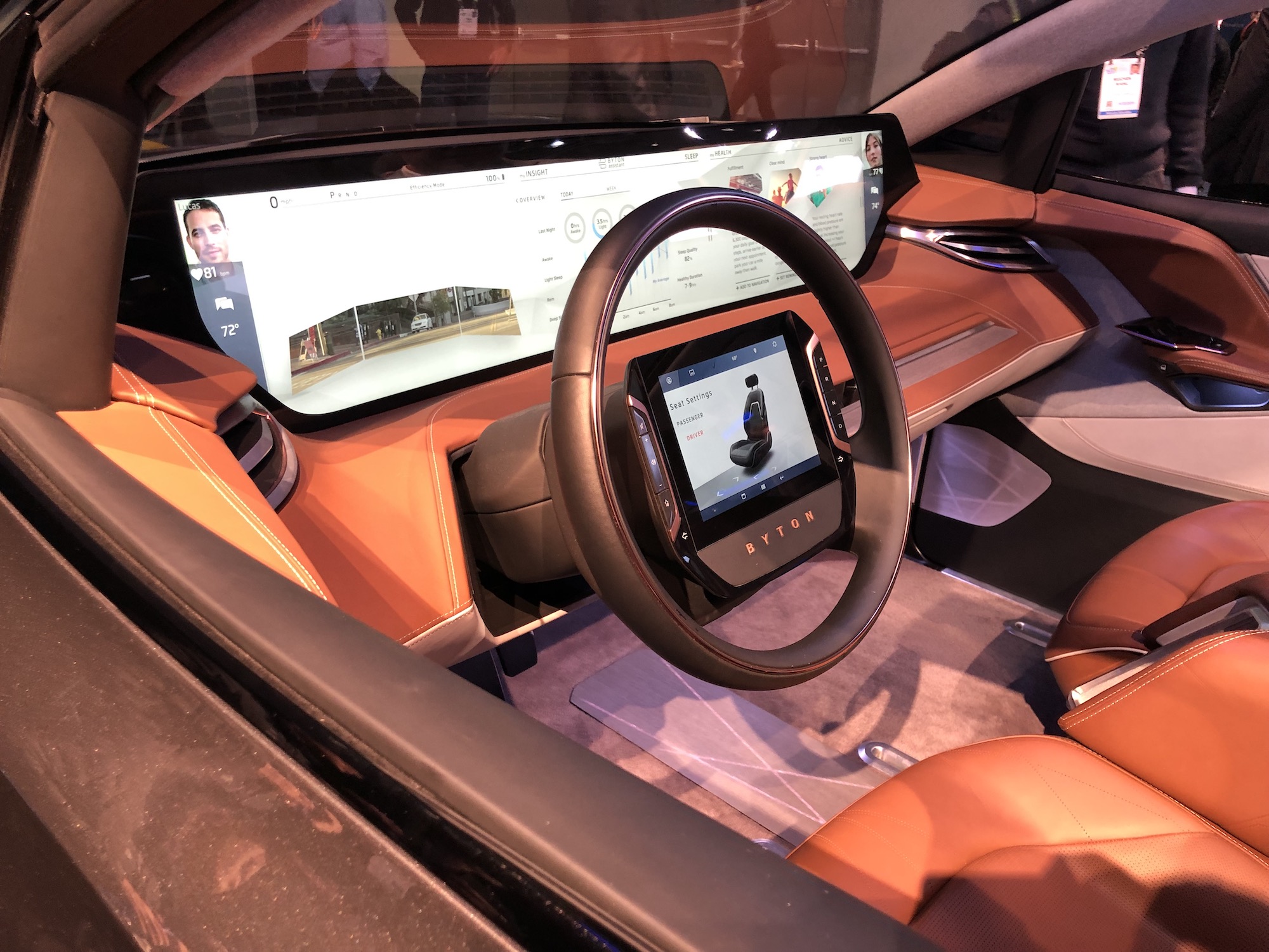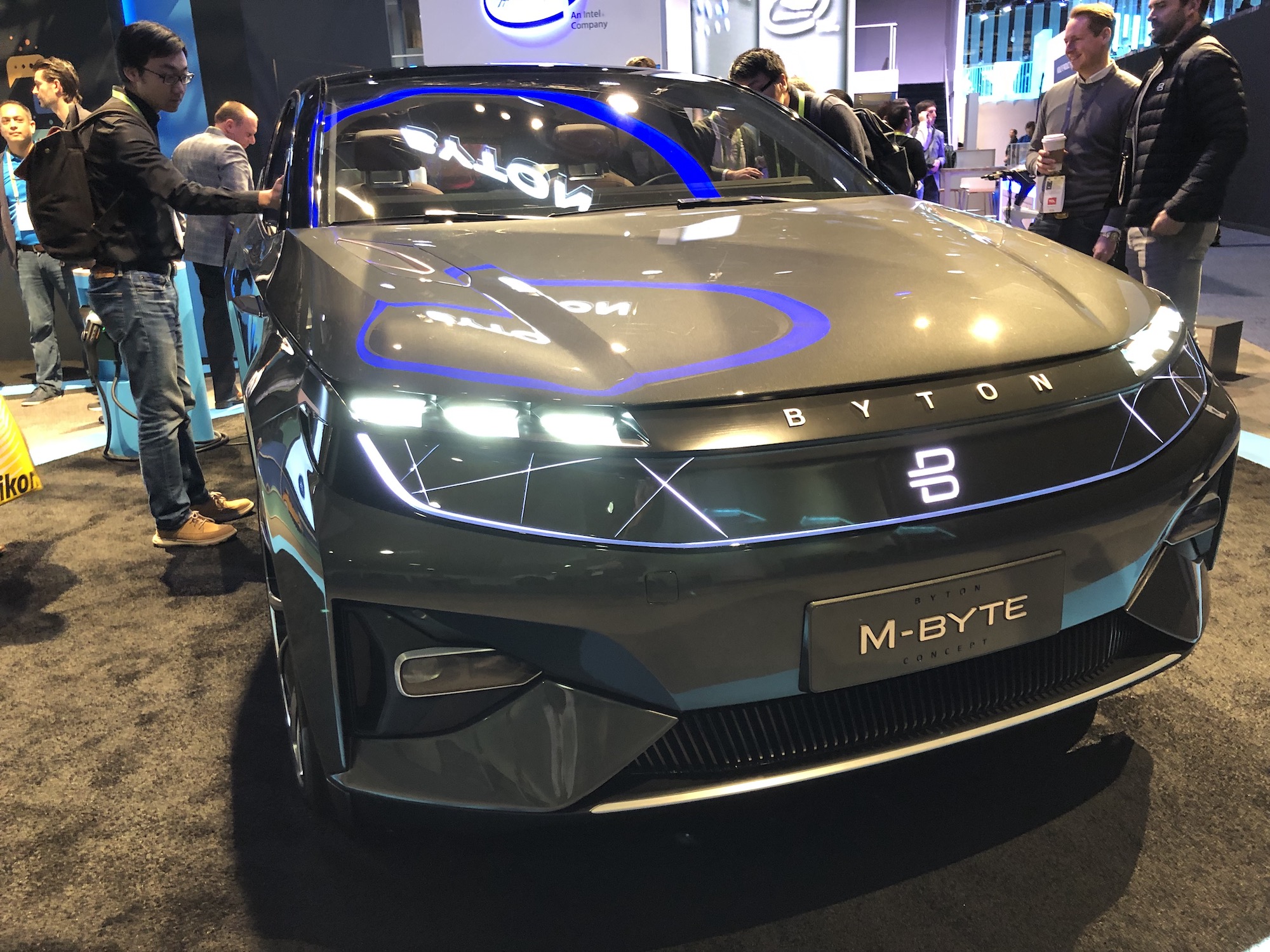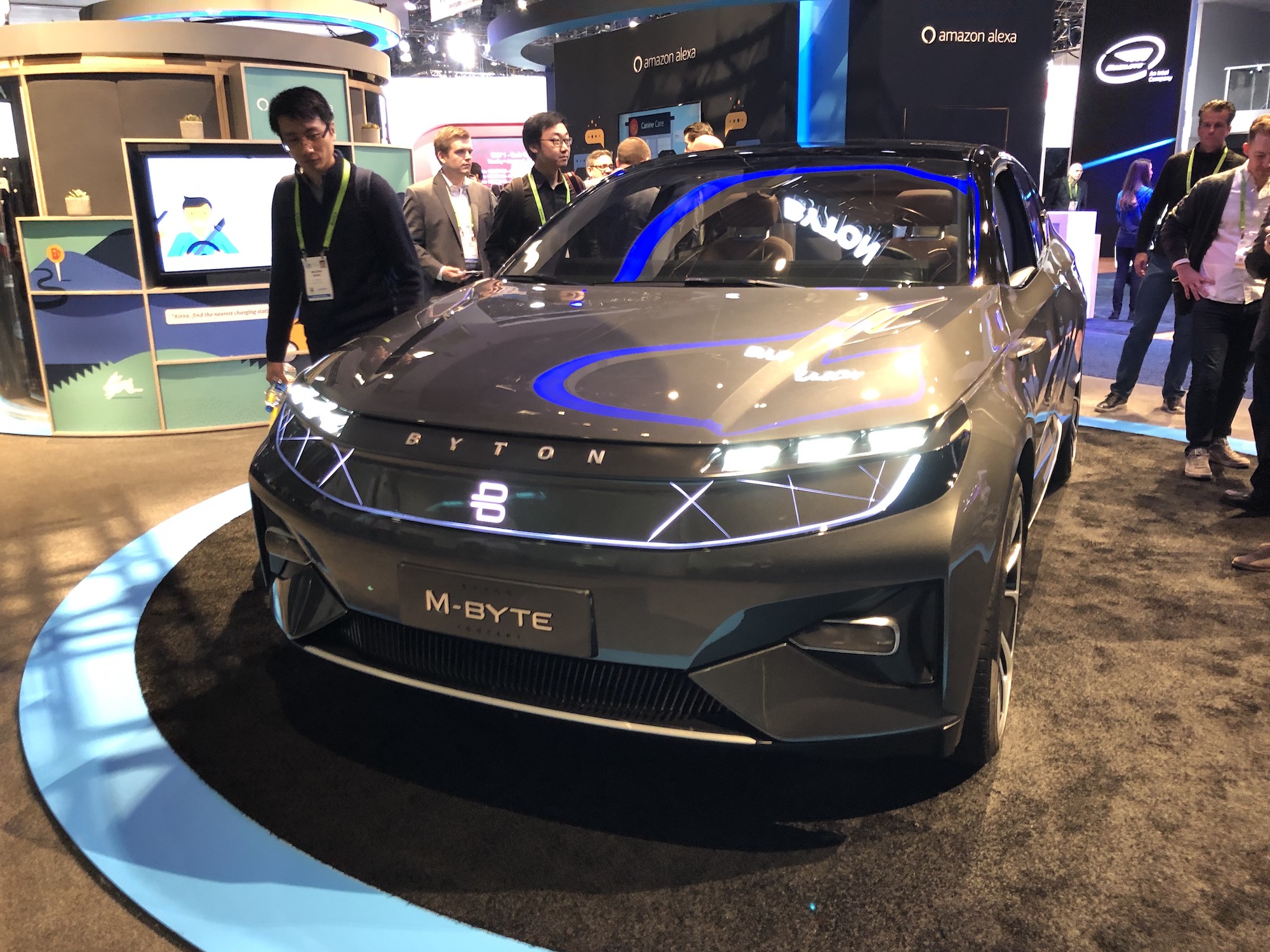 Der chinesische Elektrofahrzeughersteller Byton stellte auf der CES 2019 seine beiden Konzeptfahrzeuge M-Byte und K-Byte vor. Gerade erst 2016 gegründete, gelang dem Start-Up der Coup, einige Schlüsselleute von der BMW i8-Entwicklung abzuwerben.