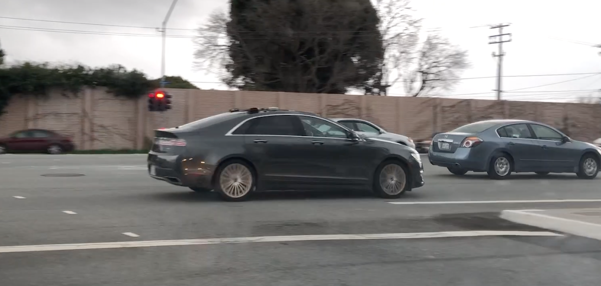 Und hier gleich ein weiteres Fahrzeug mit Sensoranordnungen, auch auf dem Montague Expressway in San José.