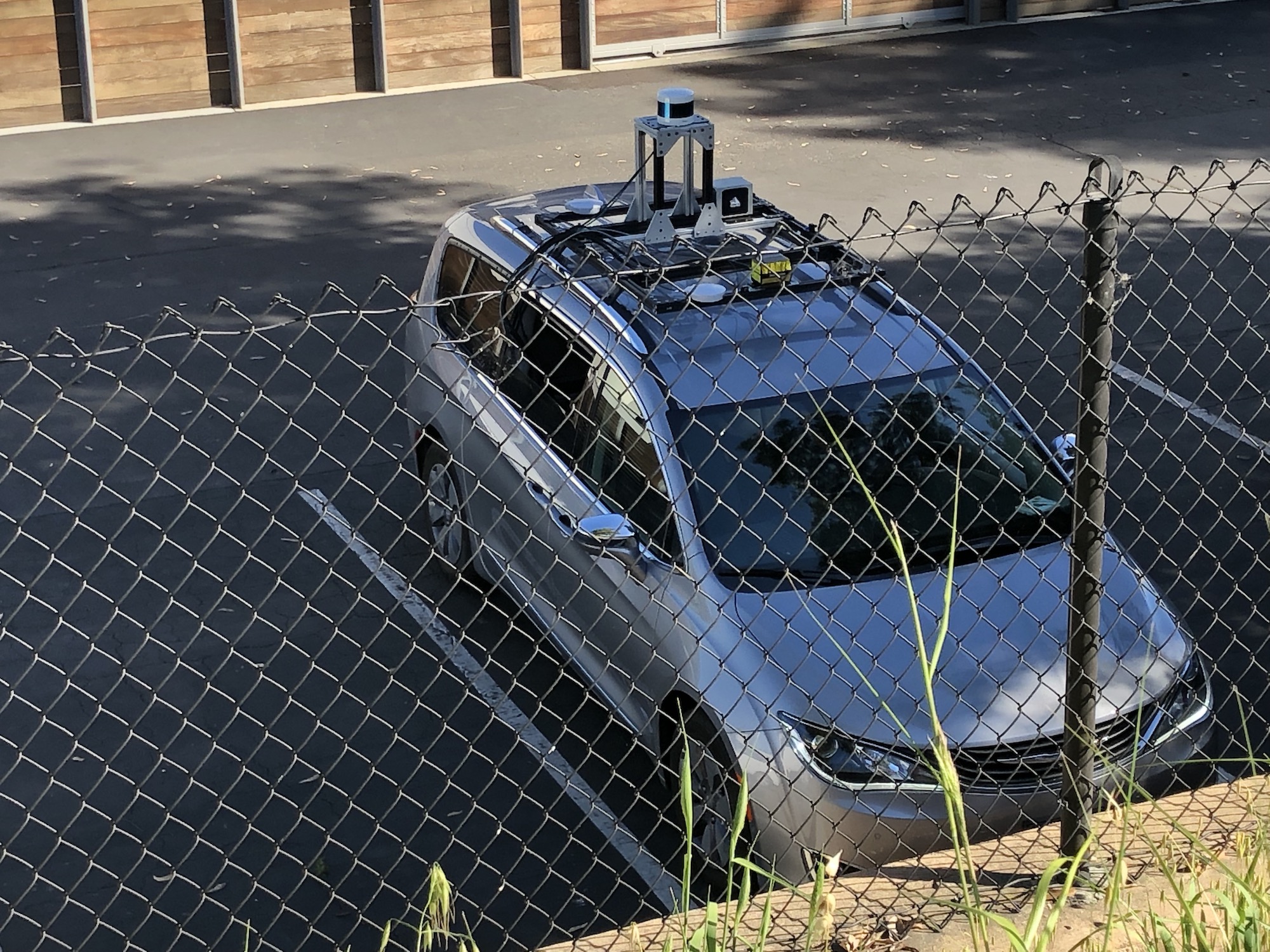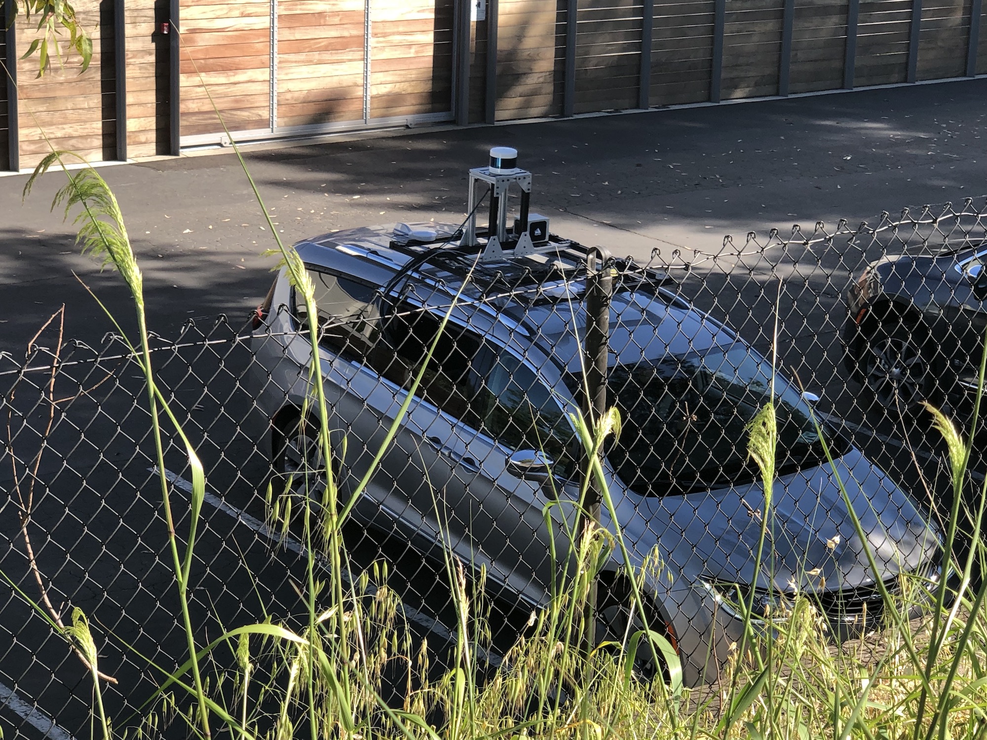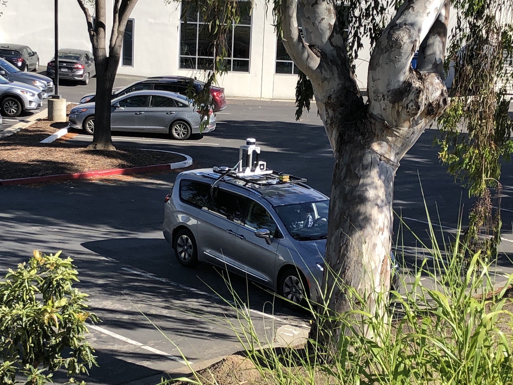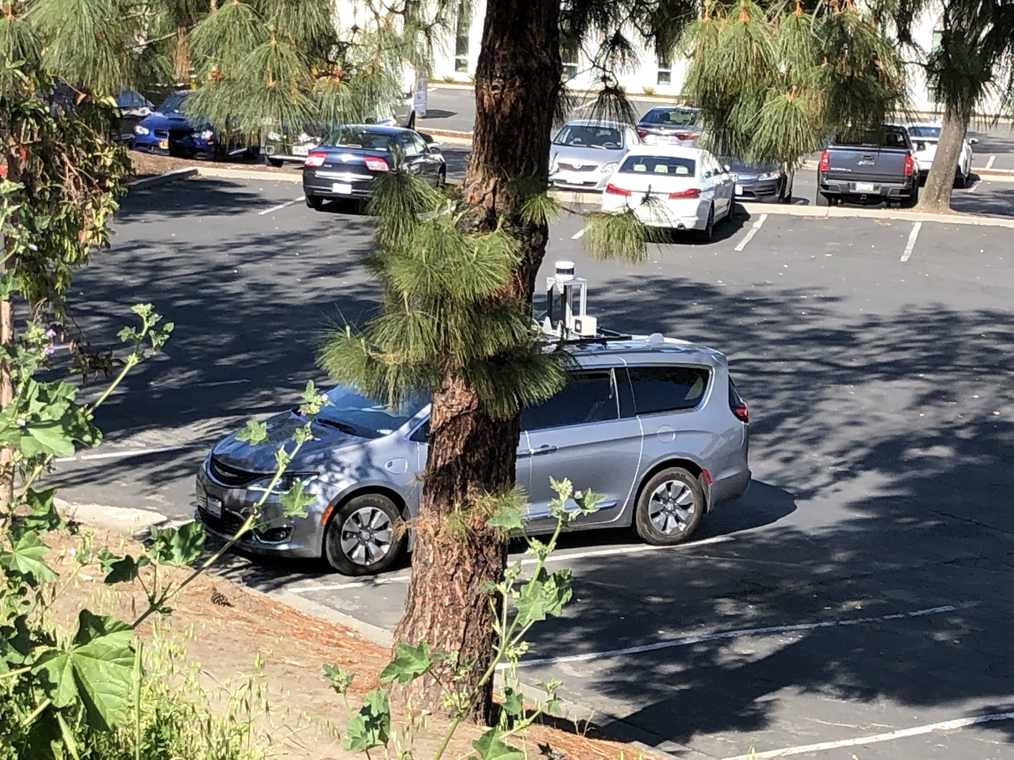 Dieses neue AutoX-Fahrzeuge – ein Fiat Chrysler Pacifica Minivan – wurde am 23. April 2019 gegen 16 Uhr in San José gesichtet.