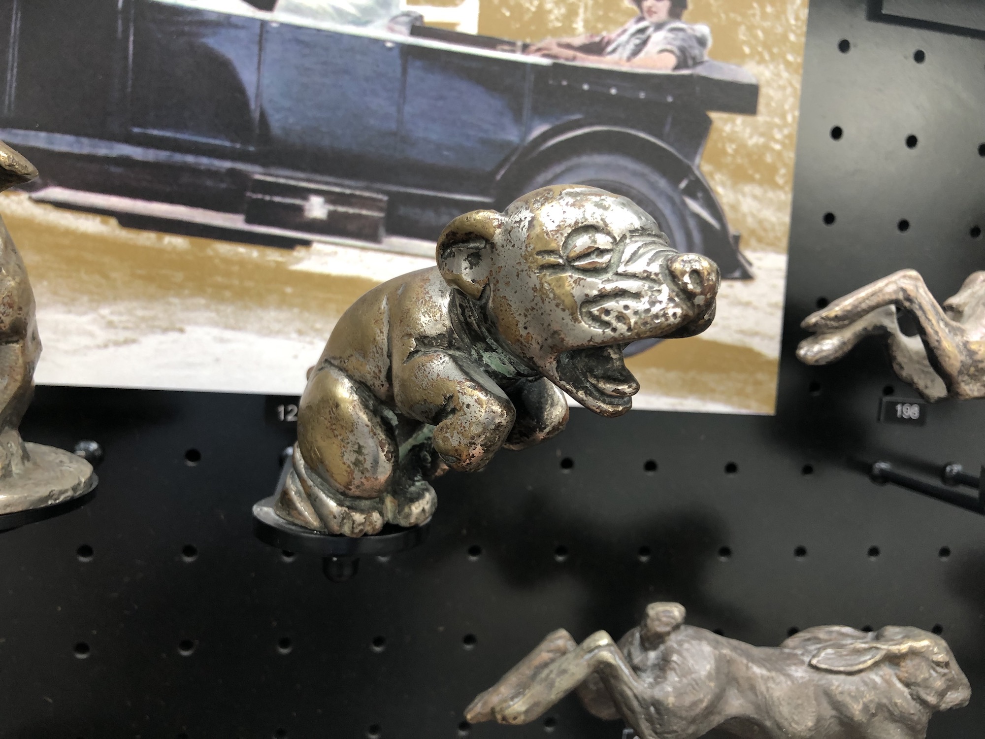 Gleich beim Eingang erwartet die Besucher eine Sammlung von mehreren hundert Kühlerfiguren, die vom Ernsten zum Skurrilen alles beinhaltet. Und vor allem jede Menge an Tieren.