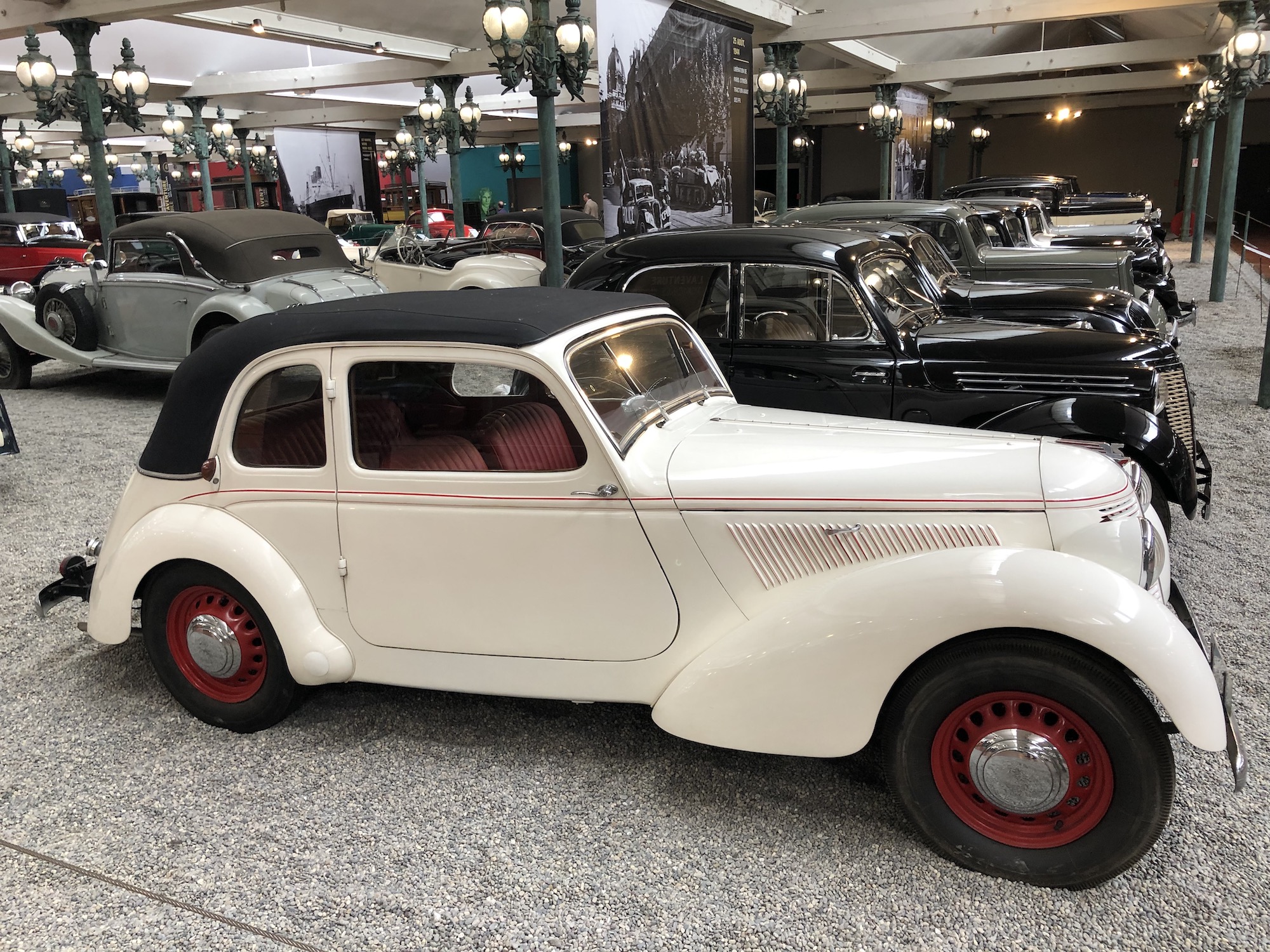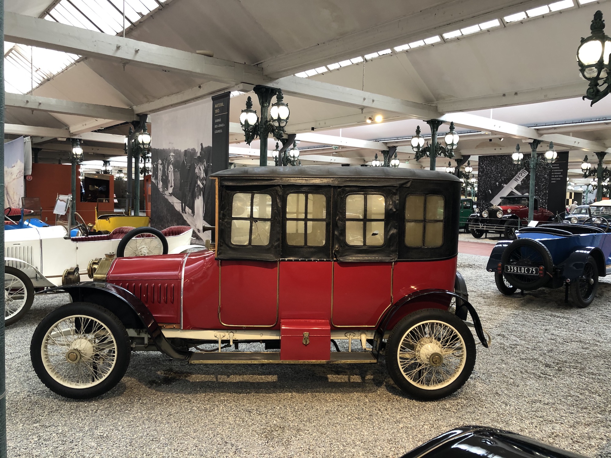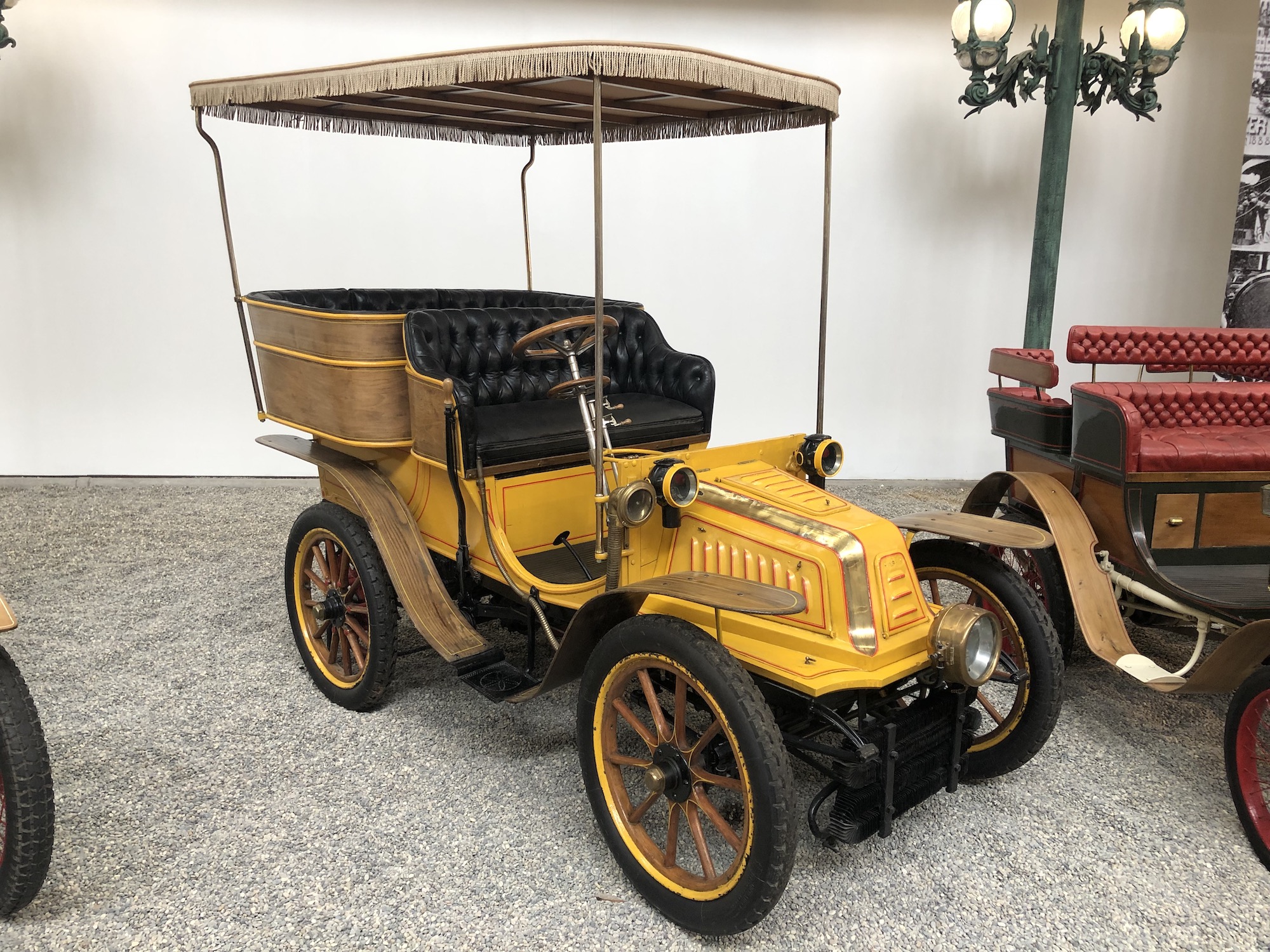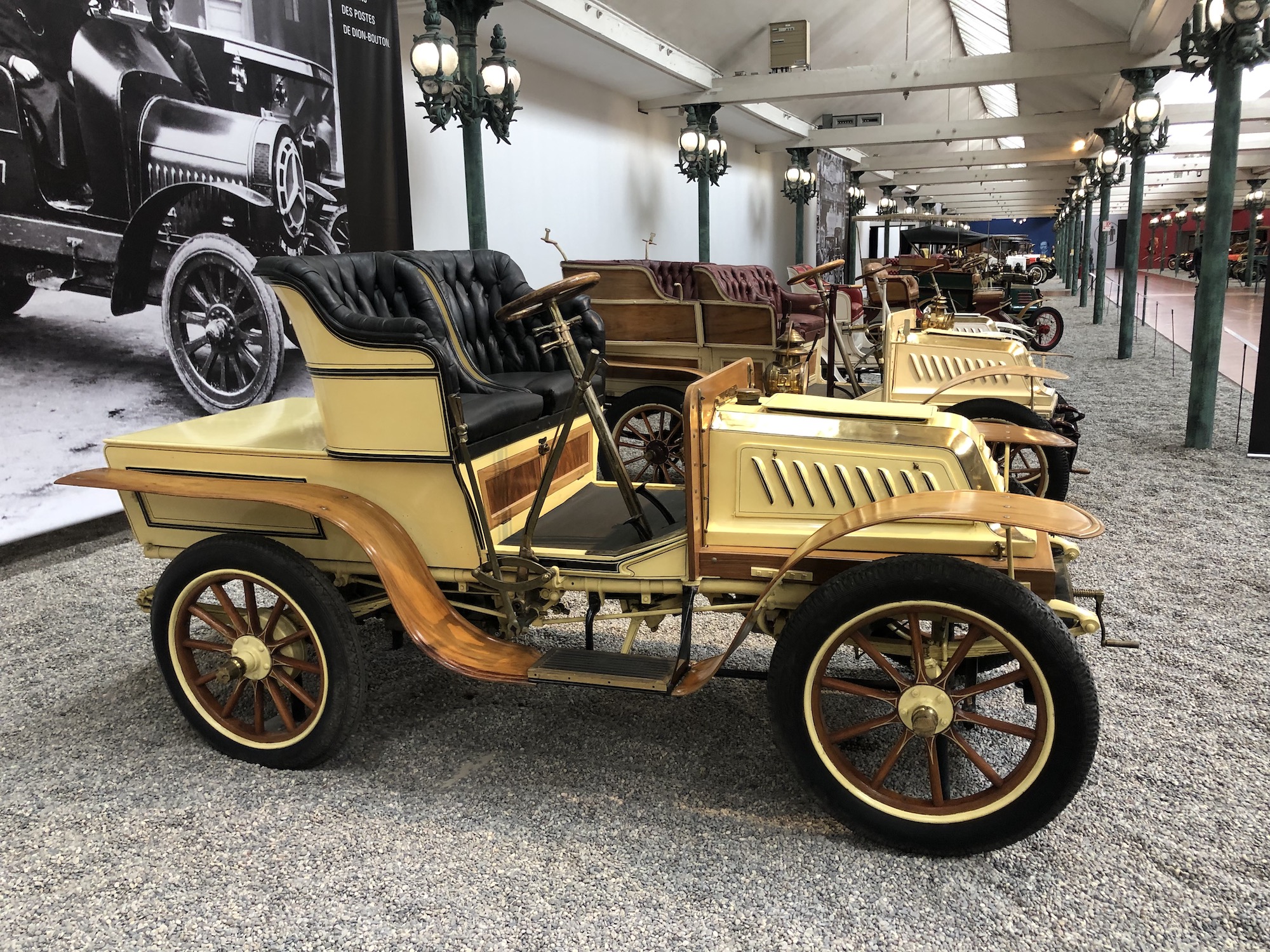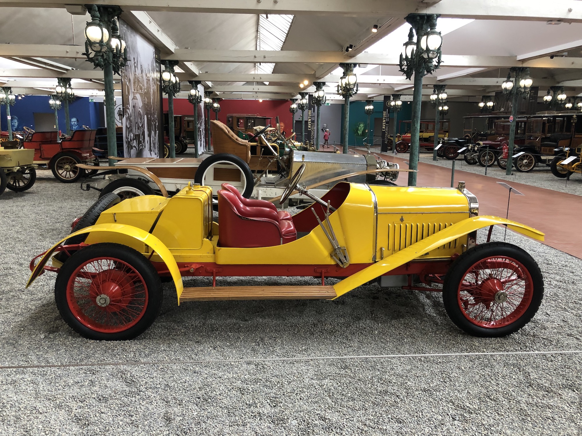 Der erste Abschnitt der Sammlung widmet sich den ältesten Fahrzeugen aus der Automobilgeschichte. Ähneln sie anfangs noch Kutschen, so erkennt man die langsame Entwicklung zu immer größeren und komfortableren Gefährten. Und schon damals begann der Wettlauf, wer das schnellere Gefährt bauen könnte, und mittendrin ist die raketenähnliche „La Jamais Contente“ („Die nie Zufriedene“), die 1899 als erstes Fahrzeug mehr als 100 km/h Spitzengeschwindigkeit erreichte. Das Fahrzeug war übrigens ein Elektroauto.