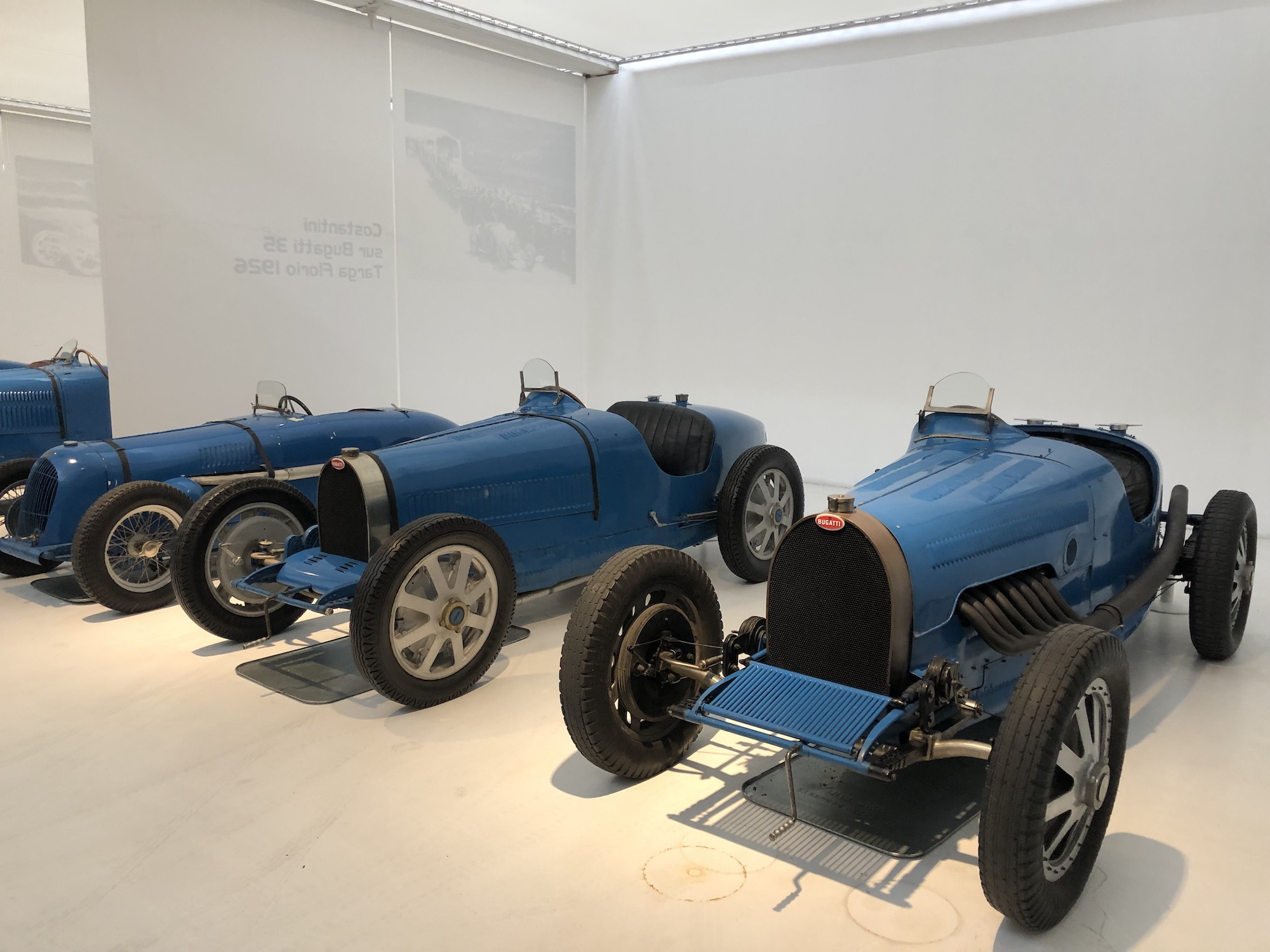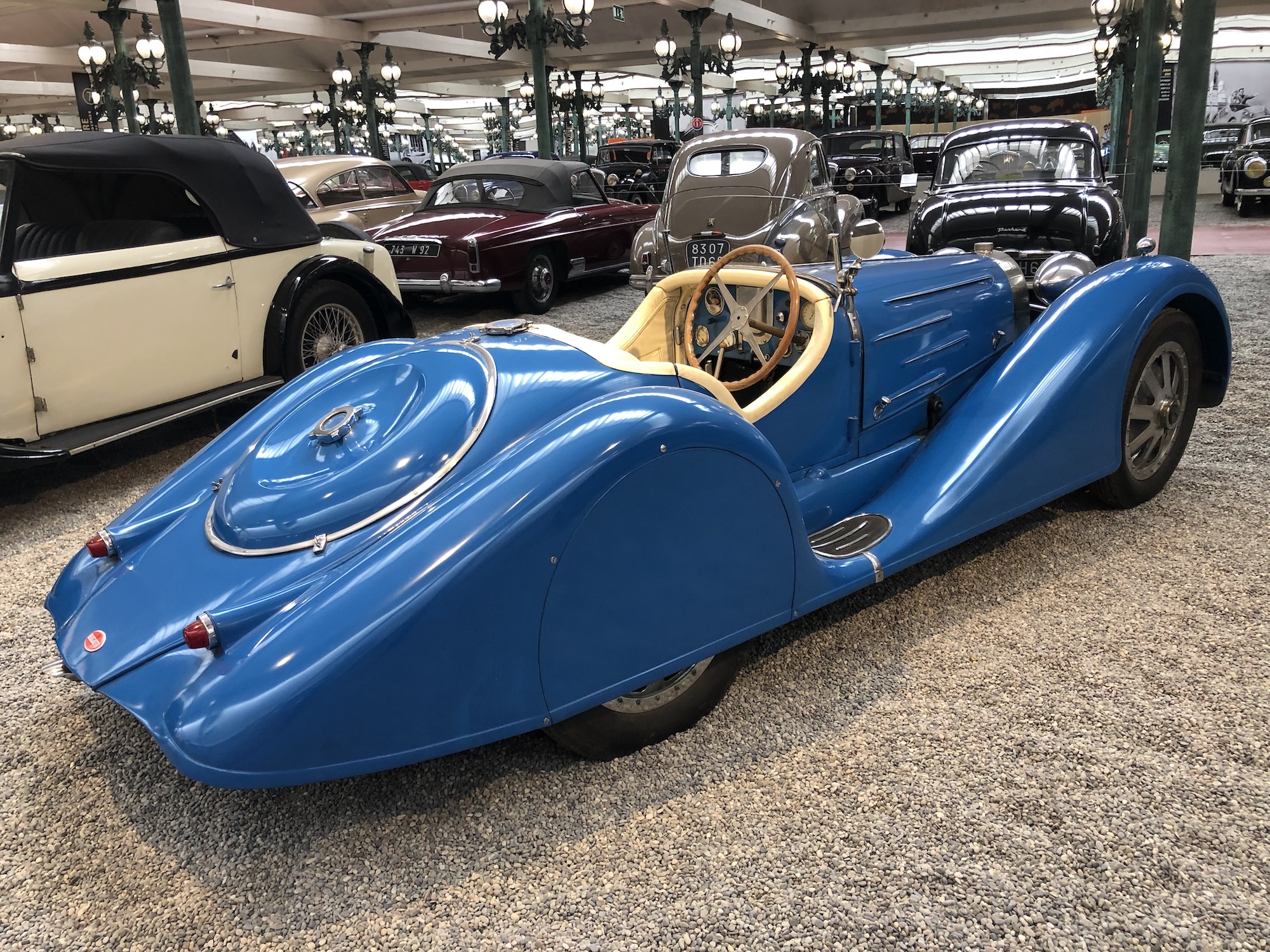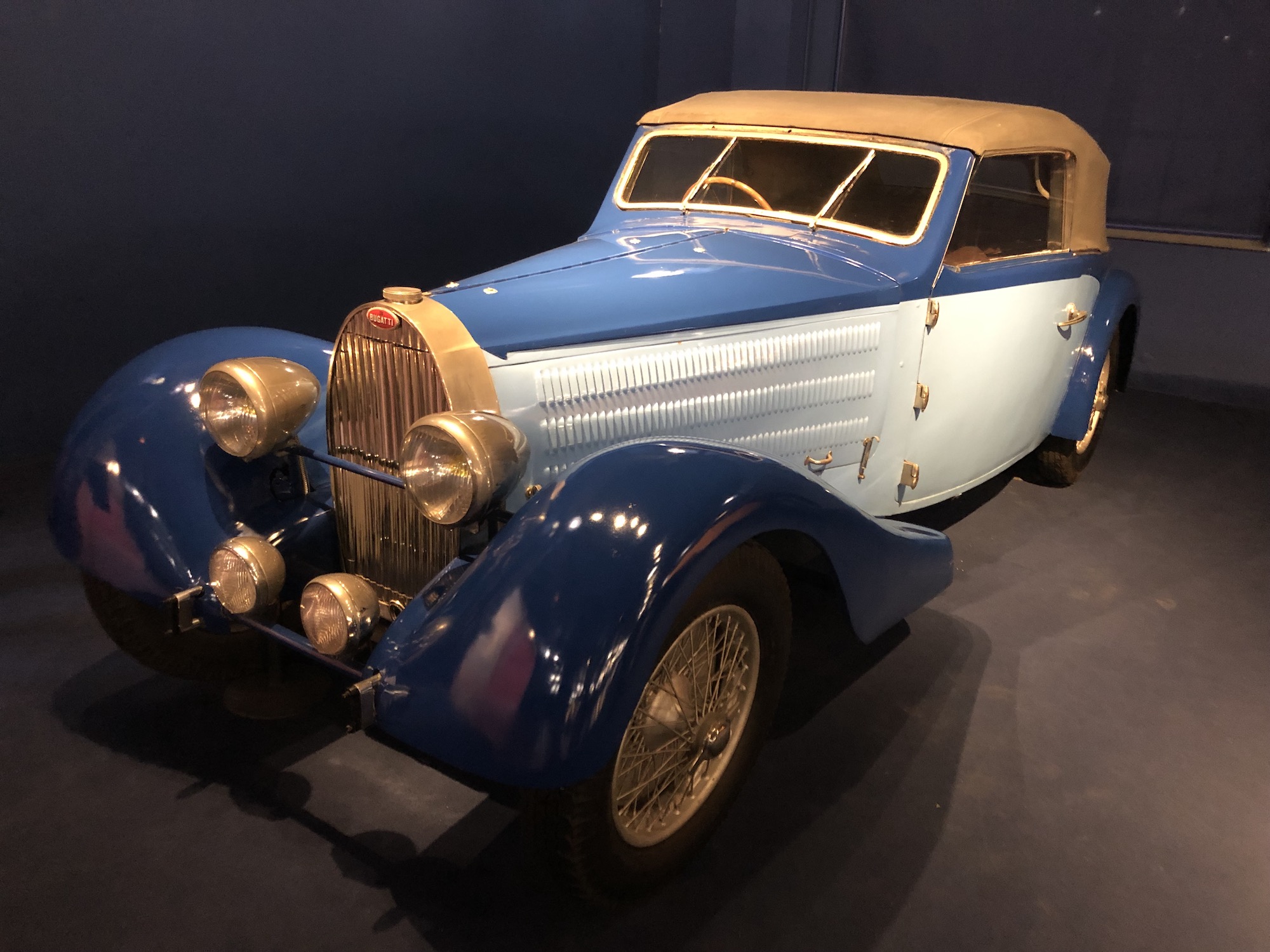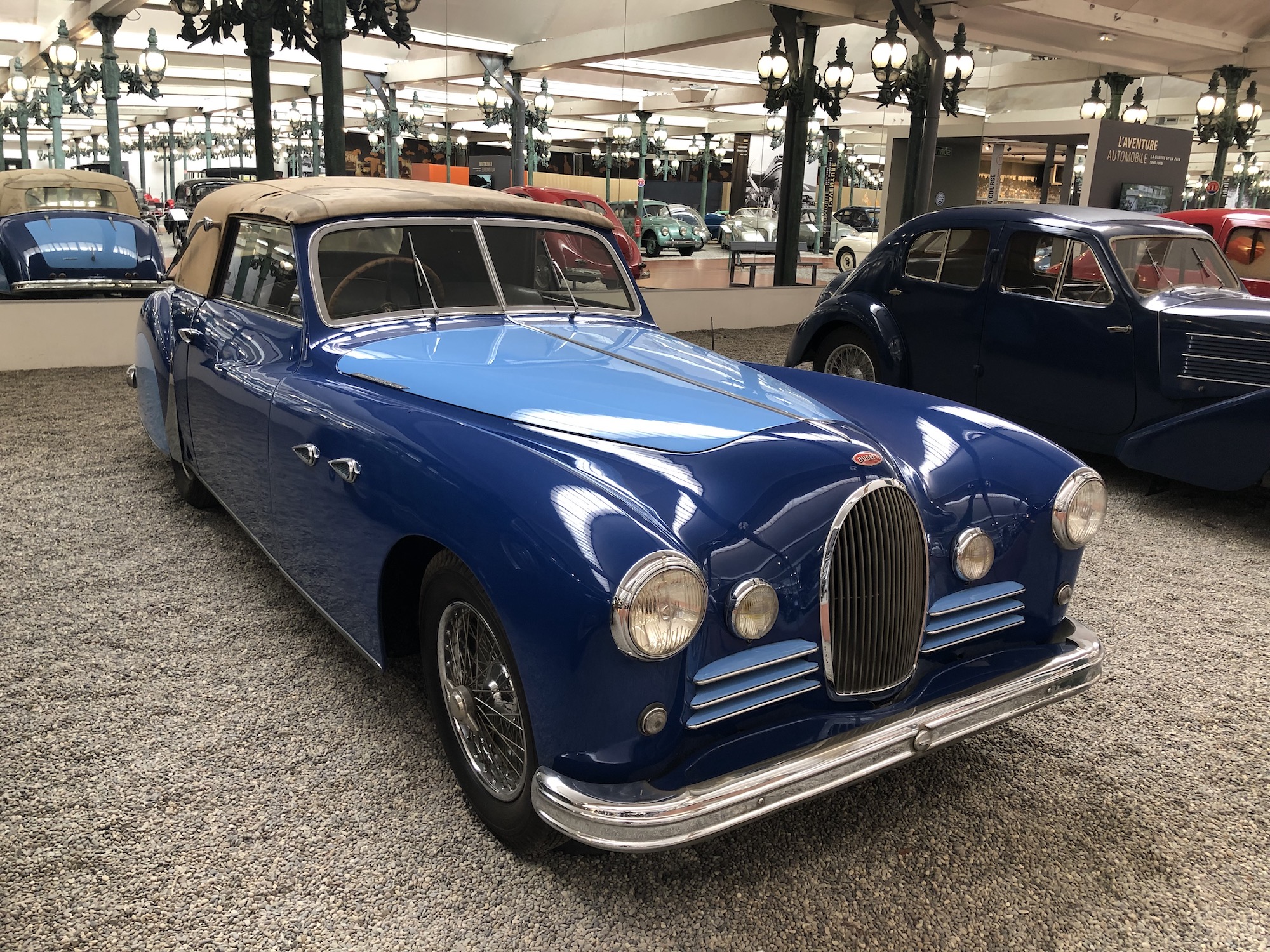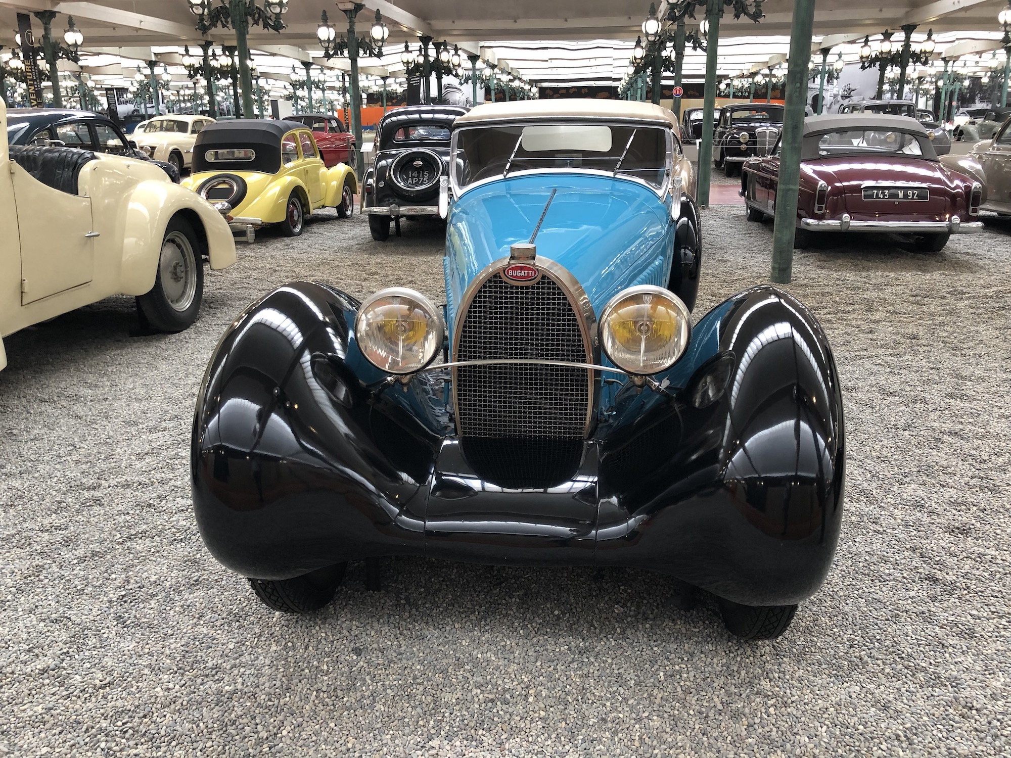 Das Museum beherbergt auch die größte Sammlung an Bugattis, was aufgrund der Nähe zum ehemaligen Bugatti-Standort im elsässischen Molsheim keine Überraschung darstellt. Auffallend ist das Blau, das vorherrscht.