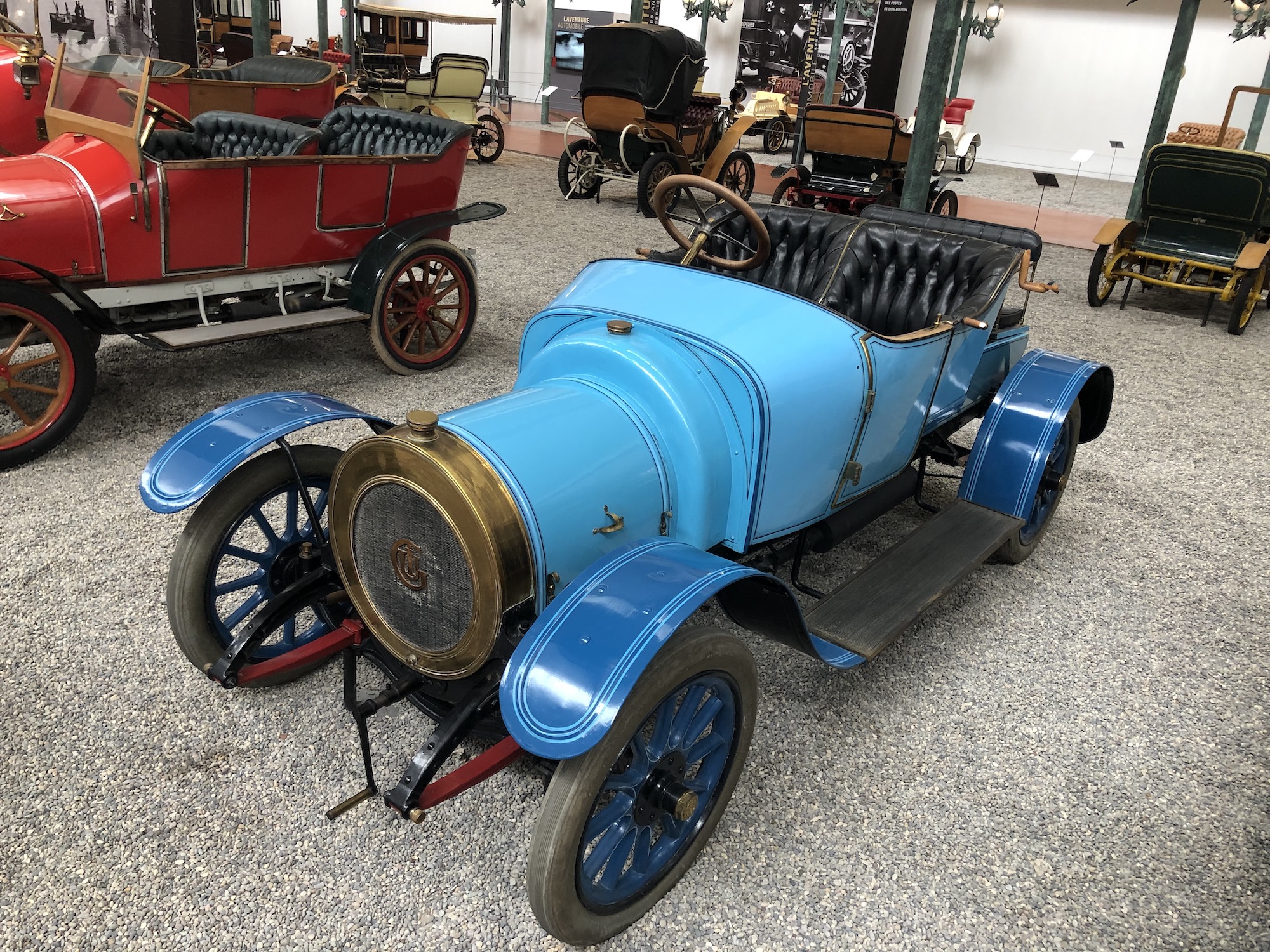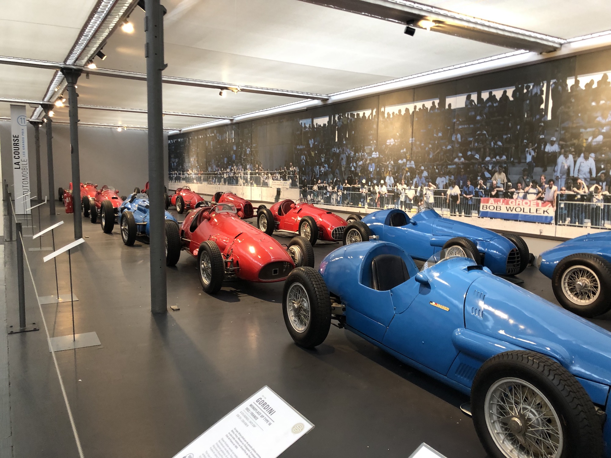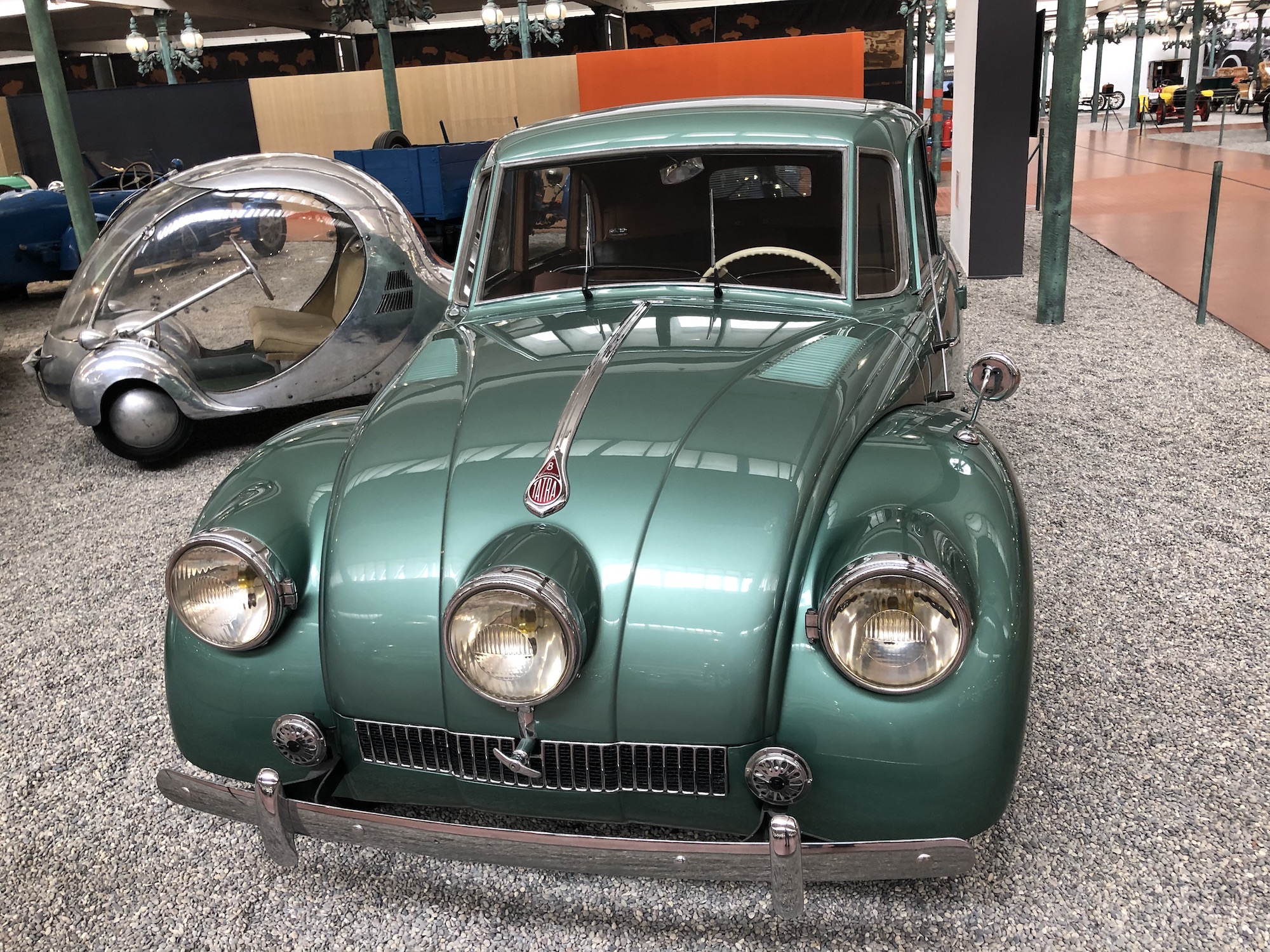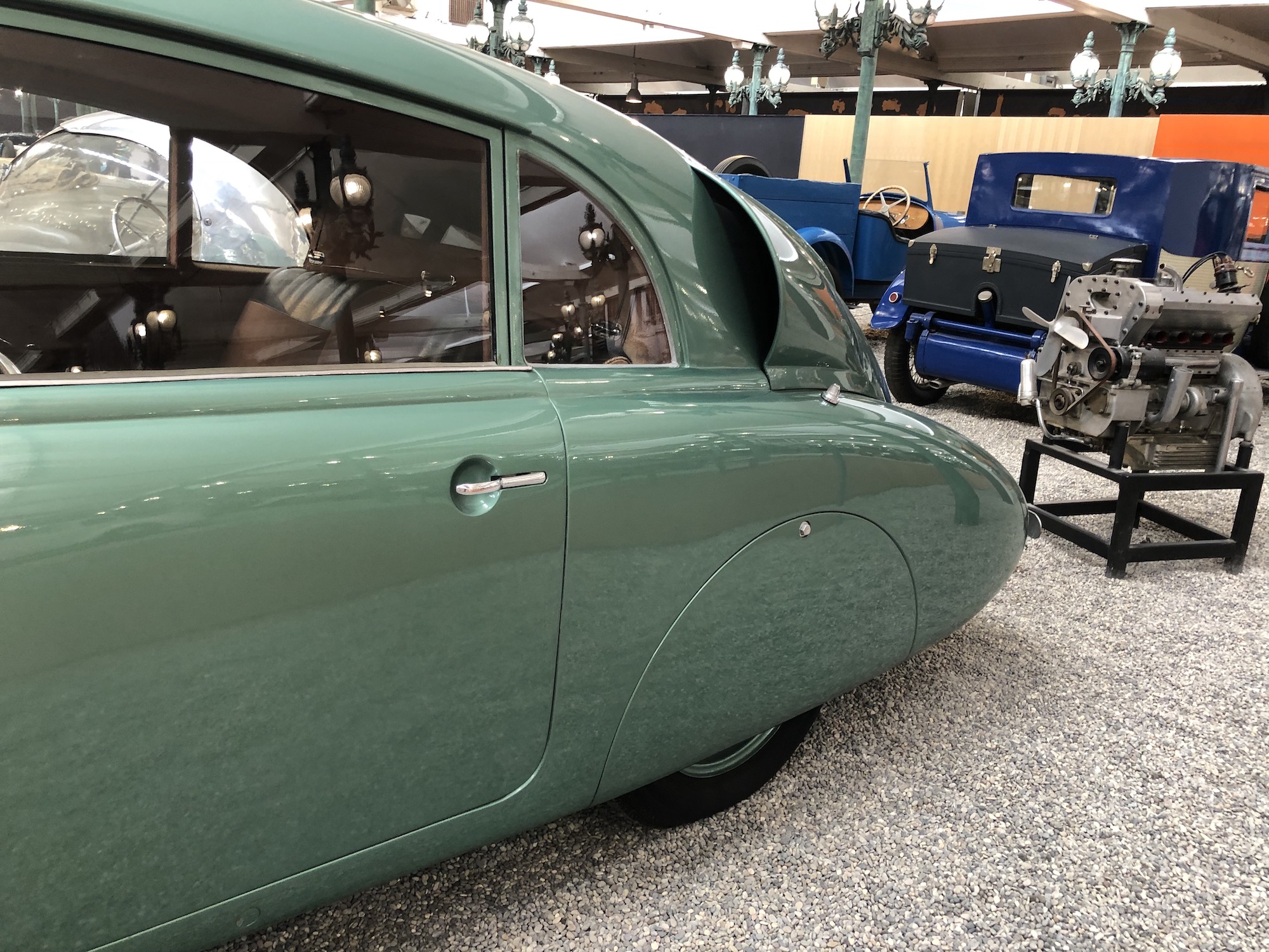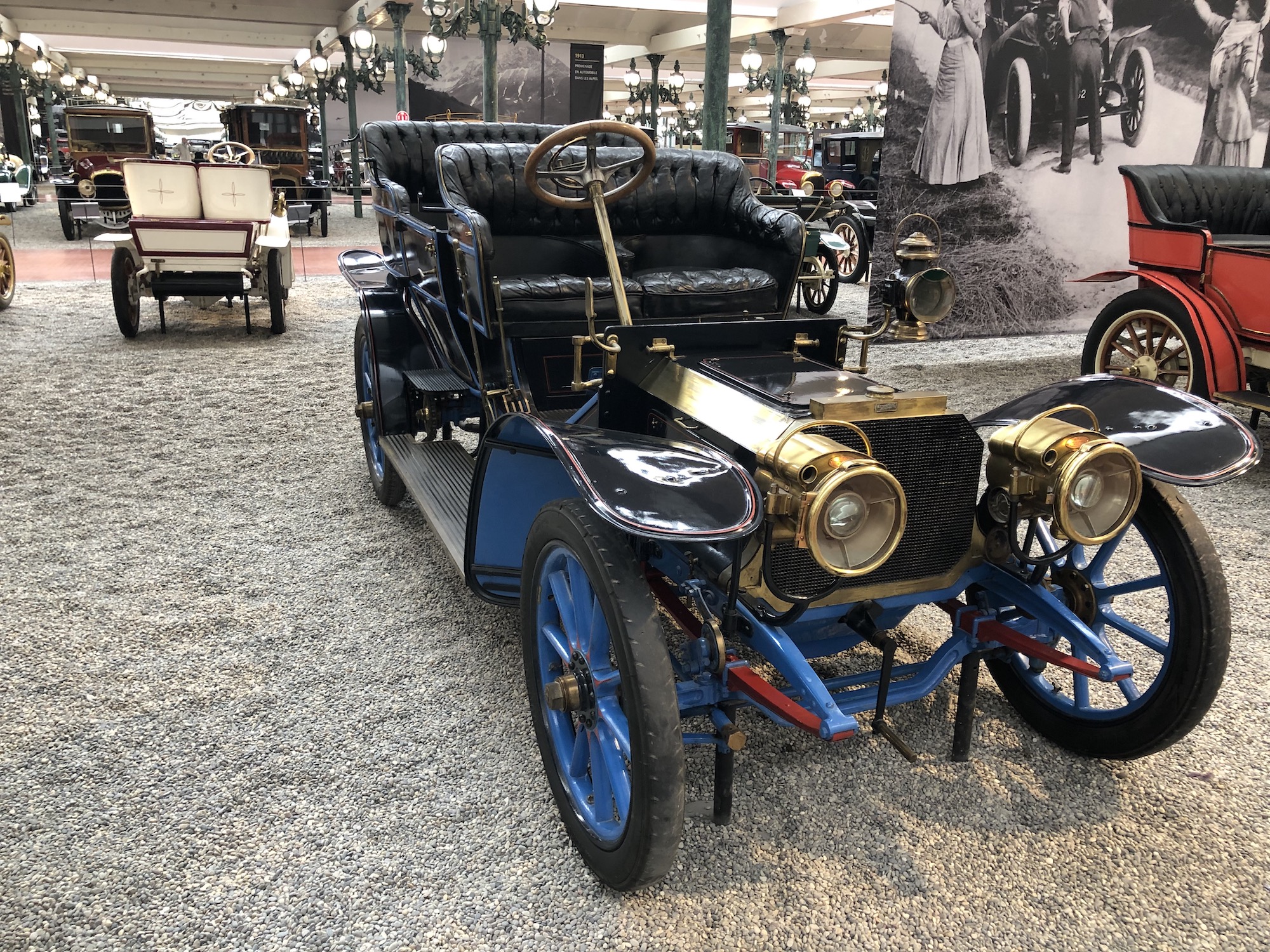 Das Museum beherbergt auch die größte Sammlung an Bugattis, was aufgrund der Nähe zum ehemaligen Bugatti-Standort im elsässischen Molsheim keine Überraschung darstellt. Auffallend ist das Blau, das vorherrscht.