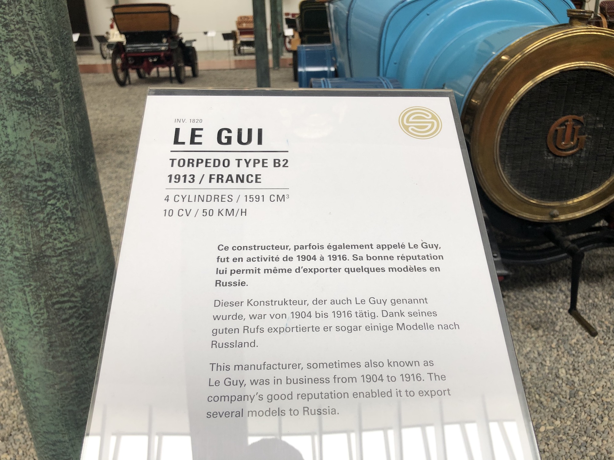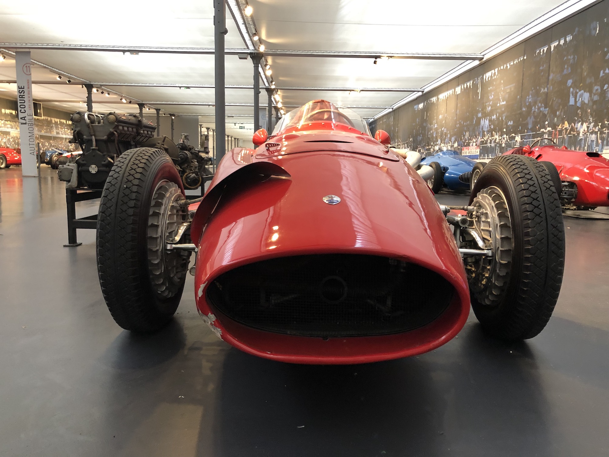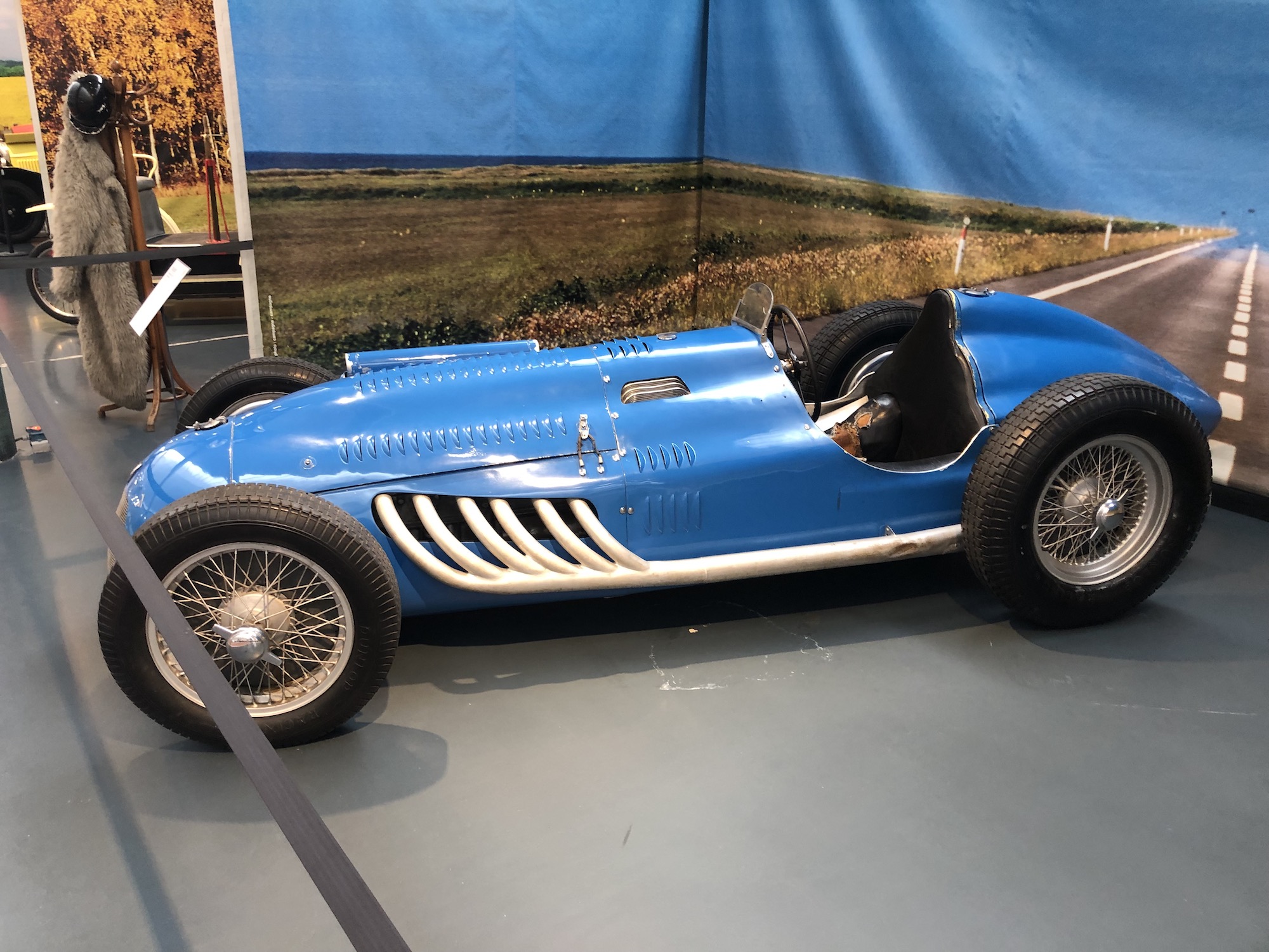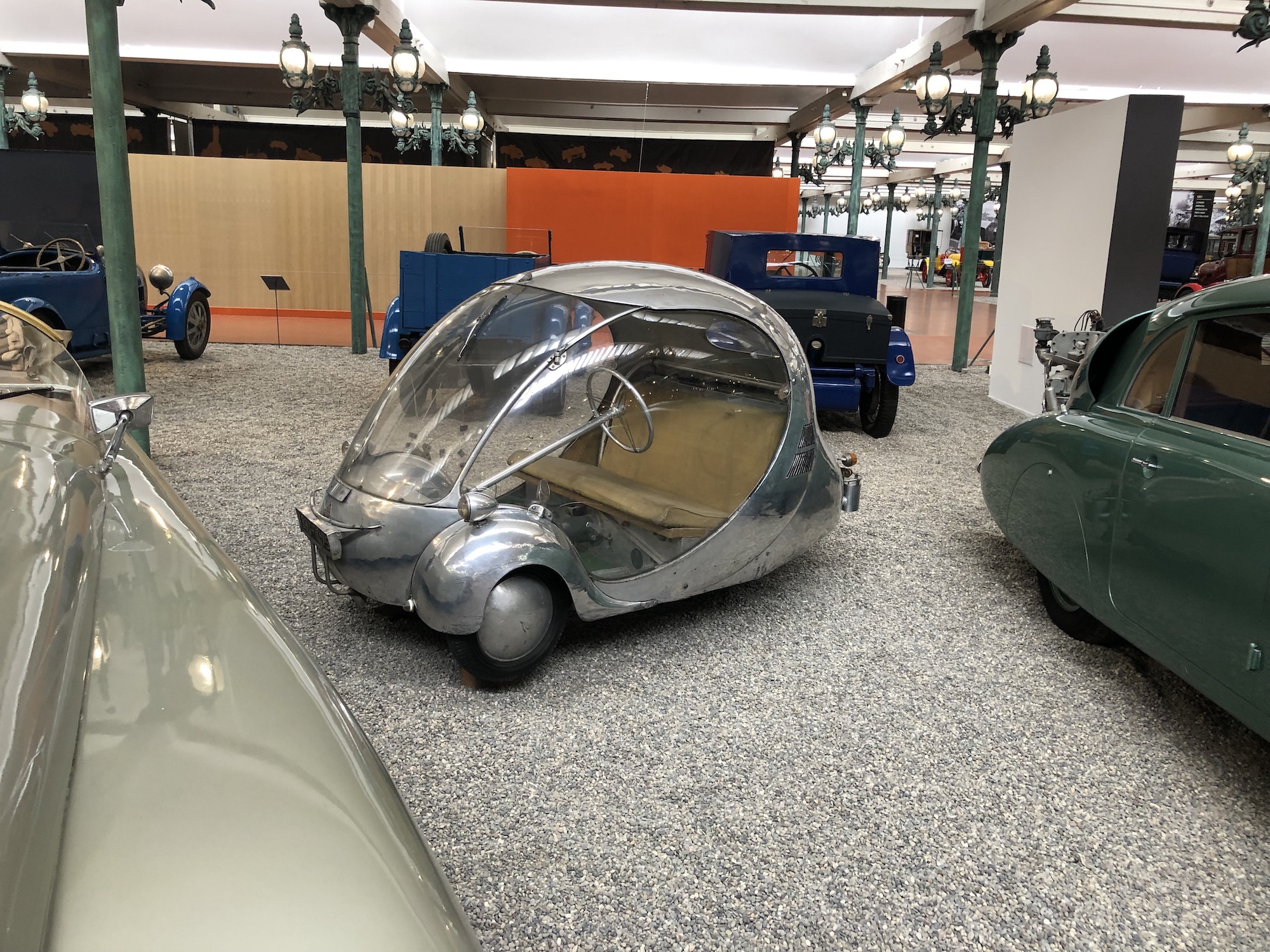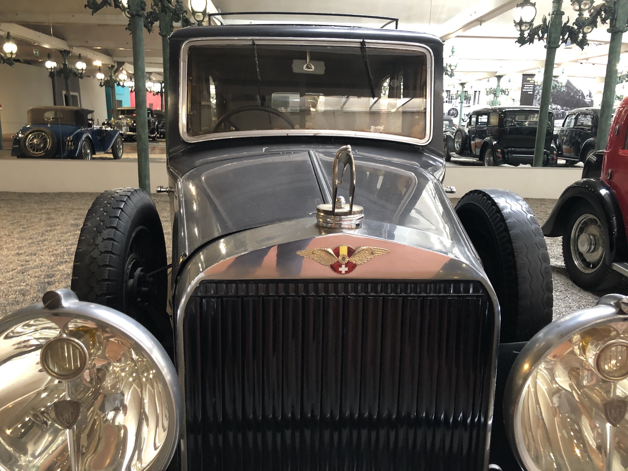 Das Museum beherbergt auch die größte Sammlung an Bugattis, was aufgrund der Nähe zum ehemaligen Bugatti-Standort im elsässischen Molsheim keine Überraschung darstellt. Auffallend ist das Blau, das vorherrscht.