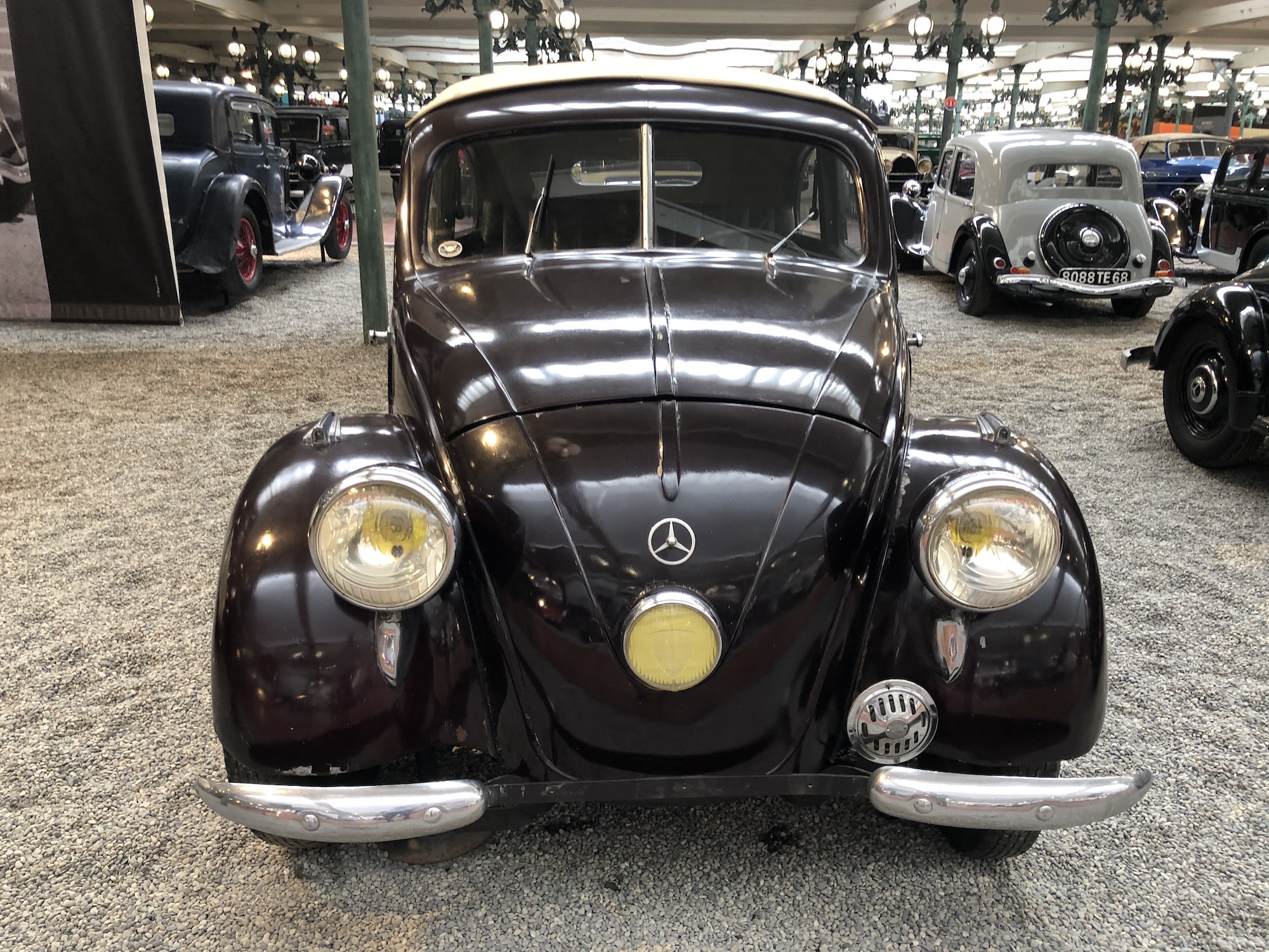 Stromlinienformen dominieren dann ab den 1930er Jahren das Design der Autos. Einige Kuriositäten sind auch darunter, so beispielsweise ein Käfer mit einem Mercedes Stern. Und Ja, es handelt sich beim Konstrukteur um Ferdinand Porsche, der 1937 im Auftrag von Daimler-Benz dieses Fahrzeug baute.