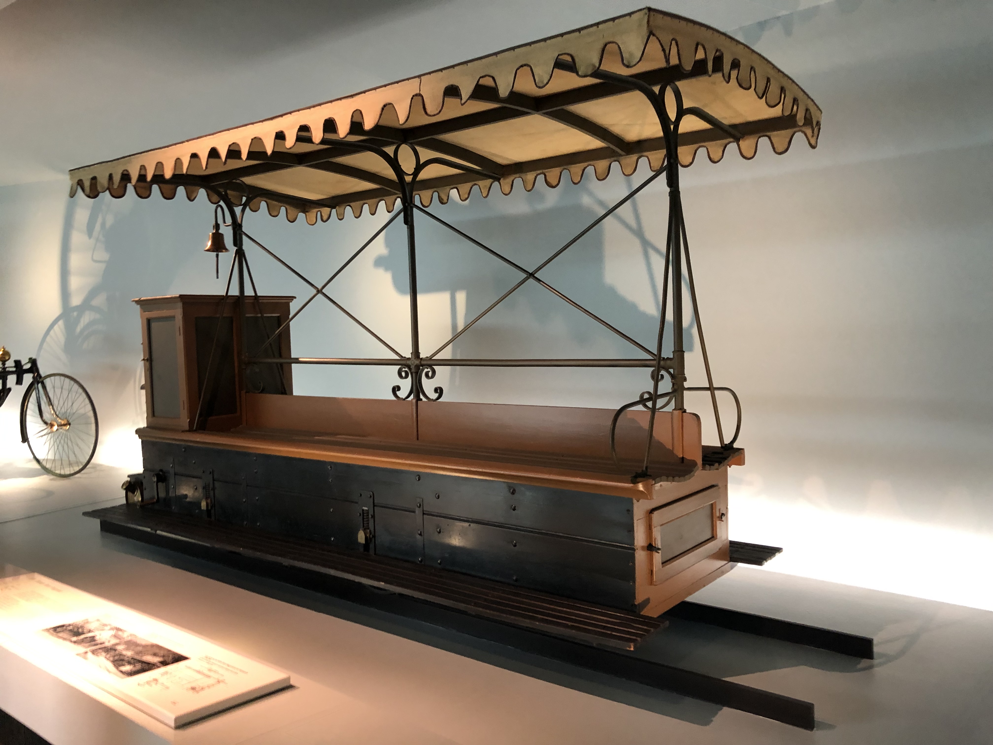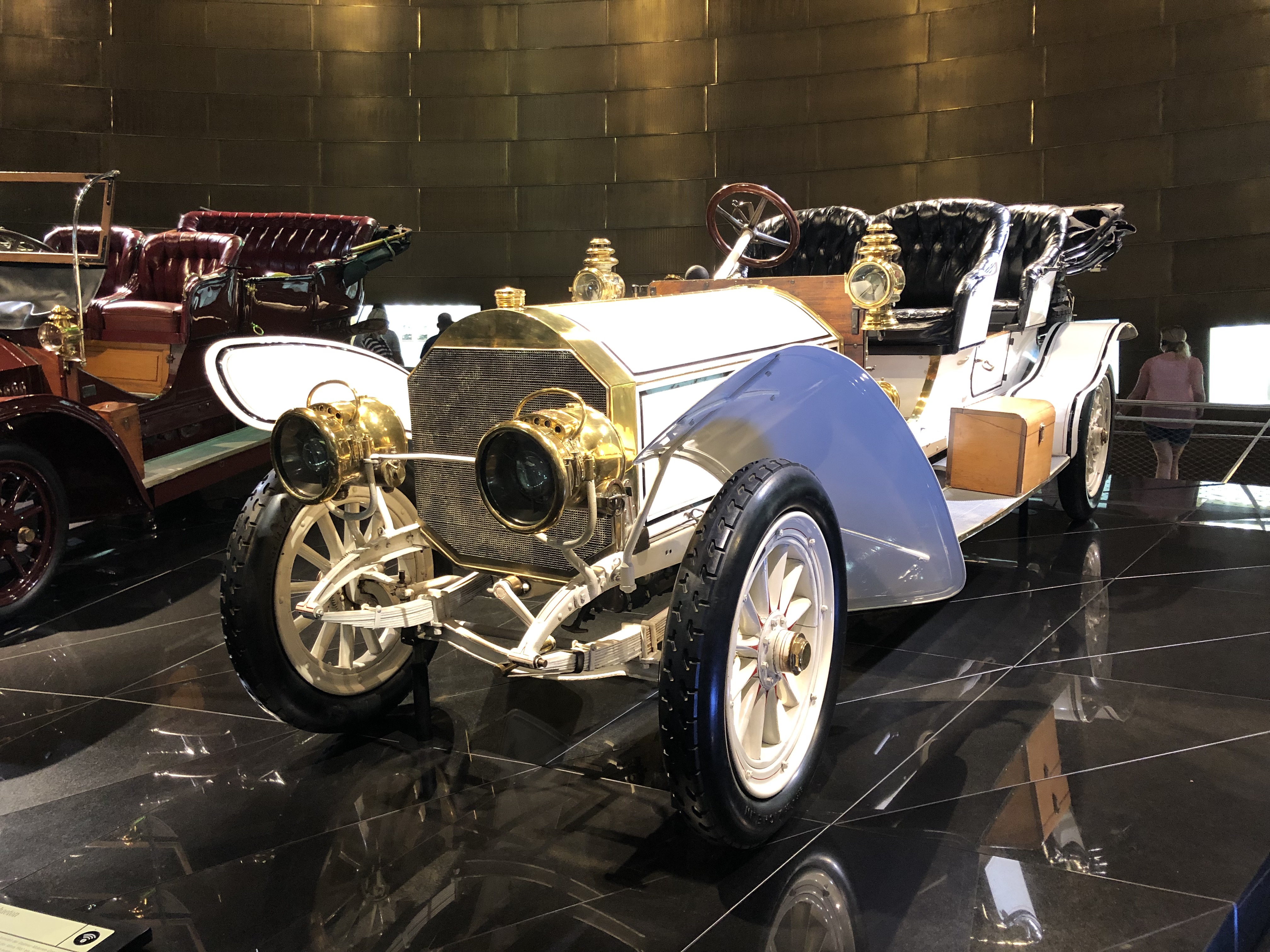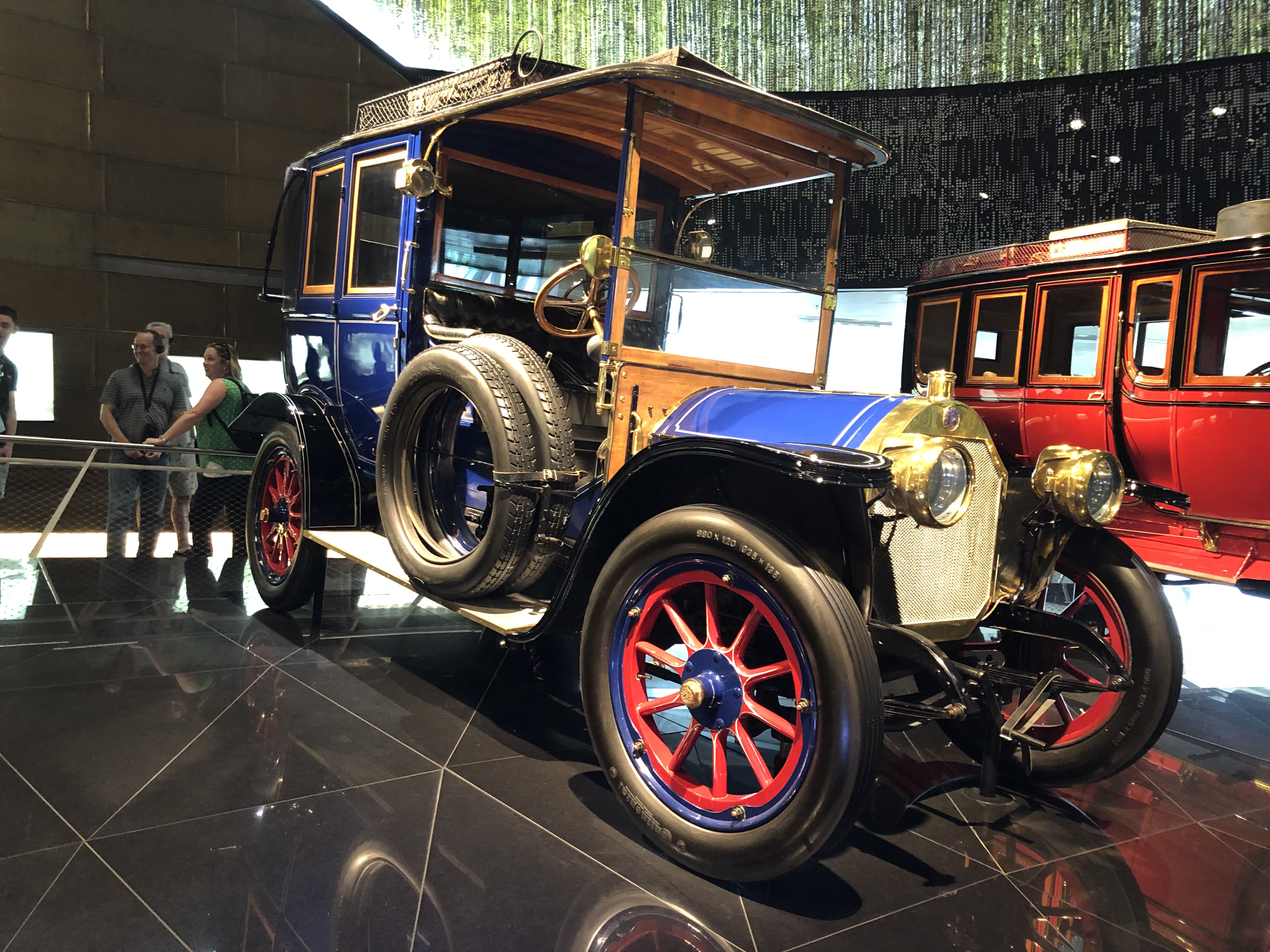 Automobile, wie wir sie nur mehr aus alten Filmen und dem Museum kennen, die noch kastenförmige Aufbauten hatten und teils offen fuhren, bilden dann auf der nächsttieferen Etage die Besucher weiter.