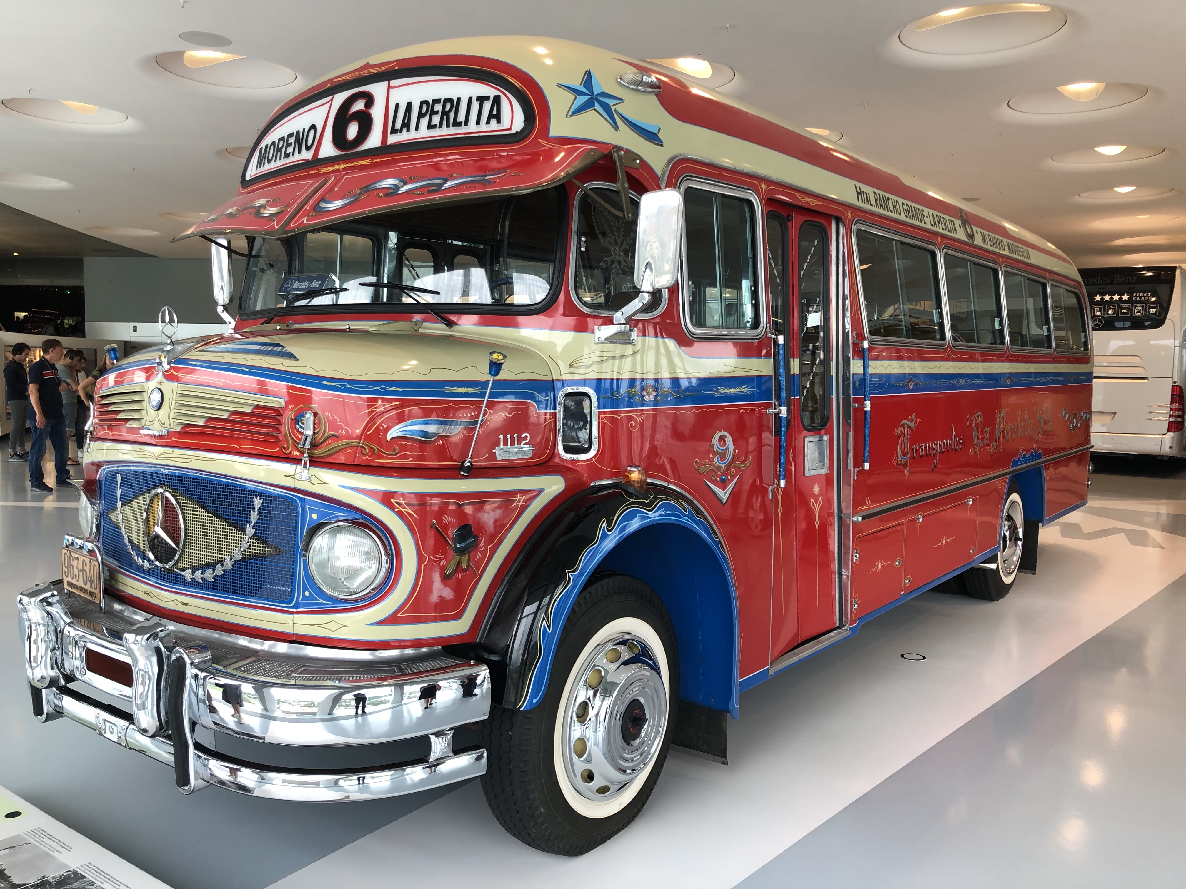 Busse, wie wir sie noch nicht gesehen haben, amüsieren und erstaunen zugleich die Interessierten. So der in Argentinien hergestellte und üppig dekorierte Linienbus. Sein älteres englisches Pendant mutet beinahe zu dünn und fragil an, als dass er eine Kurve nehmen könnte, ohne seine Passagiere abzuschütteln, wären da nicht die verzierten Eisengitter.
