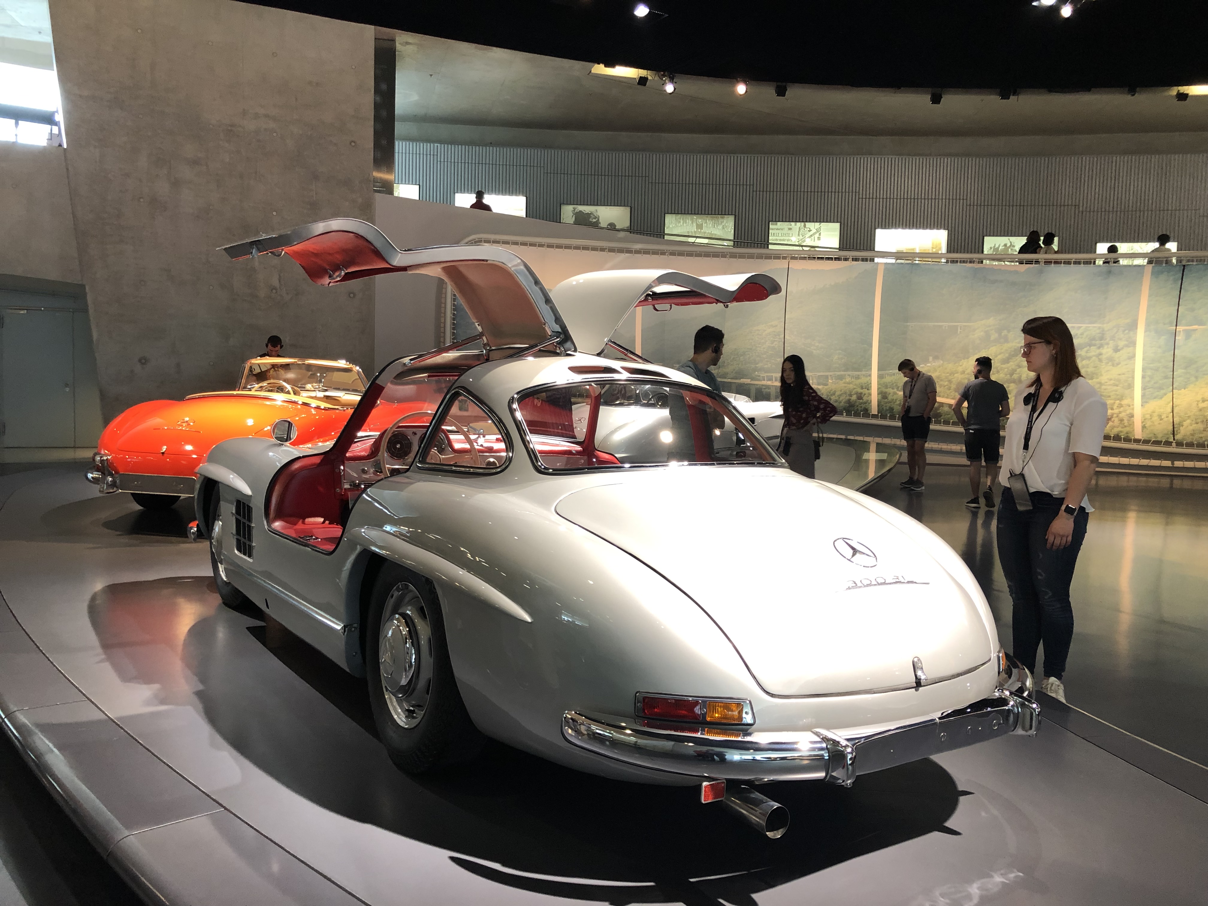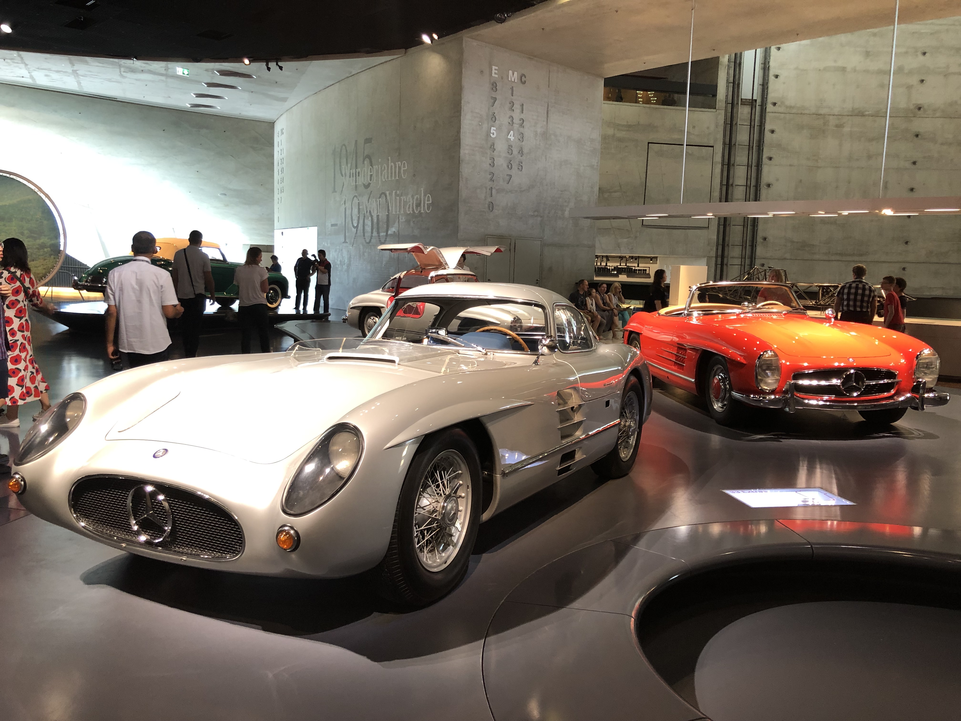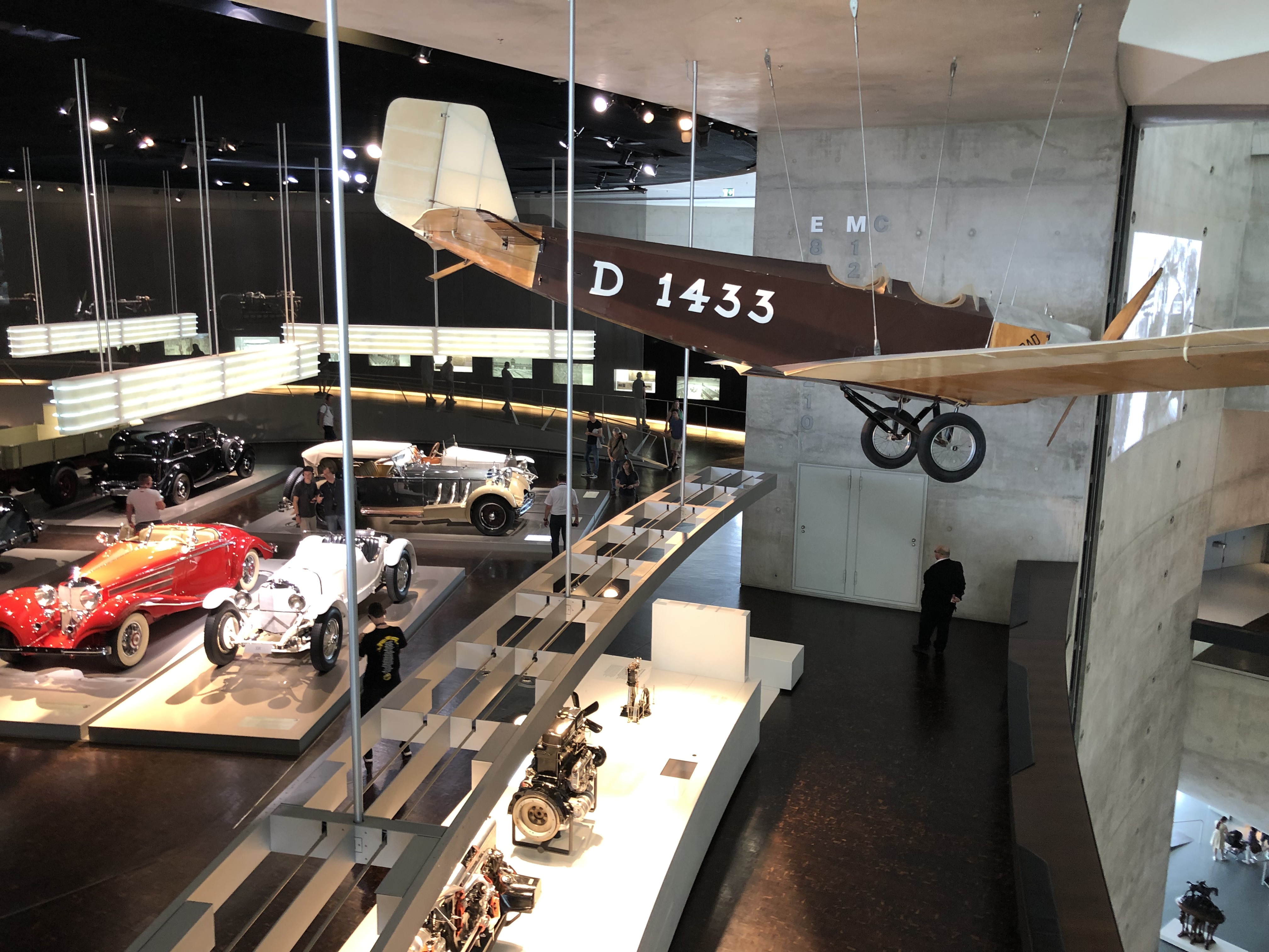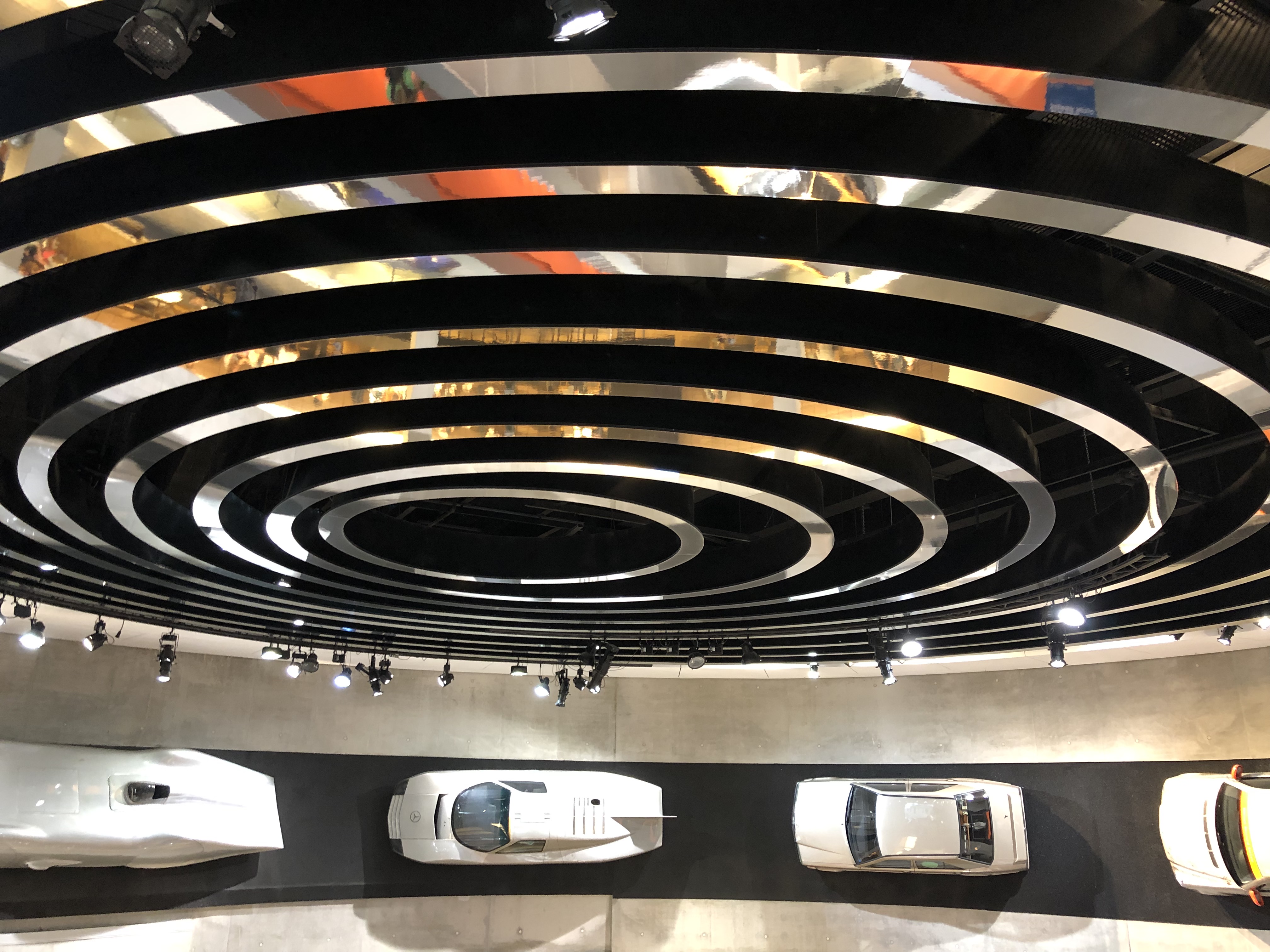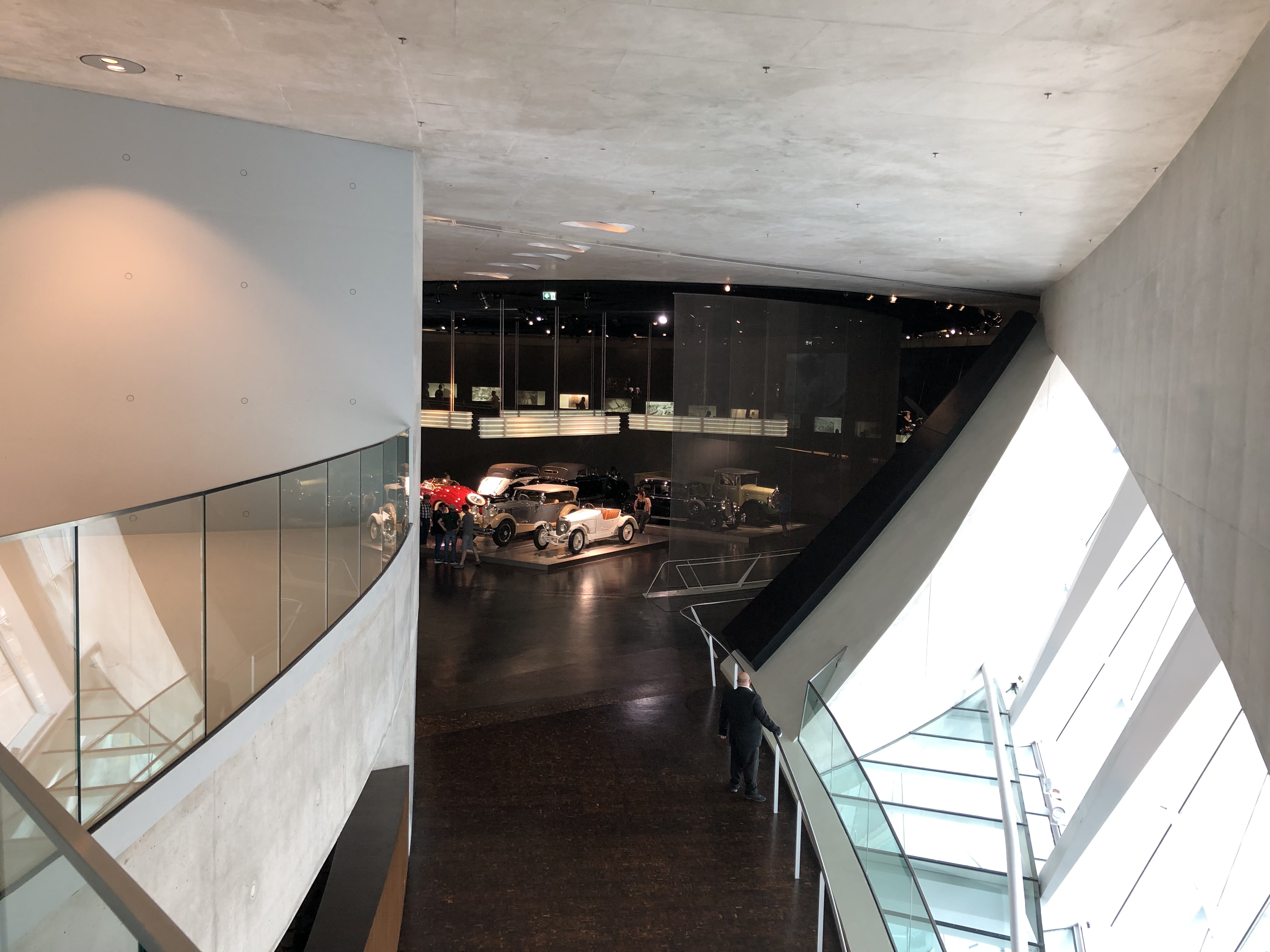 Das Mercedes Benz Museum in Stuttgart lädt zu einem Rundgang durch die Automobilgeschichte, und das ohne Besucher zu erschlagen. Im futuristisch anmutenden Brutalismus-Bau des Museums wandern die Interessierten von der obersten Etage – hinaufgebracht durch was man nicht anders als Silberpfeilaufzügen bezeichnen kann – in Spiralen abwärts von den Anfangszeiten über 100 Jahre in die Gegenwart und Zukunft.