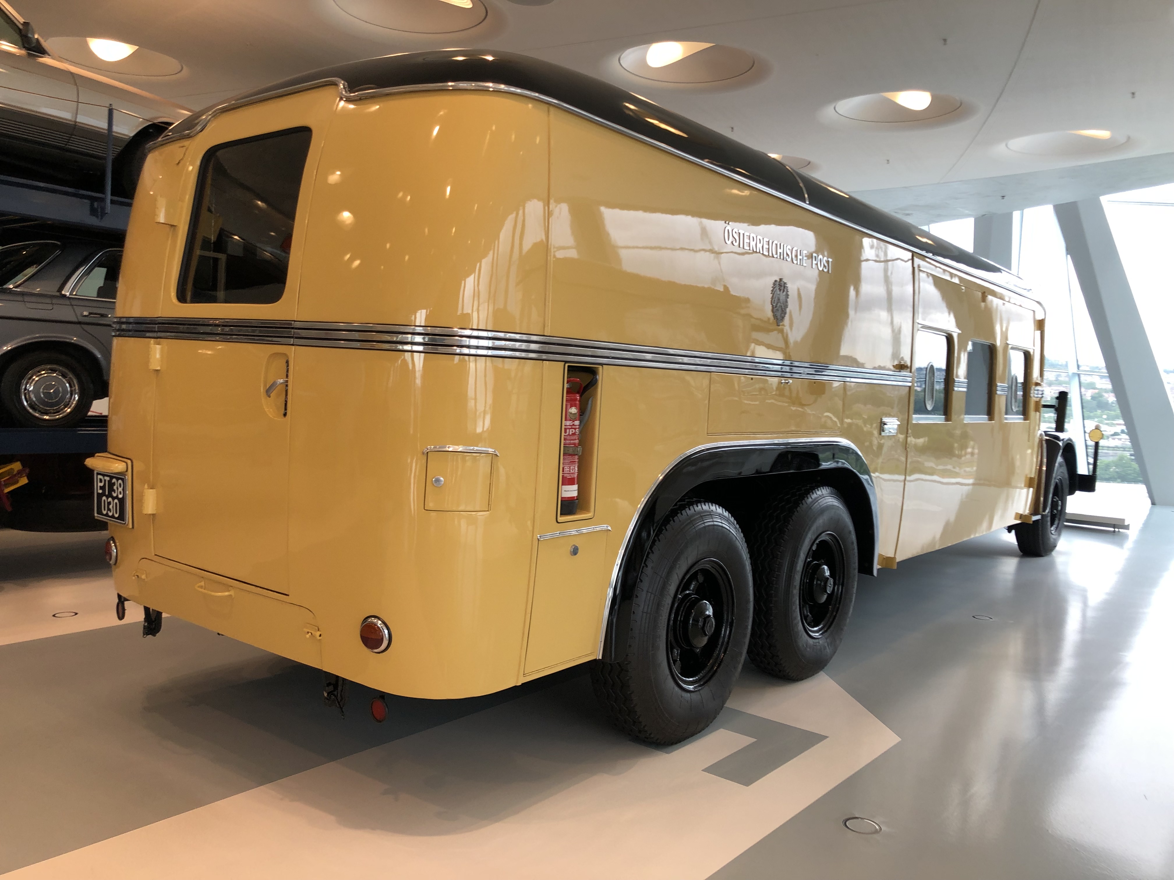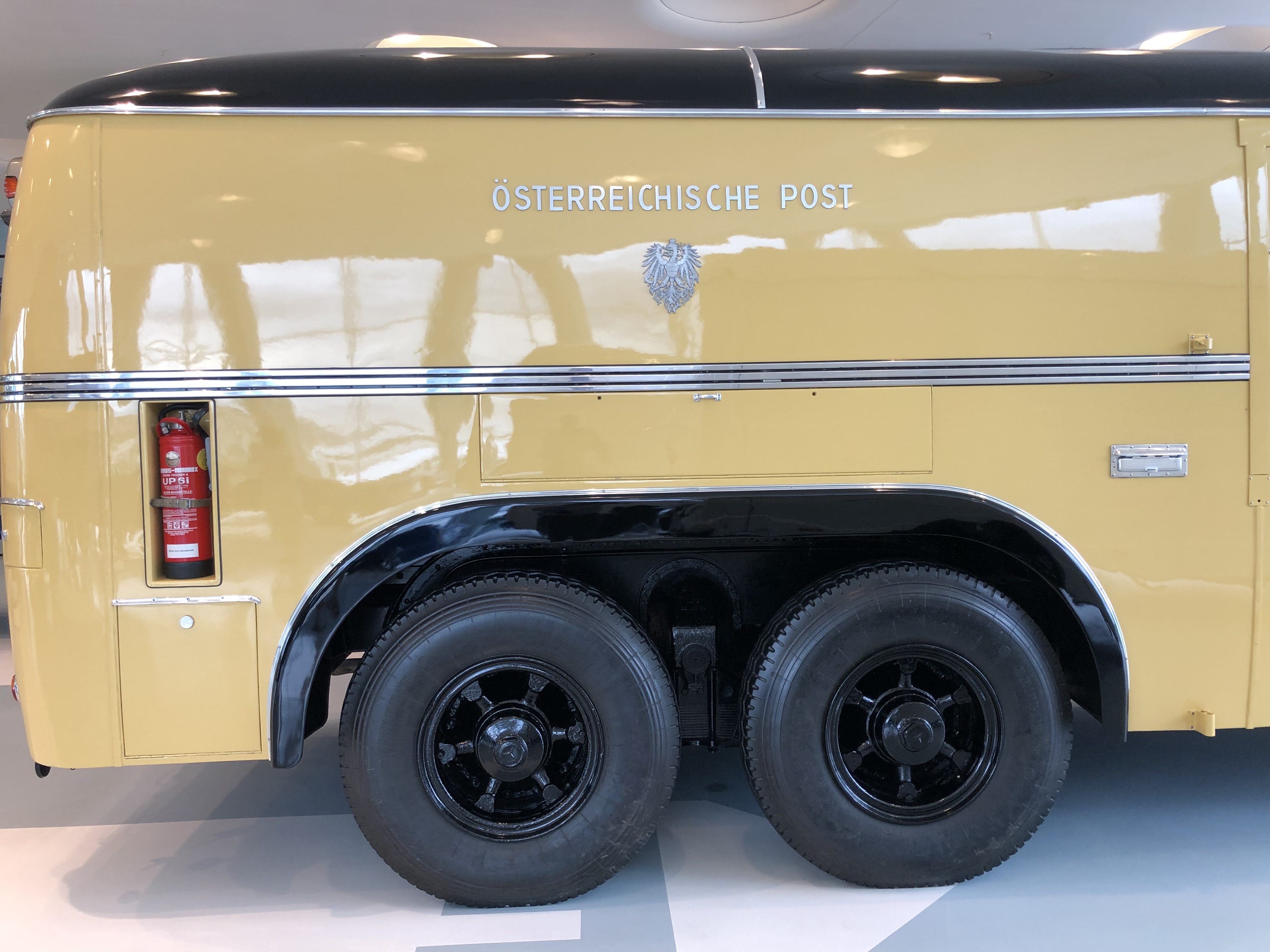 Ein Postbus mit Doppelachse hinten ist nicht nur ein Bus der Postsäcke transportiert. Nein, es war das Postamt auf Rädern. Eingesetzt von der österreichischen Post bot er Platz für gleich vier Schalterbeamte und hatte sogar einen Briefeinwurfschlitz. Details, Details, Details!