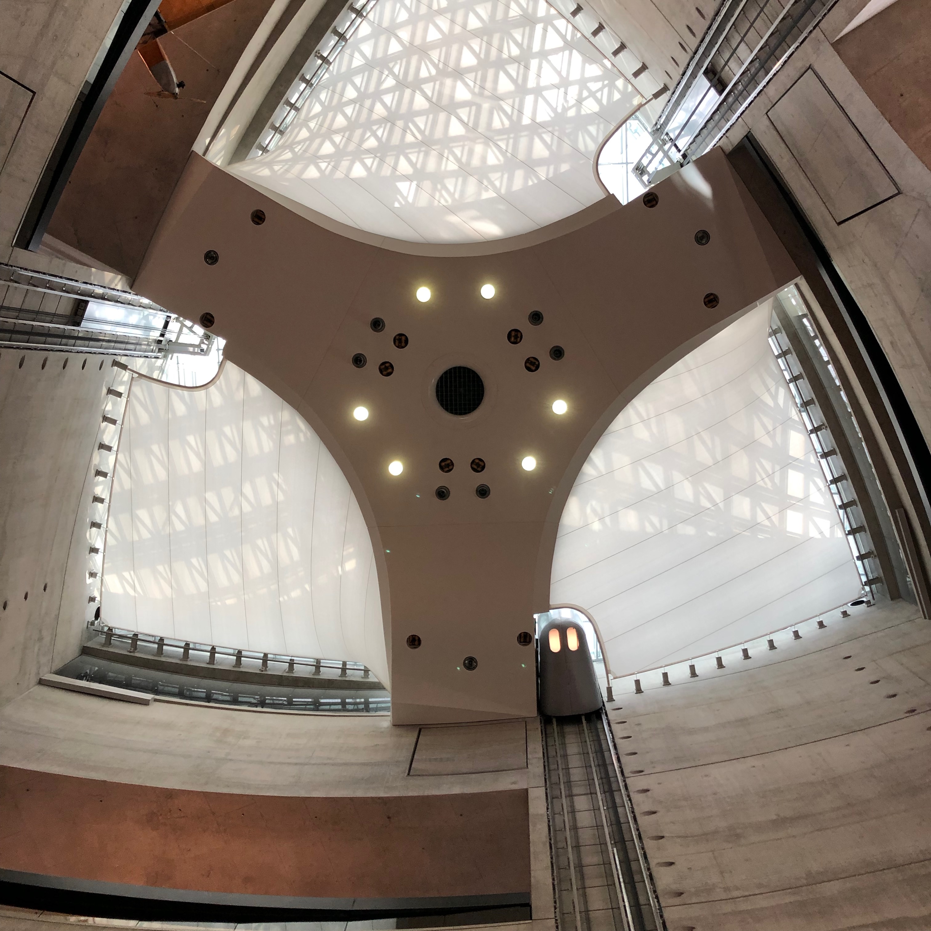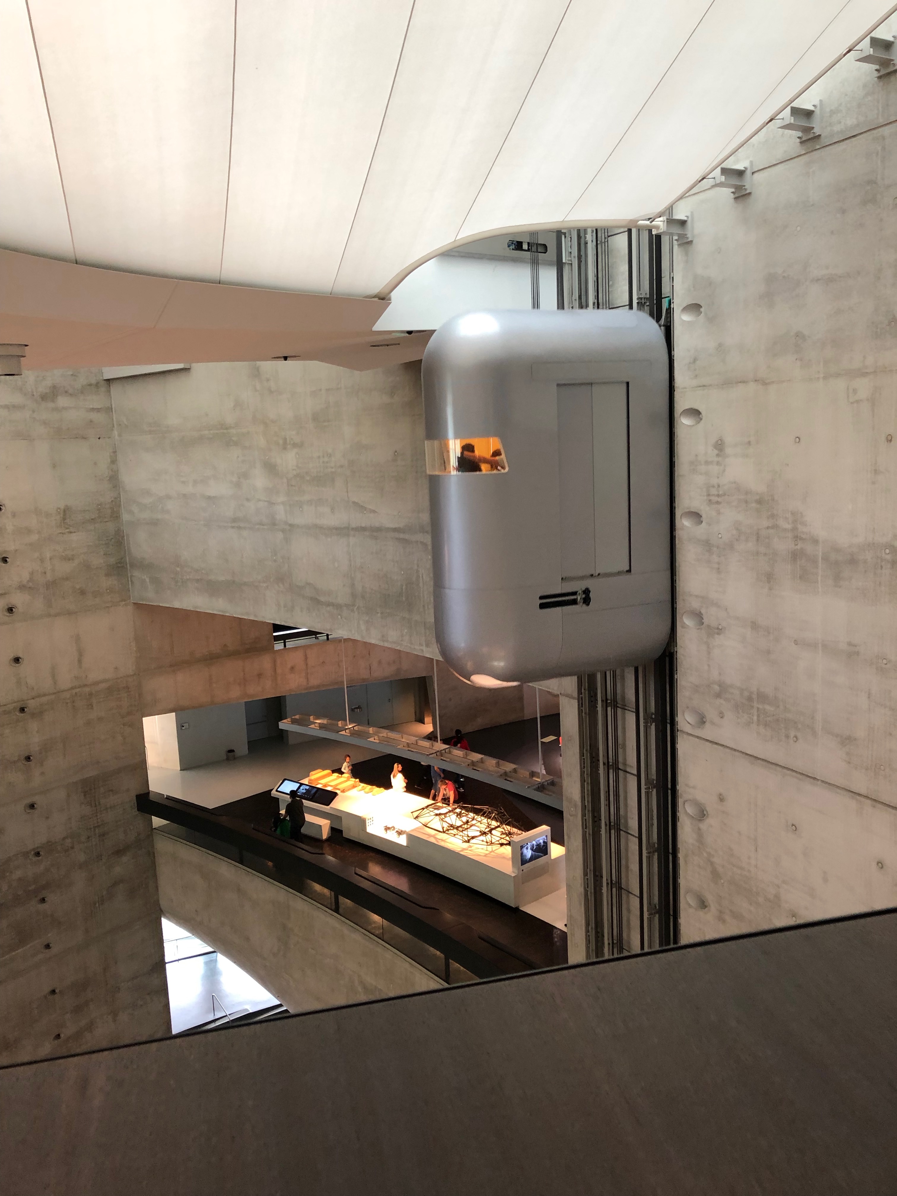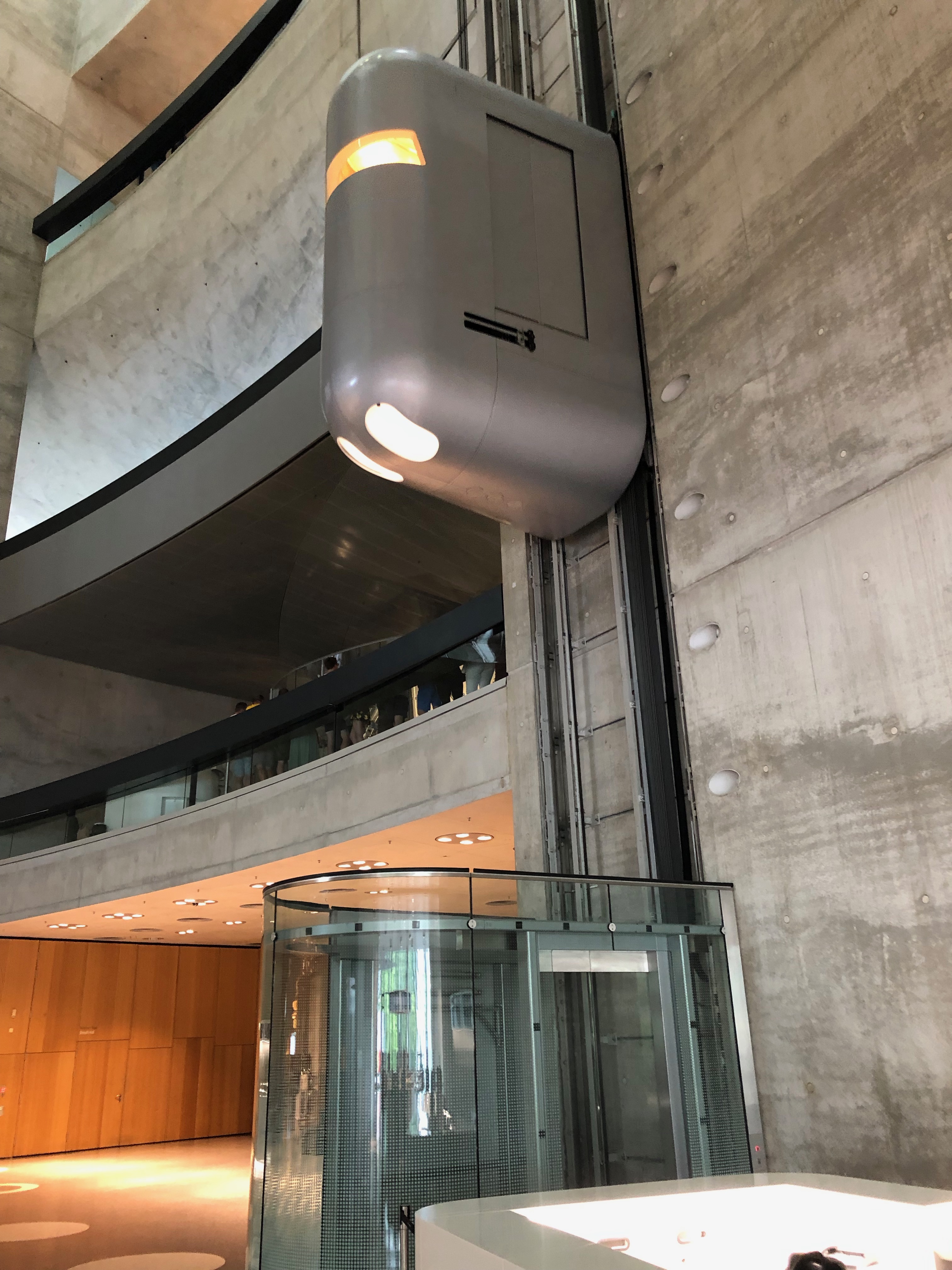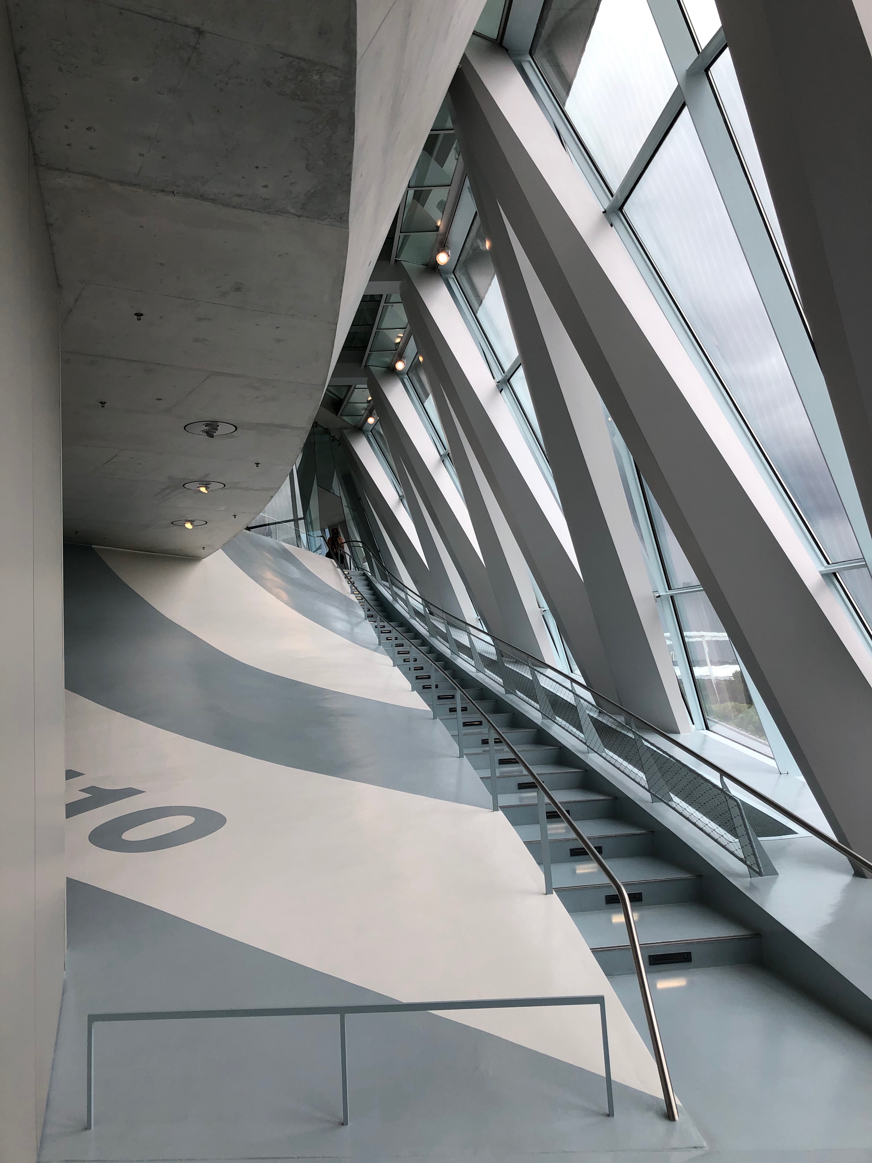 Wer Mercedes Benz Museum sagt, darf das Gebäude selbst nicht vergessen. Dieses alleine ist bereits sehenswert. Von den schon erwähnten Silberpfeilaufzügen, zur lichtdurchflossenen Brutalismusarchitektur und Designelementen die die Ausstellungsstücke ergänzen dient alles, um die Marke Mercedes Benz zu unterstützen.