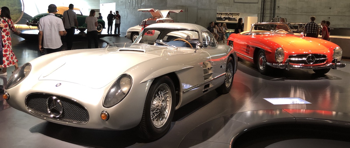 Das Mercedes Benz Museum in Stuttgart lädt zu einem Rundgang durch die Automobilgeschichte, und das ohne Besucher zu erschlagen. Im futuristisch anmutenden Brutalismus-Bau des Museums wandern die Interessierten von der obersten Etage – hinaufgebracht durch was man nicht anders als Silberpfeilaufzügen bezeichnen kann – in Spiralen abwärts von den Anfangszeiten über 100 Jahre in die Gegenwart und Zukunft.