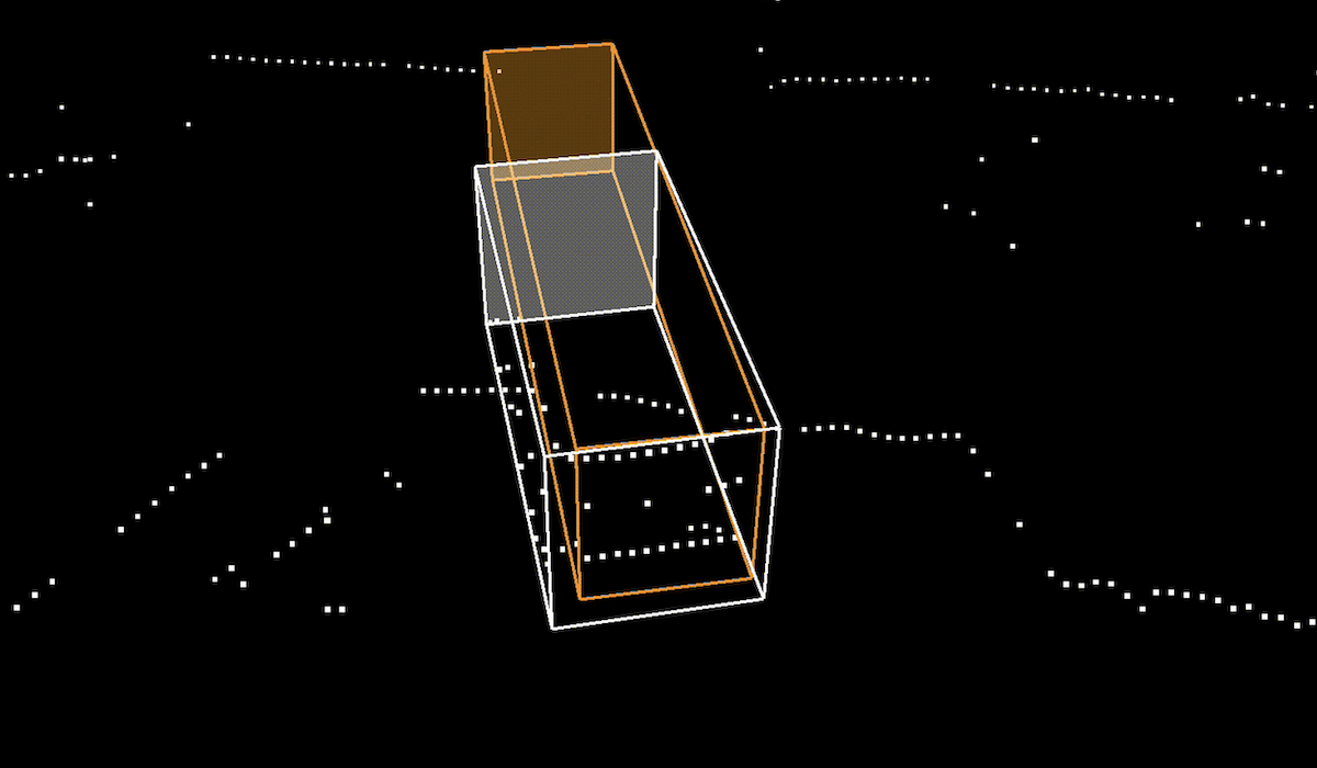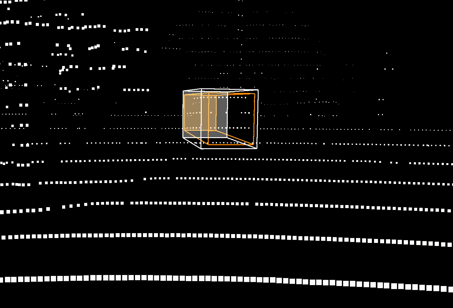| Annotation eines Fahrzeugs aus einer Kombination von Video- und LiDAR-Daten. | Ansicht von oben der LiDAR-Daten |