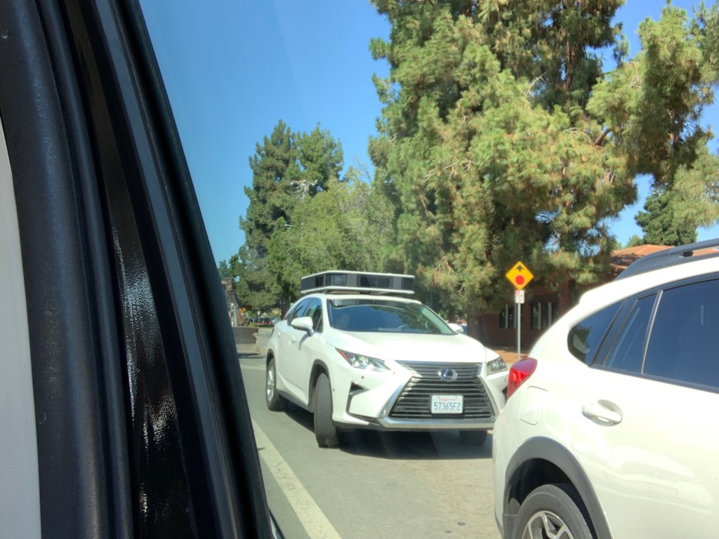 Nachdem vor einigen Wochen das erste Video der neuen Sensorkonfiguration von Apples autonomen Autos aufgetaucht sind, gibt es nun neue Bilder aus der Nähe. Unsere Leser Jens & Katharina Lehmann haben das Fahrzeug in Cupertino gesichtet.