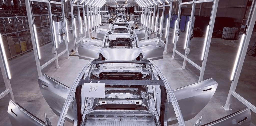 Erste Fotos von der Produktion im Inneren wurden auch schon veröffentlicht. Nicht vergleichbar mit den tollen Autofabriken unsere Automobilhersteller. Das kann mit den Spaltmaßen nichts werden.
