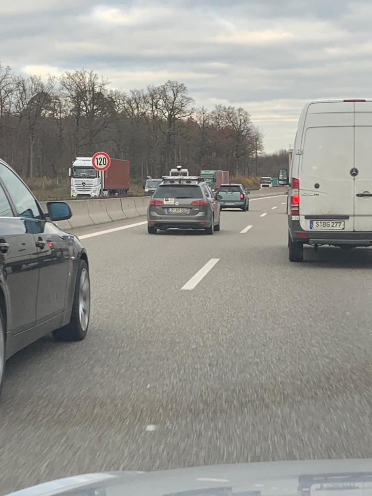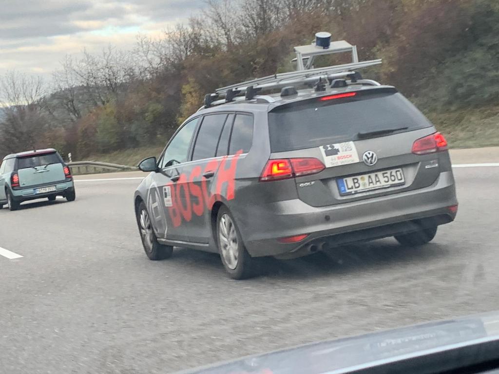 Dieses Fahrzeug von Bosch wurde am 2. Dezember 2019 kurz vor dem Kreuz Weinberg auf der A81 von einem Leser gesichtet.