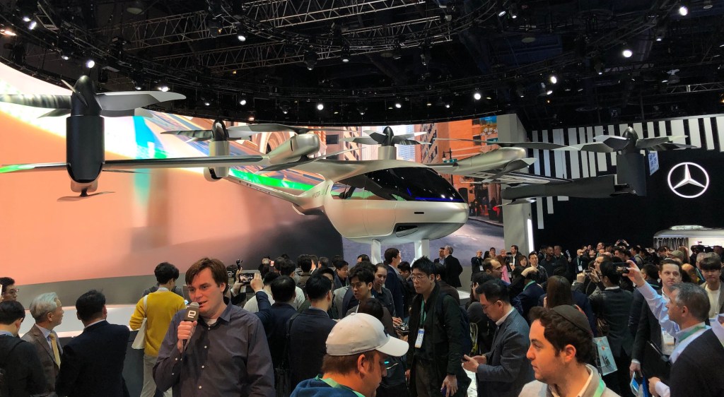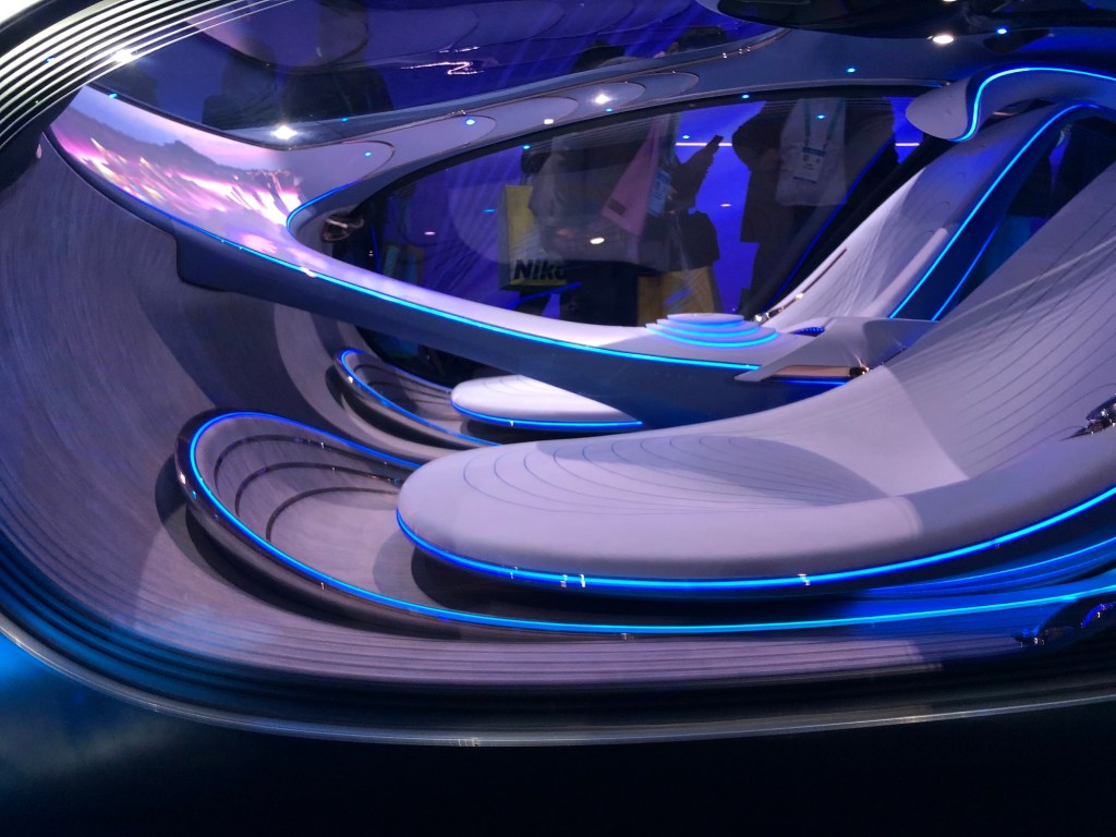 Zumindest bei einem Detail haben sie dazu gelernt: letztes Jahr nahmen viele Besucher den Mercedes-Stand in Beschlag, um von der Erhöhung den Bell Nexus – den aus Avatar bekannten Helikopter – besser fotografieren zu können. Das wurde dieses Jahr unterbunden, indem eine Wand zu dieser Seite eingezogen worden war. Und dahinter stand diesmal nicht der Bell Nexus, sondern ein ebenso beeindruckendes Hyundai-Uber Flugtaxi.