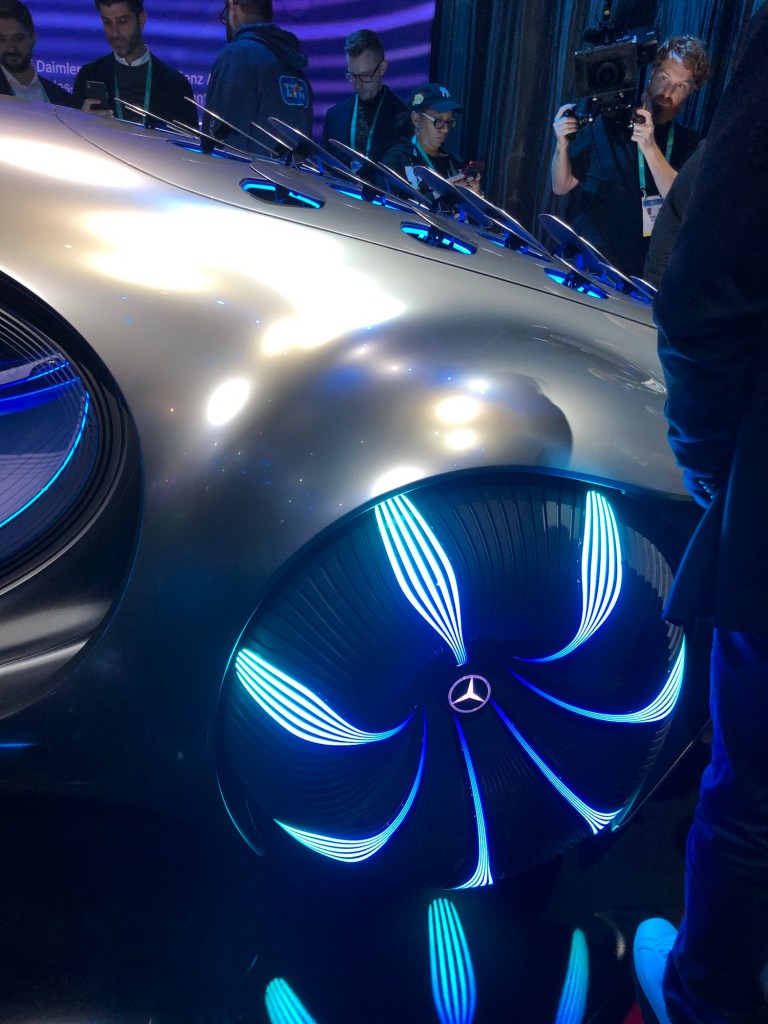 Dieses Jahr hat sich zumindest eine meiner Vorhersagen nicht bewahrheitet. Ein Mercedes-Verbrennungskraftfahrzeug war auf der CES nicht ausgestellt, dafür der Mercedes EQC und zwei Konzeptautos, die so nie gebaut werden, dafür aber vor allem eines bewirken: sie locken Publikum an.
