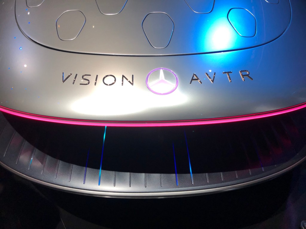 Zuerst wurde am Montag in der Abend-Keynote der Mercedes Vision AVTR vorgestellt, ein vom Film Avatar inspirierter Wagen, bei dessen Design auch der Avatar-Regisseur James Cameron mitgewirkt hat. Auffällig sind weniger die Silberfarbe oder das stromlinienförmige Design, denn dass gab es schon viele Mal in der Mercedes-Benz-Geschichte, sondern vor man die Kiemen am Heck. Ja, da sind irgendwie Kiemen oder Fischschuppen, die sich bewegen. Warum weiß keiner. Die Reifen wiederum sollen ein Fahren in alle Richtungen erlauben und sie leuchten. Lenkrad gibt’s auch keines, denn alle Konzeptautos der jüngsten Zeit sind selbstverständlich autonom Fahrzeuge.