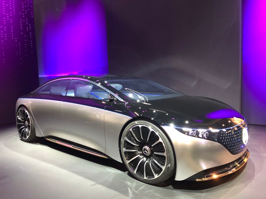 Dann war zweite Konzeptfahrzeug der Mission EQS, der schon länger bekannt ist. Elektrisch, autonom, silbrig.