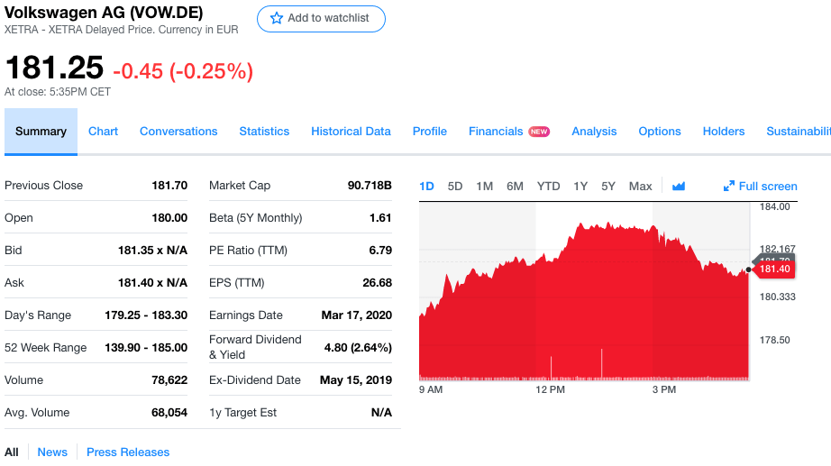 Zum Vergleich: Volkswagen, das wertvollste deutsche Automobilunternehmen, wurde zu Tagesende mit 100,67 Milliarden Dollar bewertet (90,718 Milliarden Euro). Volkswagen mit fast 11 Millionen im Jahr 2019 hergestellten Autos ist jetzt nur mehr weniger als 1% mehr wert als Tesla mit 367.500 hergestellten Autos im Jahr 2019.