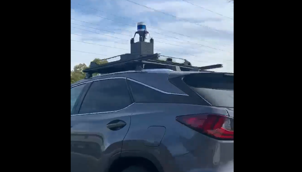 Unser Leser Stephen Clonts hat dieses unidentifizierte Fahrzeug mit einem LiDAR am Dach in Sunnyvale gesichtet. Um Hinweise, welches Unternehmen hier testet, wird gebeten.