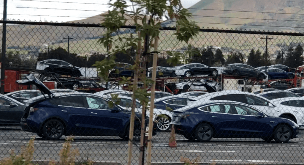 Es ist Anfang März und das Tesla Model Y ist bereits hier. Zumindest scheinen die Auslieferungslager in der Tesla-Fabrik in Fremont geradezu damit überfüllt zu sein. Die Parkplätze wo die Fahrzeuge auf die Autotransporter verladen werden, sind voll mit Model Y und Model 3. Das macht auch den Größenvergleich zwischen den beiden Fahrzeugtypen einfacher zu vergleichen.