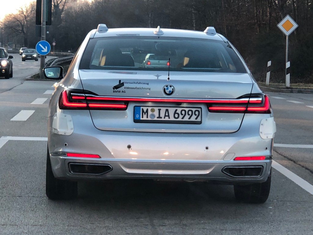 Unser Leser Dino Konrad hat ein weiteres Versuchsfahrzeug von BMW gesichtet. Dieser BMW 7 wurde von ihm am 1. April 2020 auf der Bundestrasse B11 zwischen Wolfratshausen und Geretsried gesichtet. Wie deutlich zu erkennen ist, befinden sich an den vier Ecken des Fahrzeugs Einbauten, die vermutlich Radar-bestückt sind und von denen die vorderen auch Kameras zu haben scheinen. Auch hinter dem Vorderrand befindet sich eventuell eine Kamera, sowie oben mittig bei der Rückscheibe.
