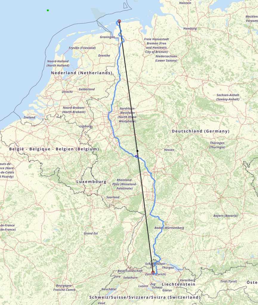 • Geringste Anzahl Zwischenstopps auf 700 km Distanz (Anzahl Stops)