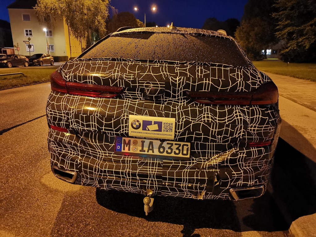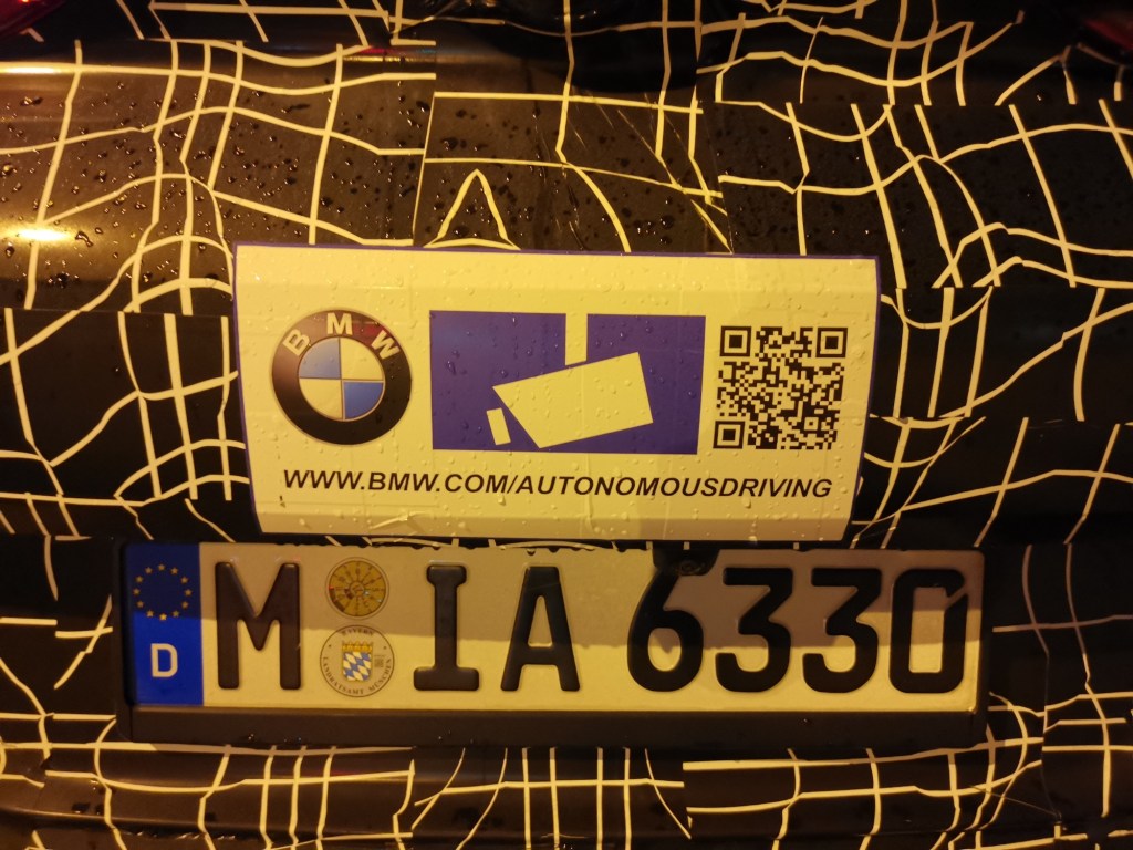 Von unserem Leser Robert Brüggmann kommen diese Bilder aus München eines BMW Erlkönig mit Aufkleber, die auf BMWs Autonomous Driving Programm hinweisen. Am Fahrzeug selbst sind keine Sensoren zu erkennen, die auf autonomes Fahren hinweisen.