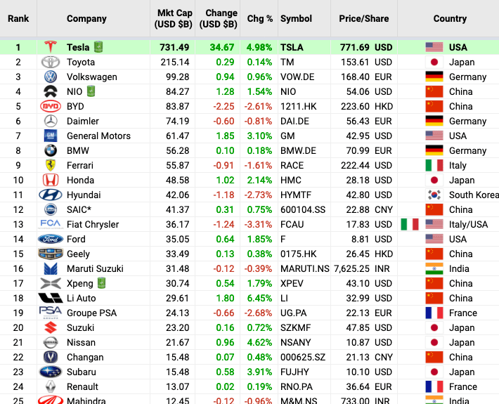 Auch die chinesischen Elektroautohersteller NIO und BYD sehen ihre Börsenbewertungen am Steigen. Die beiden Unternehmen belegen nach Tesla, Toyota und Volkswagen nun den vierten und fünften Platz der wertvollsten Automobilunternehmen, noch vor Daimler, General Motors und BMW.