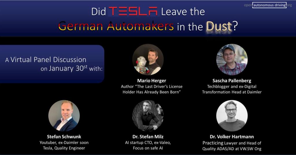 Am Samstag, dem 30. Jänner 2021 veranstaltet die Autonomous Driving Meetup-Gruppe aus München eine Virtual Panel Discussion #1. Registrieren kann man sich hier.