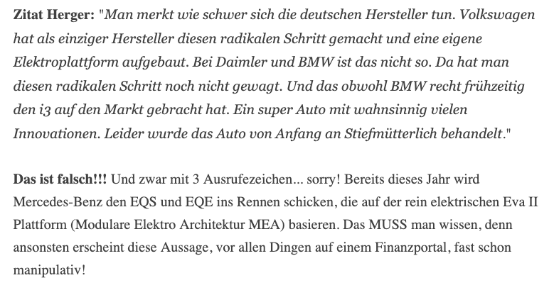 Die Panelisten sind aus verschiedensten Disziplinen und gleich aus drei verschiedenen Kontinenten. Auch ich wurde eingeladen dabeizusein. Dass es kontrovers zugehen soll, wurde schon im Vorfeld klar gemacht. Wie kontrovers es bereits im Vorfeld zum Meetup zugehen würde, wurde mir heute bewusst, als ich einen längeren Artikel unter dem vielversprechenden Titel Faktencheck der Tesla Blase am Beispiel Mario Herger vorfand, der auf Basis eines kürzlich von mir gegebenen Interviews der Zeitschrift Der Aktionär den Versuch macht, sich wieder einmal die deutsche Automobilindustrie schöner zu saufen, als sie aktuell ist. Das wird nochmals ein riesiger Kater werden, der sich ja angesichts der massiven Stellenabbauten bei deutschen Herstellern schon letztes Jahr abzuzeichnen begonnen hat.