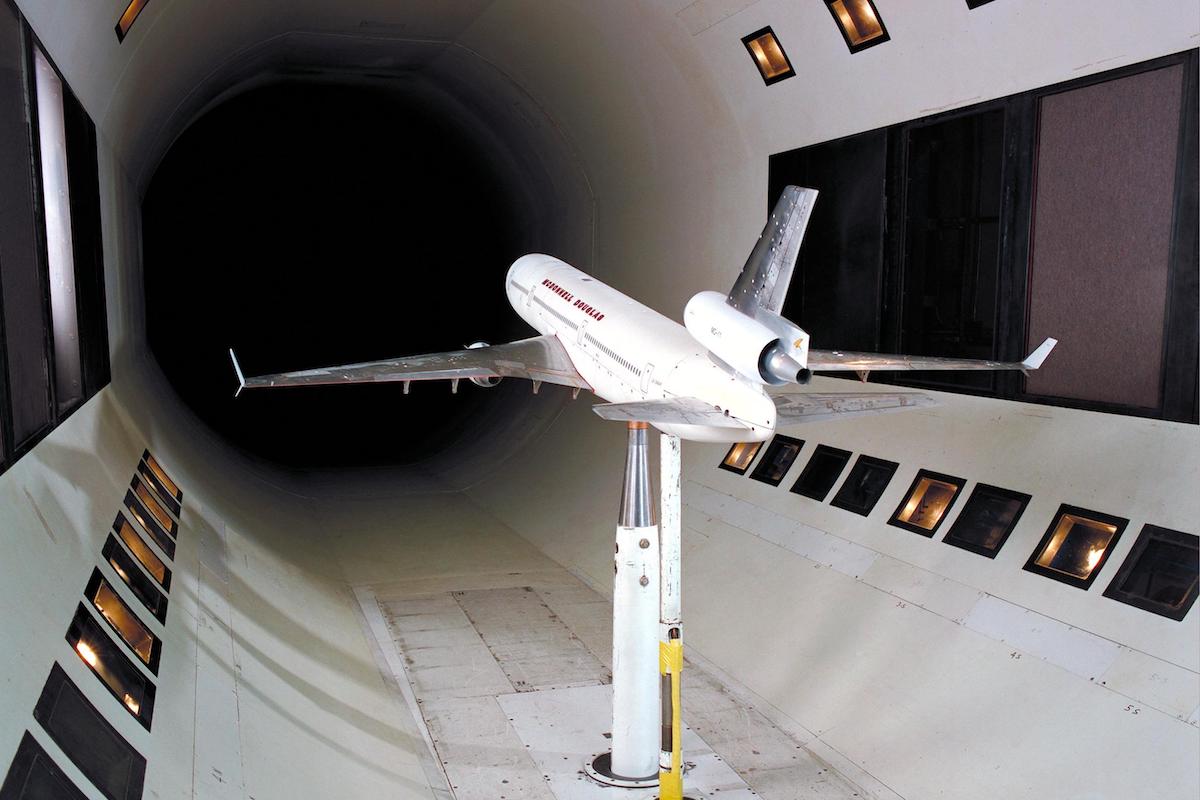 Flugzeug im Windkanal – Quelle: Wikipedia