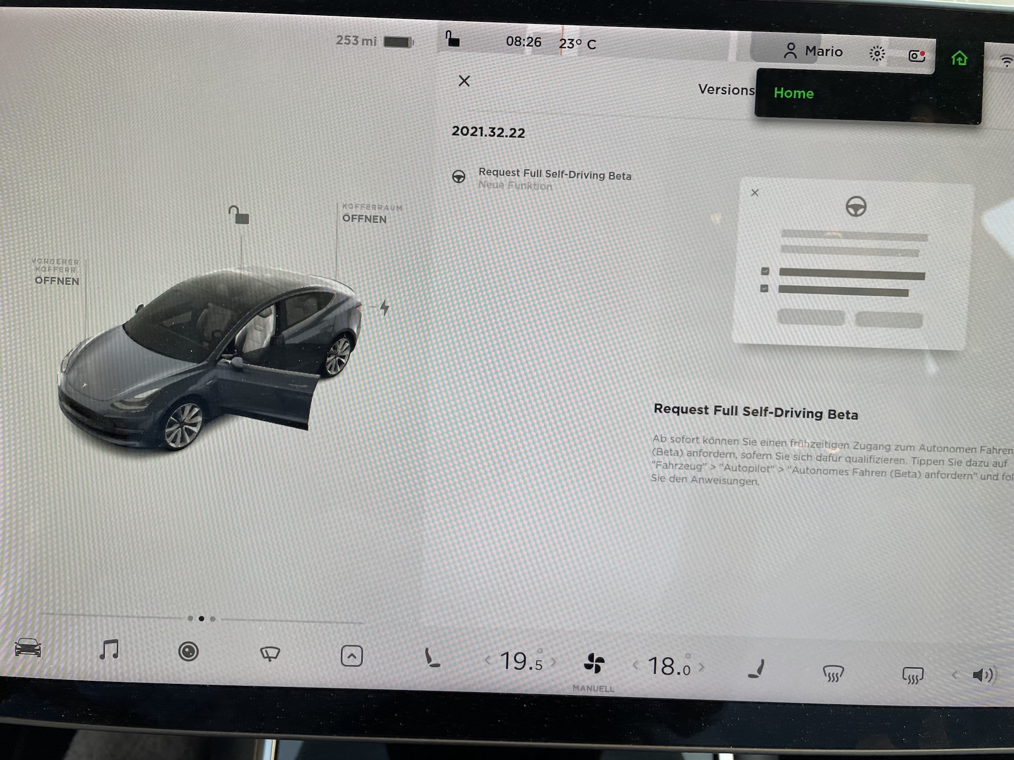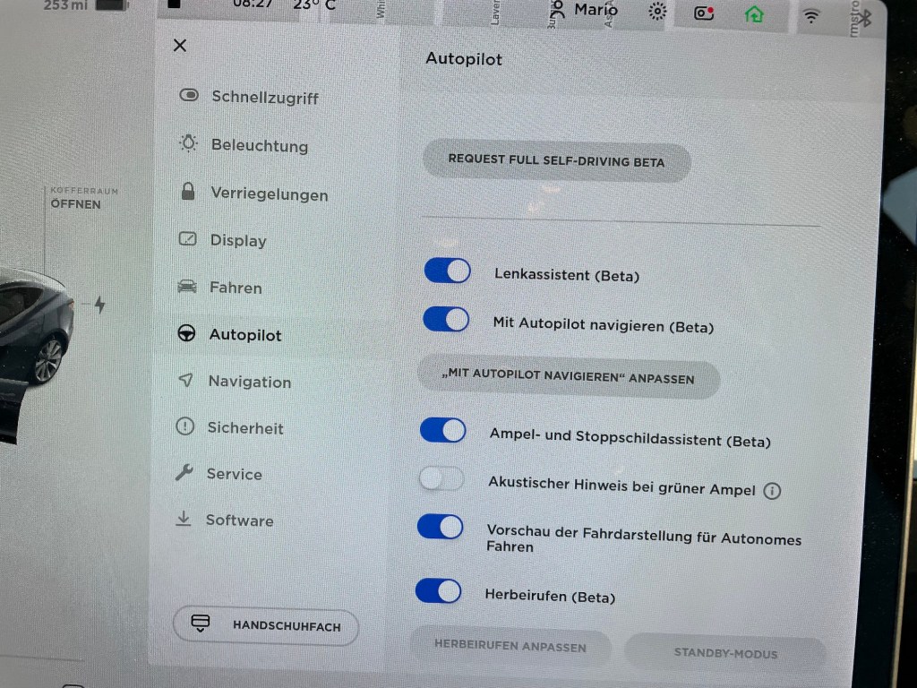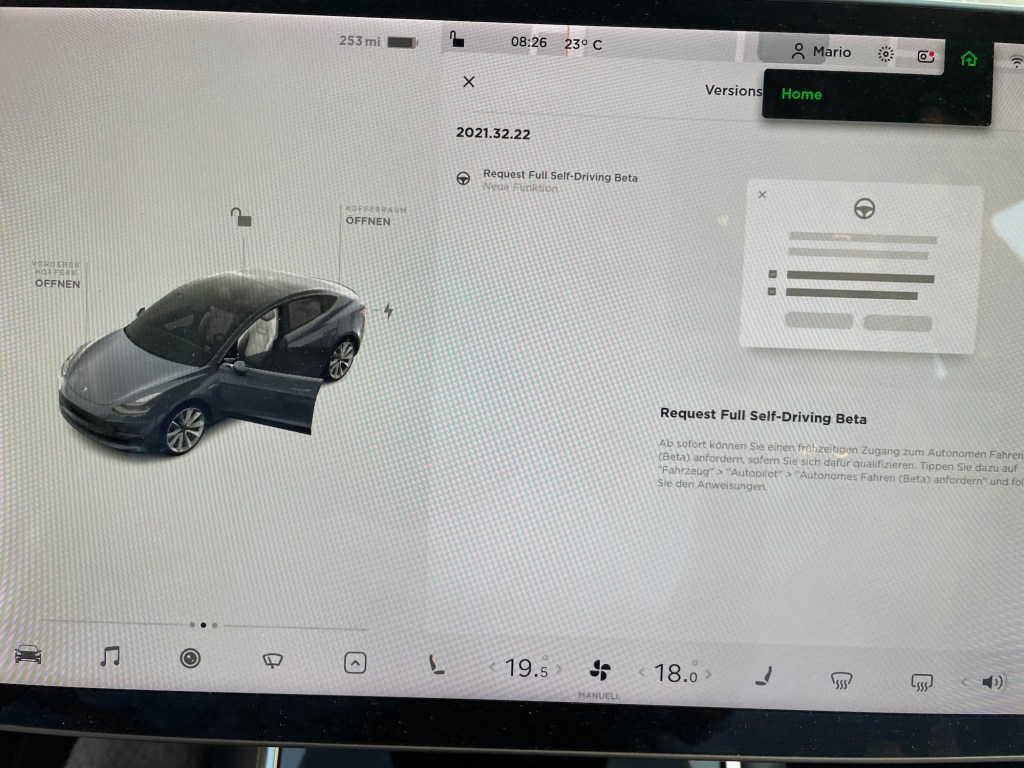 ich selbst habe die FSD-Funktion mit dem Kauf meines Tesla Model 3 Performance im Juni 2019 mitbestellt, und fahre das Fahrzeug in den USA (Kalifornien). Meine Einstellungen der Software auf dem Touchscreen sind allerdings auf Deutsch.