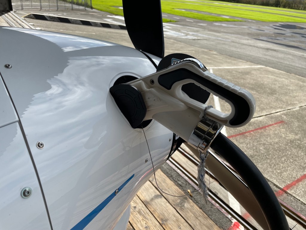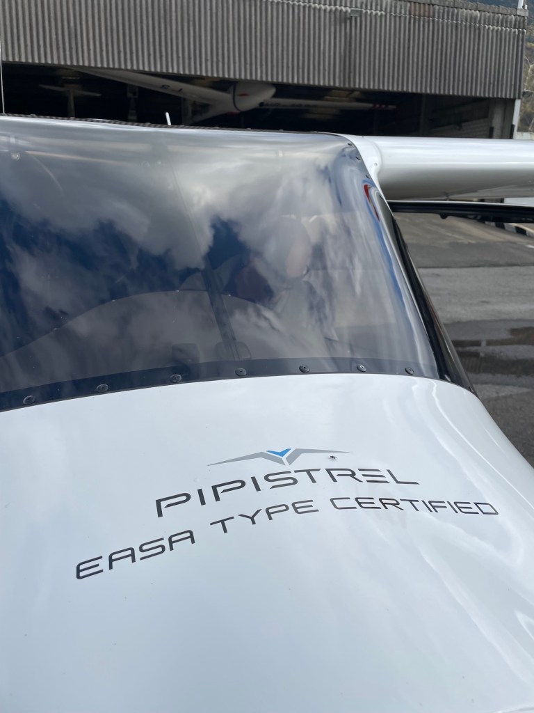 Das Besondere ist dabei das Flugzeug selbst: es stammt vom slowenischen Kleinflugzeughersteller Pipistrel, der die ersten Elektroflugzeuge produziert. Die Velis Electro ist ein 428 Kilogramm leichter Zweisitzer, deren elektrische Batterie mit einer Kapazität von 24,8 kWh mit einer Kraft von 57,6 kW ein maximales Startgewicht von 600 Kilogramm in die Lüfte bringt. Die Höchstgeschwindigkeit beträgt 108 Knoten (200 km/h) und überbrückt mit dieser Batteriekapazität eine Strecke von 100 Kilometern. Tatsächlich aber könnte durch den Propeller auch rekuperiert werden, wie wir das schon im Elektroauto beim Bremsen und Bergabfahren kennen. Aktuell ist diese Funktion aber noch nicht zugelassen.