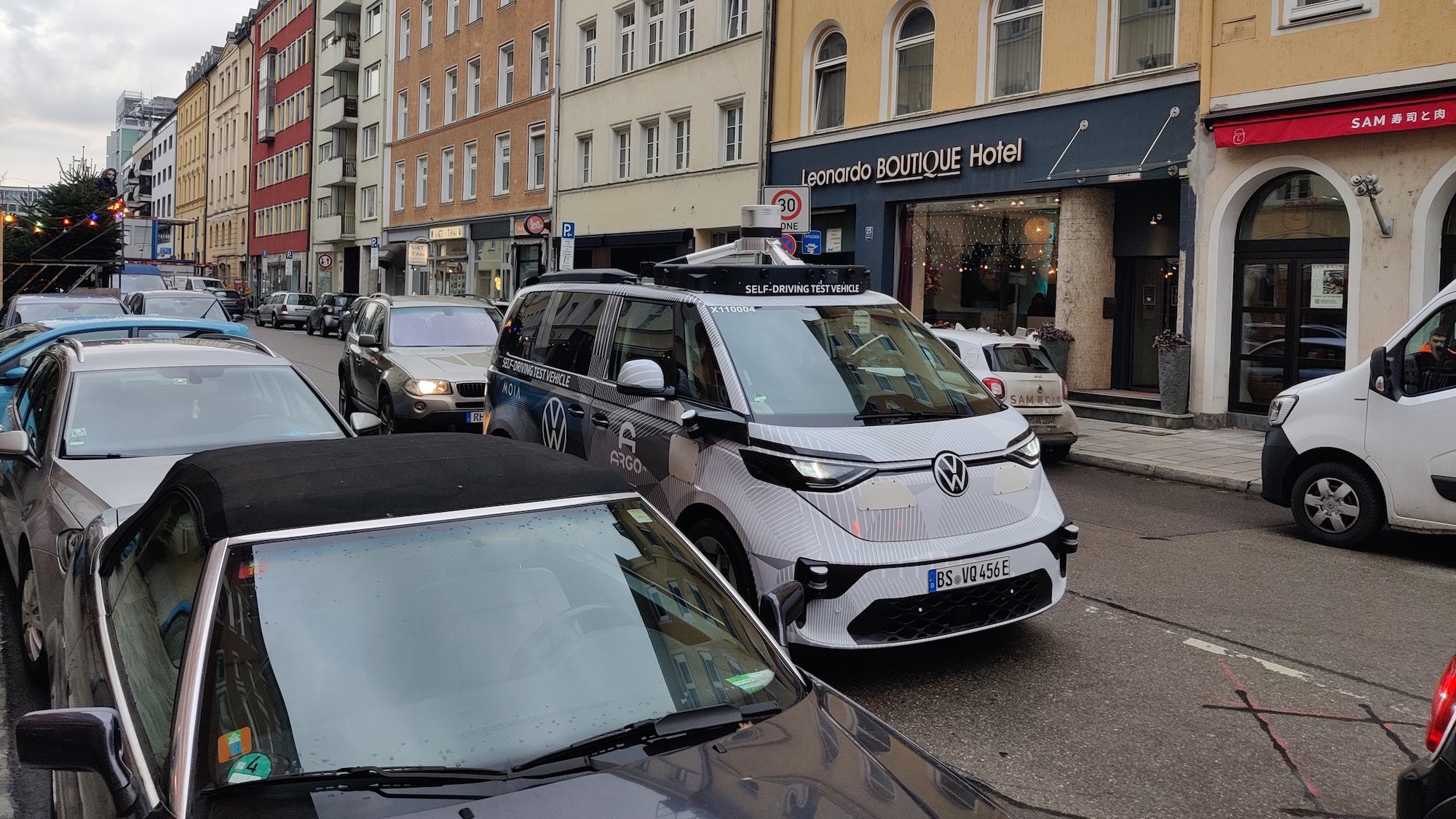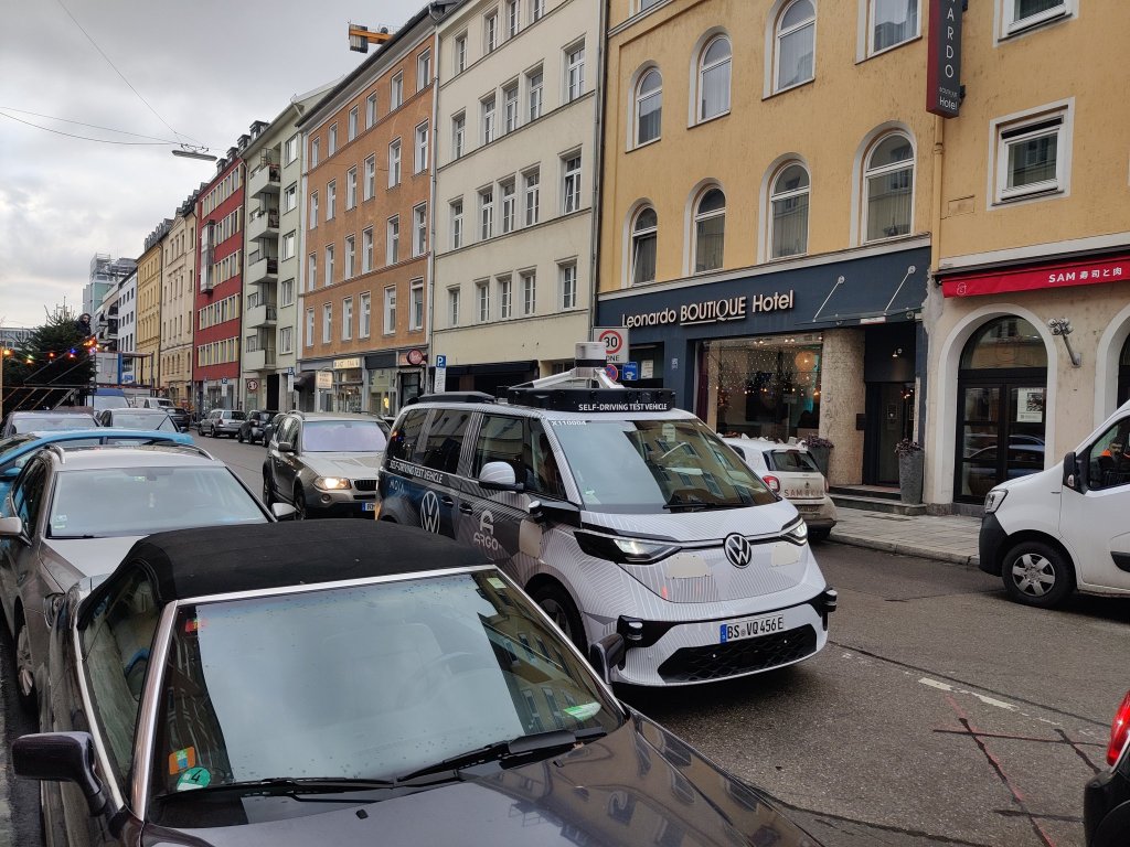 Das abgelichtete Fahrzeug wird zum Testen von autonomen (und sicherlich auch elektrischen) Fahrtechnologie eingesetzt und soll ab 2025 in den Testflottenbetrieb übergehen. Die Selbstfahrtechnologie stammt vom amerikanischen Unternehmen Argo.ai, an dem VW beteiligt ist.