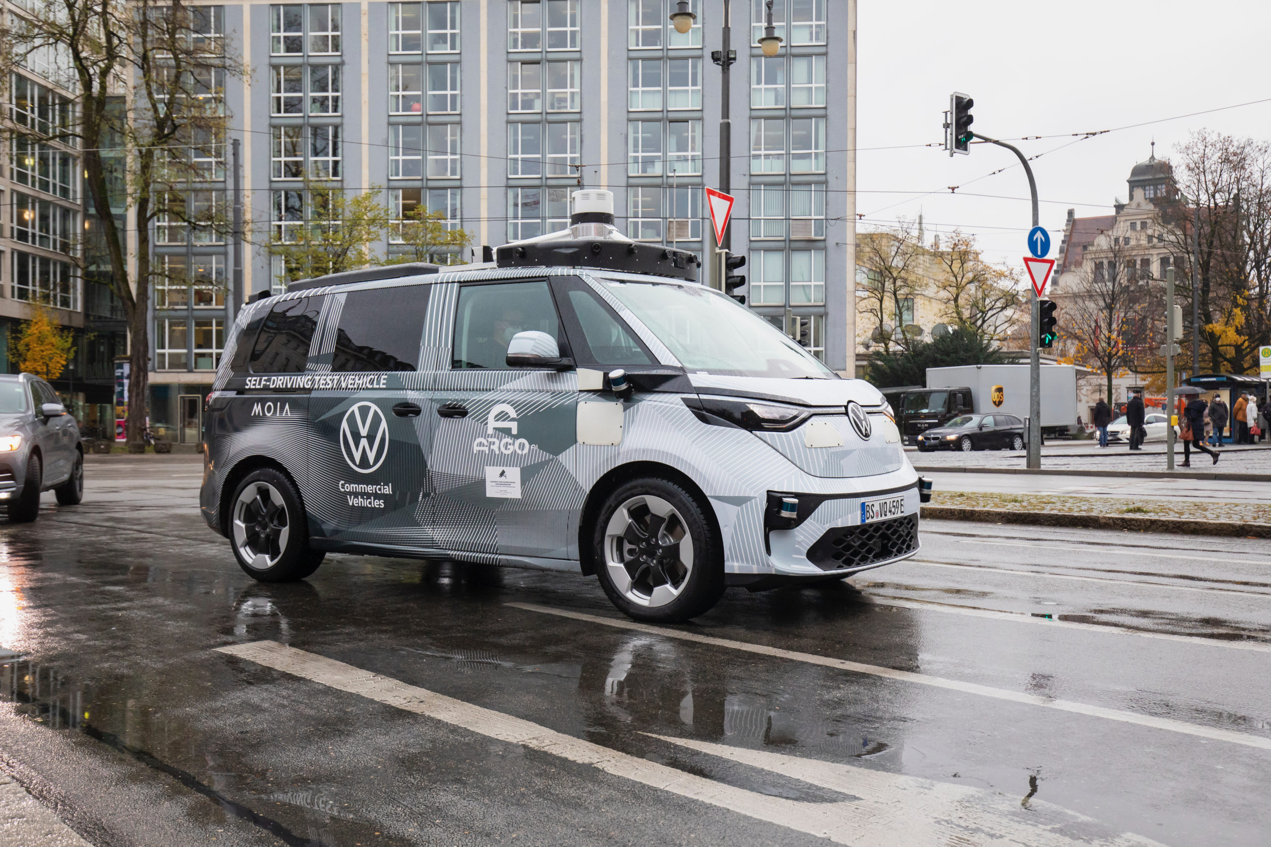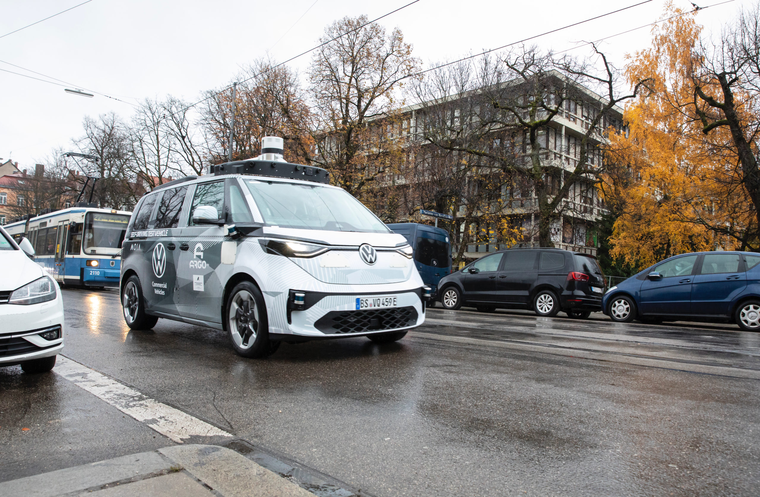 Volkswagen testet nun verstärkt mit dem ID.BUZZ und Argo.AI das autonome Fahren in München. So wurden nun weitere Bilder vom Fahrzeug bei regnerischem Wetter im Herzen von München gepostet.