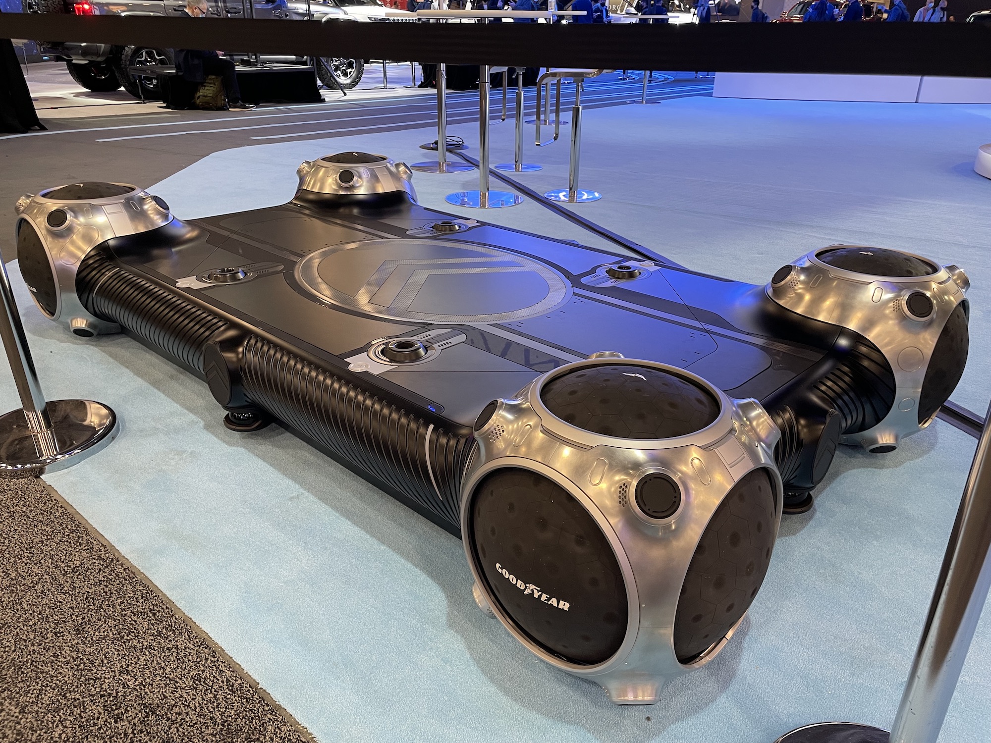 Wie sehr Elektromobilität neues Denken ermöglicht, zeigte sich unter anderem am Stellantis-Stand auf der CES 20222. Dort zeigten das Unternehmen und Goodyear diese elektrische Skateboard-Plattform mit ballförmigen Reifen. Darüber geschrieben habe ich schon in meinem Buch Der letzte Führerscheinneuling… aus dem Jahr 2017, aber erst jetzt habe ich sie zum ersten Mal live gesehen. Goodyear nennt sie „sphärische Reifen“ und preist sie für autonomes Fahren in diesem Video aus dem Jahr 2016 an: