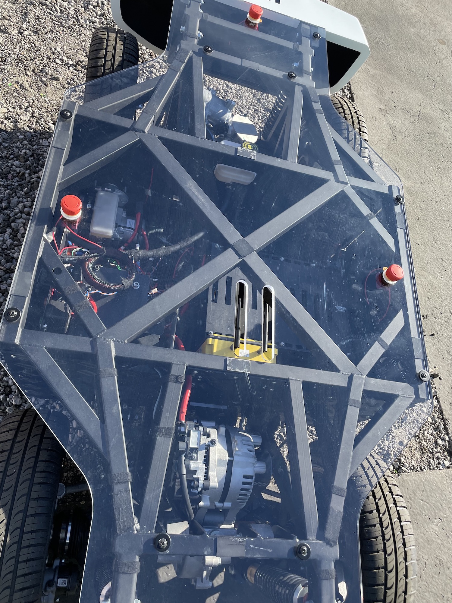 Bei Valeo lernte ich dann, dass der Motor, den man in der Skateboardplattform sieht, derselbe ist, der im Ami verbaut ist. Klein, kompakt, ausreichend für Stadtfahrten mit zwei Personen und keinen Koffer an Bord.