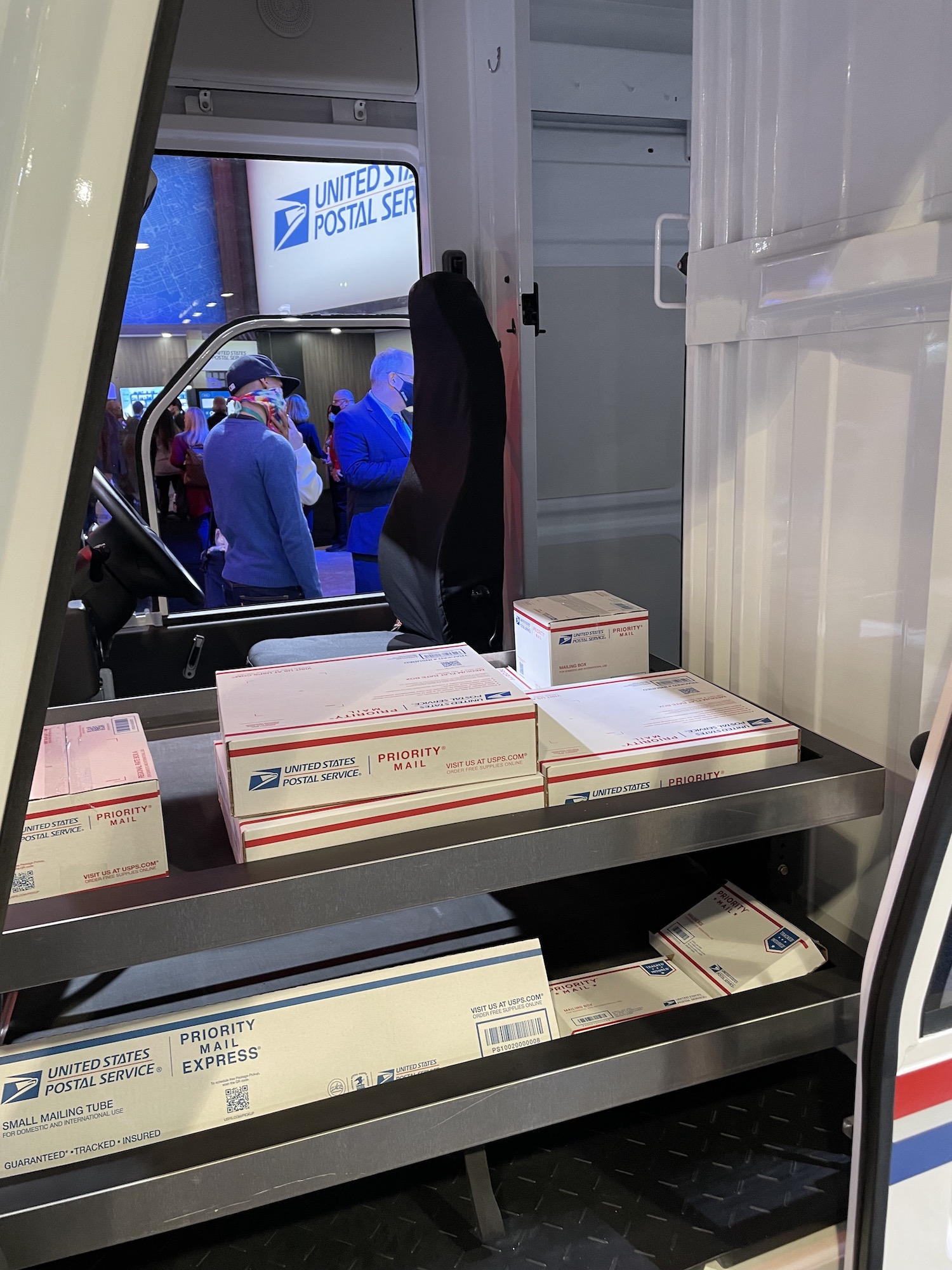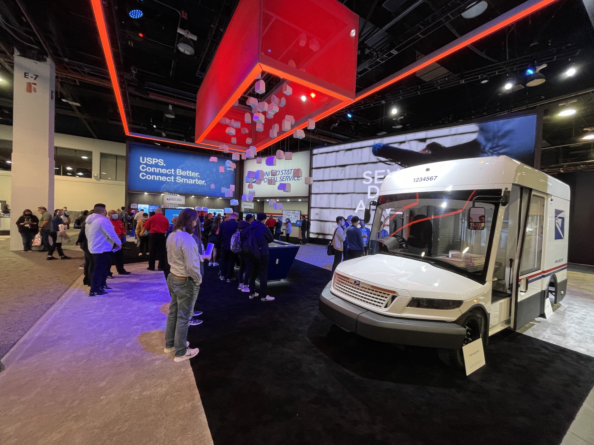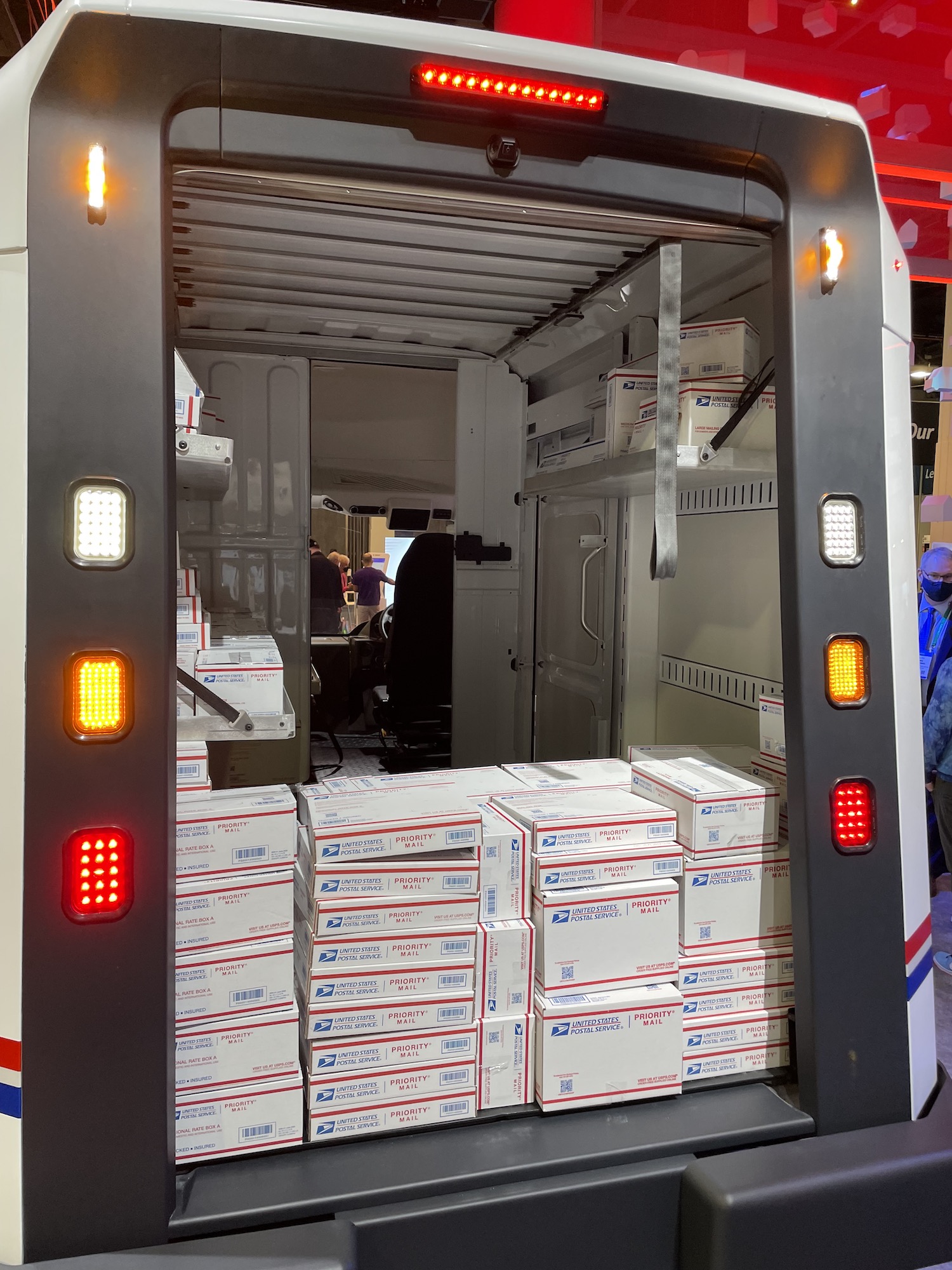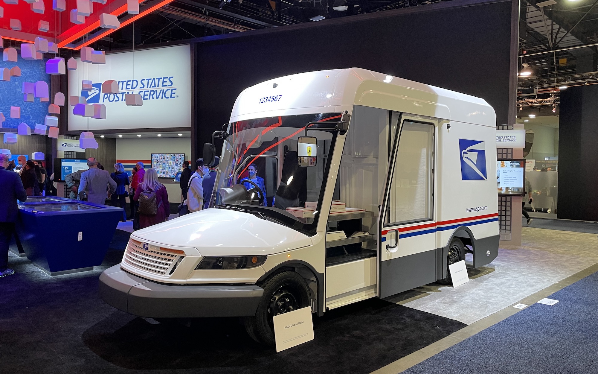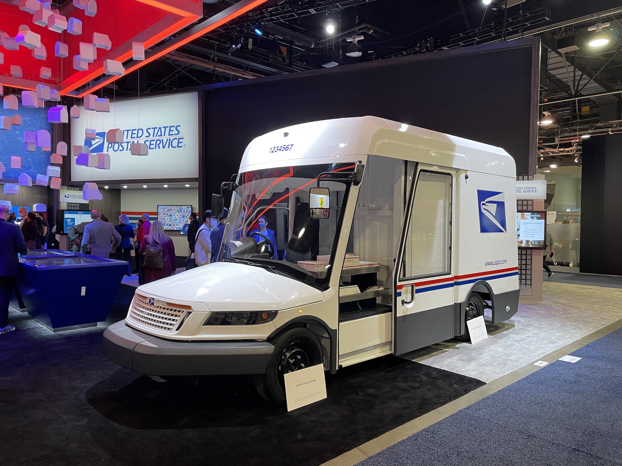 Nicht nur die Deutsche Post interessiert sich für Elektroautos als Zustellfahrzeuge, auch die amerikanische Post (USPS). Schon vor einigen Wochen wurde ein neues Fahrzeug vorgestellt und auf der CES 2022 in Las Vegas hatte die USPS einen großen Stand mit diesem Fahrzeug.